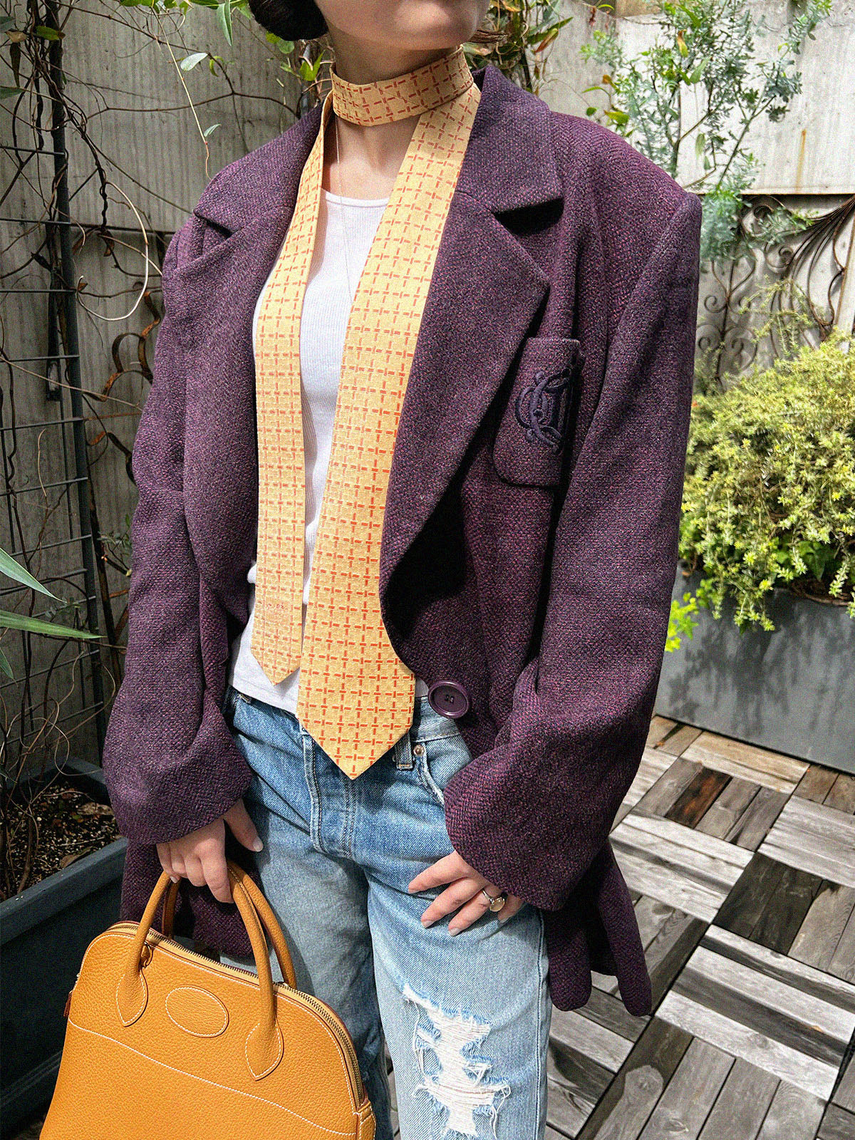 ウールエンブレムロゴ刺繍ジャケット パープル