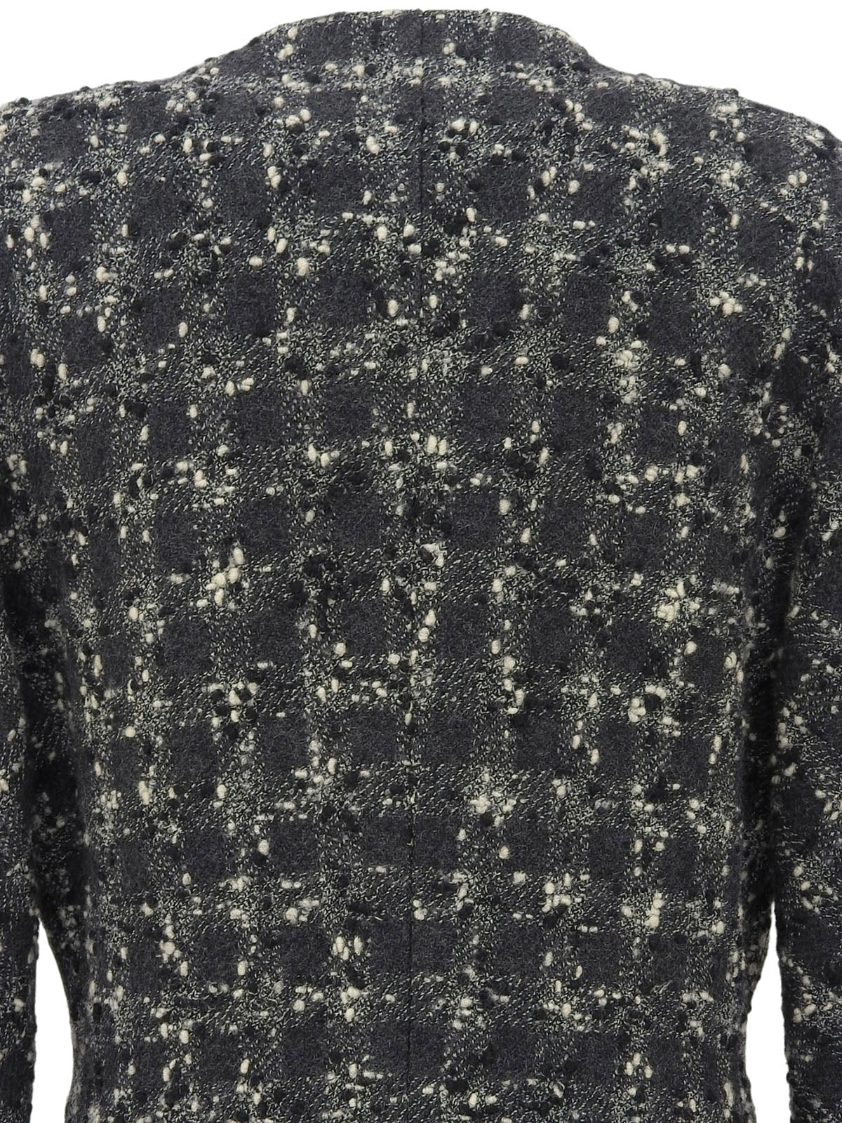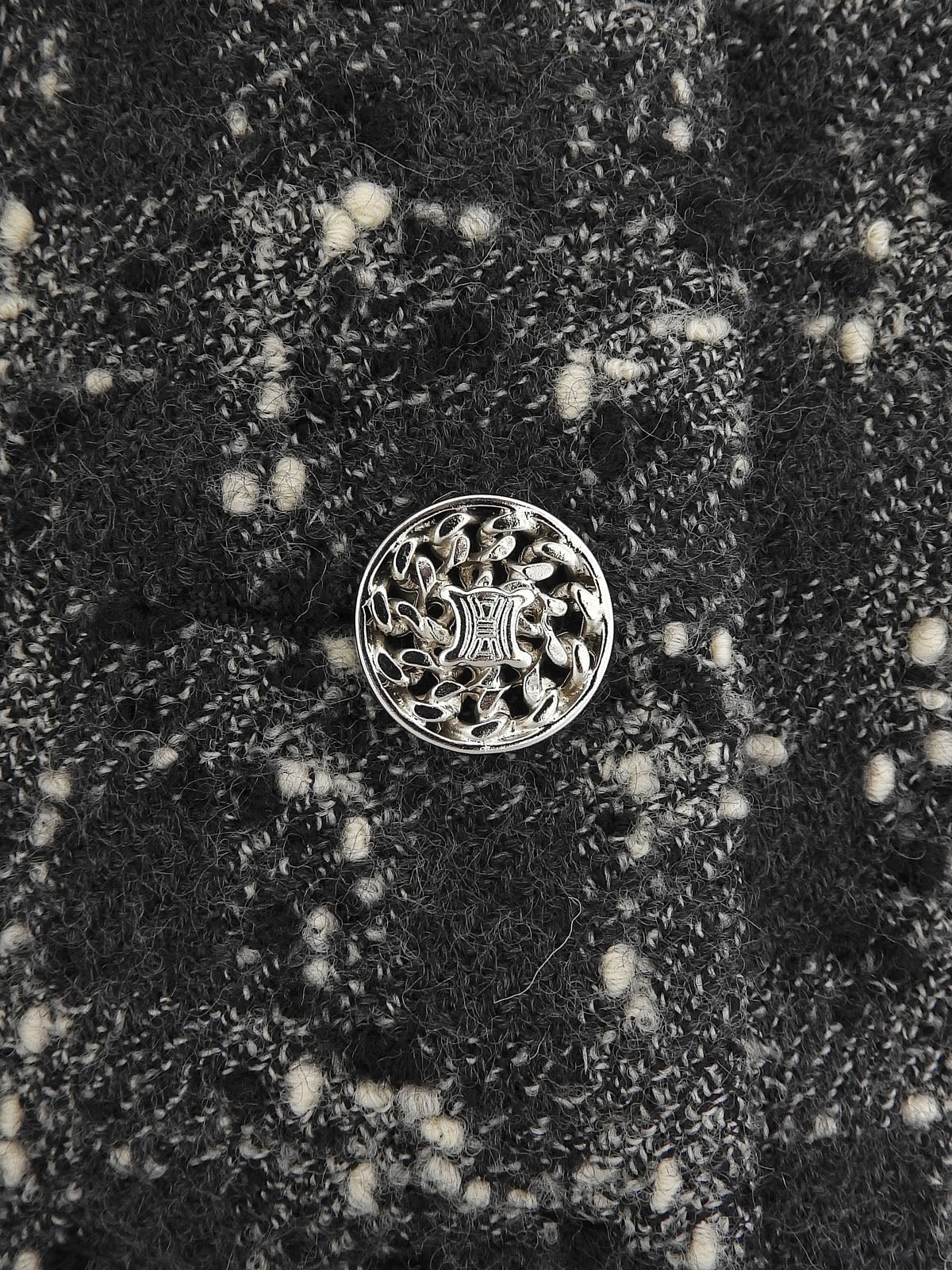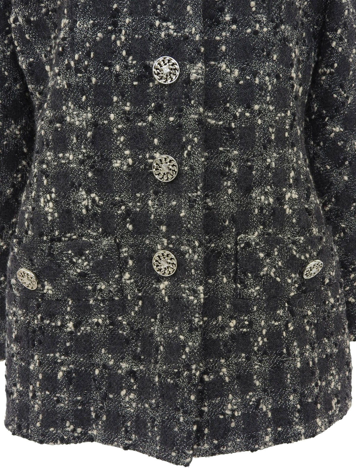 ツイードチェーンマカダムボタンノーカラージャケット グレー/ブラック/ホワイト
