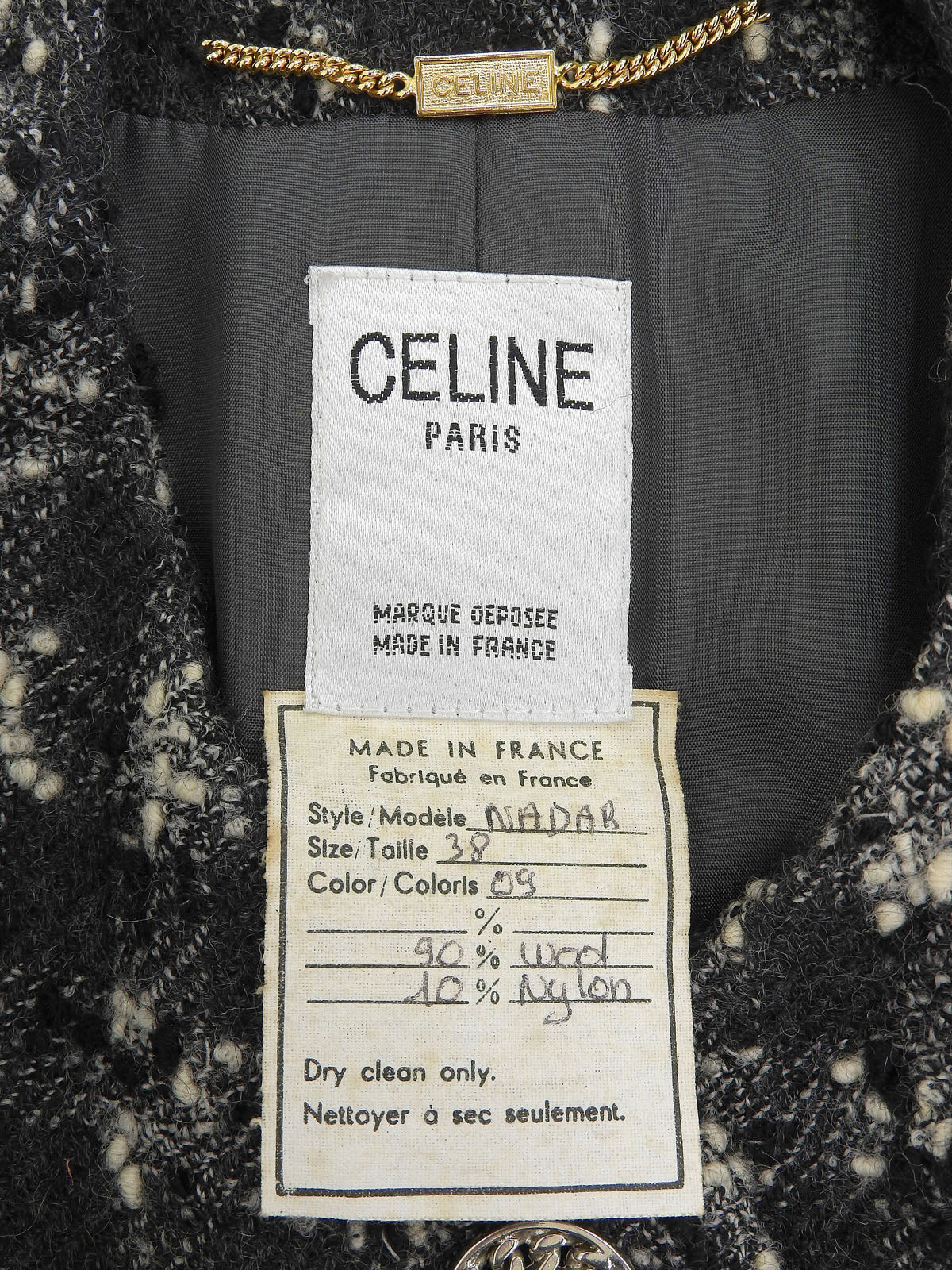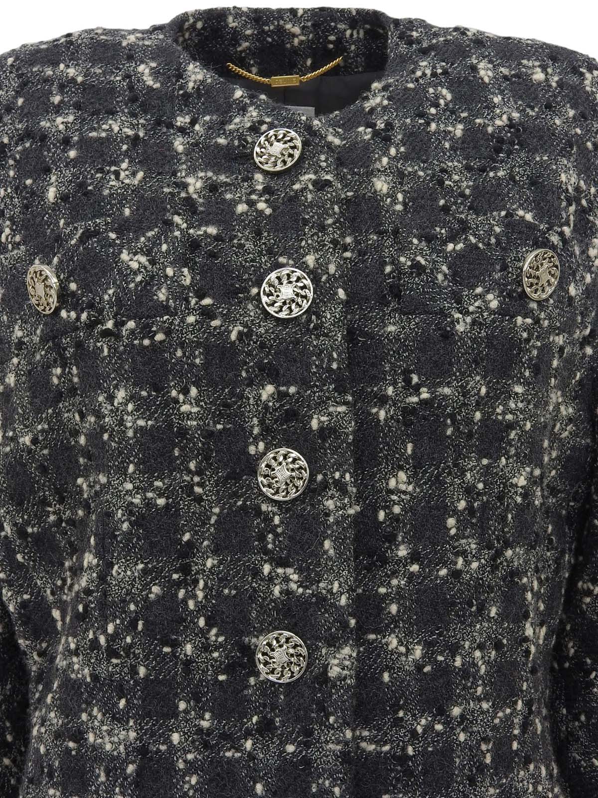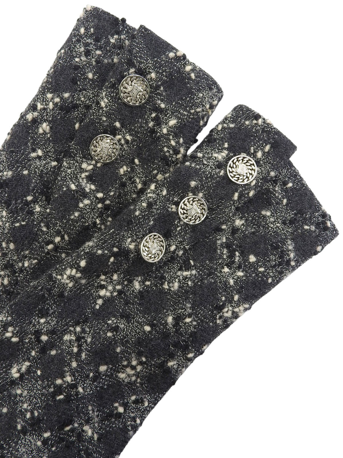 ツイードチェーンマカダムボタンノーカラージャケット グレー/ブラック/ホワイト