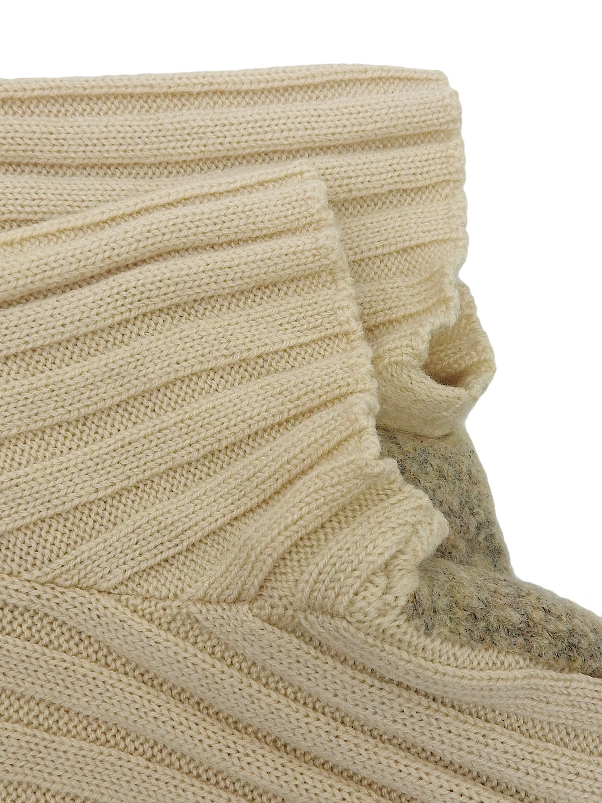 ウールダイヤパターンハーフスリーブタートルネックニットトップス ベージュ/ブラウン