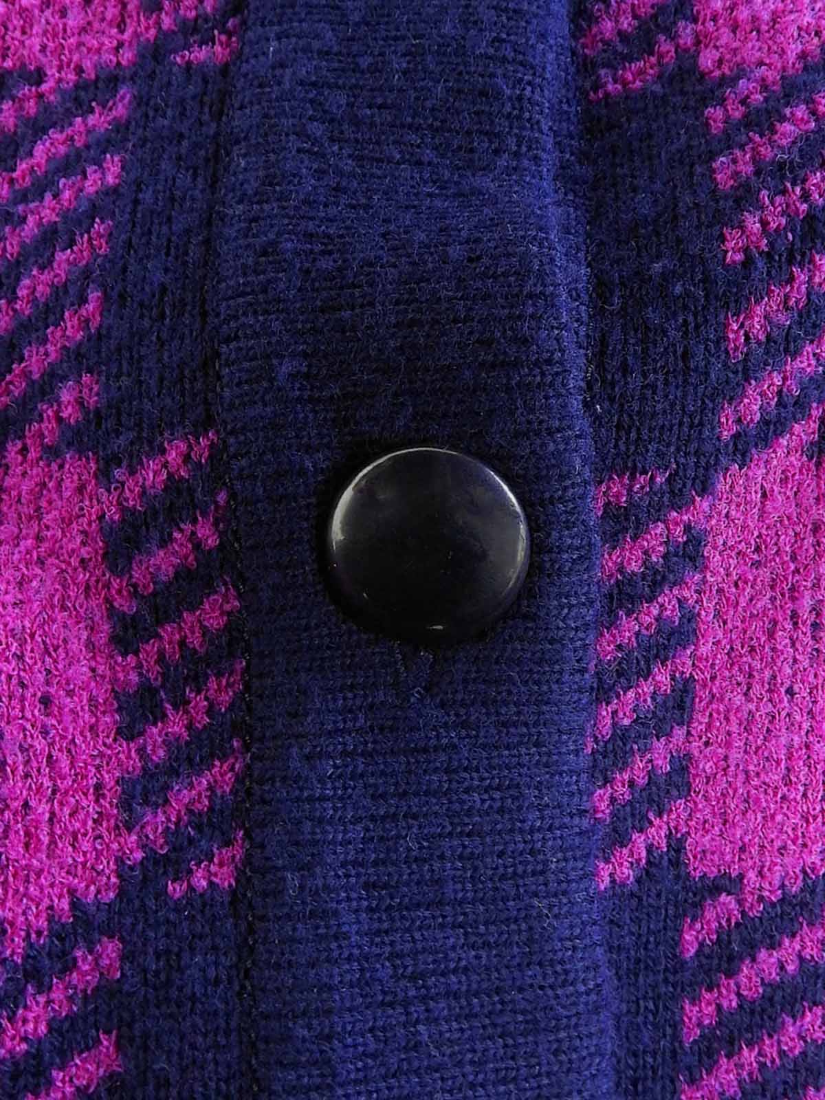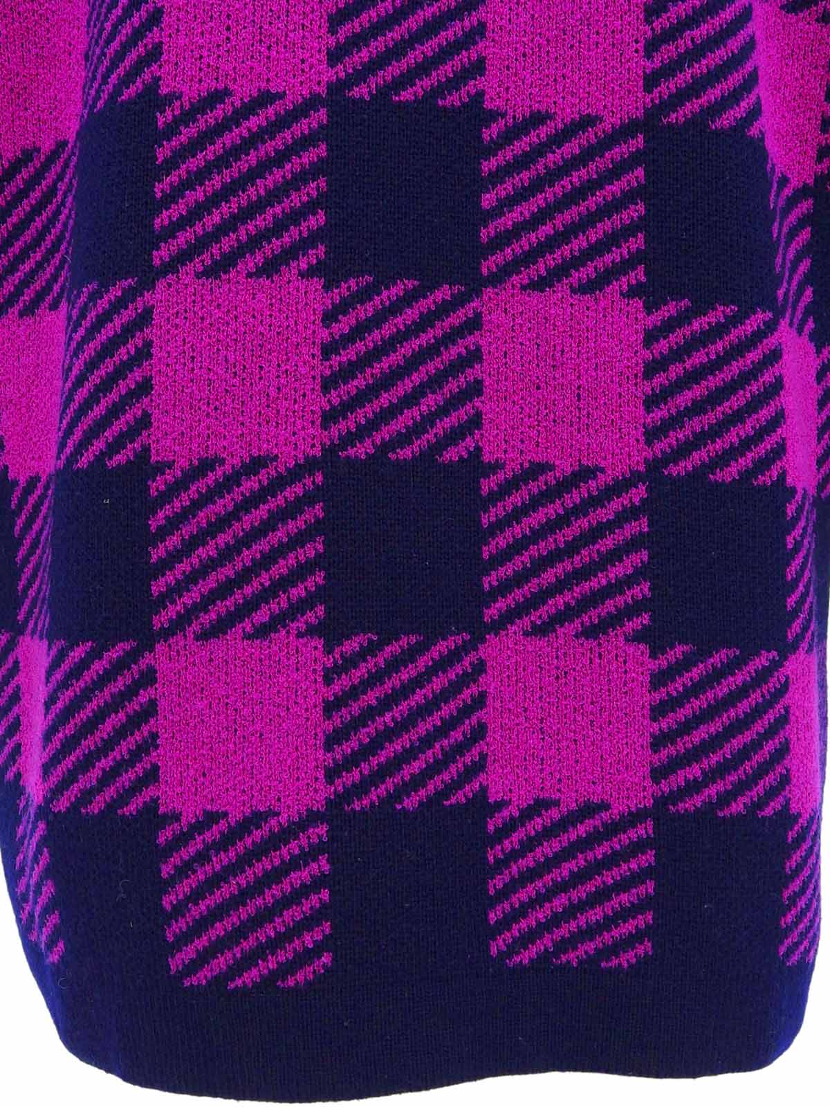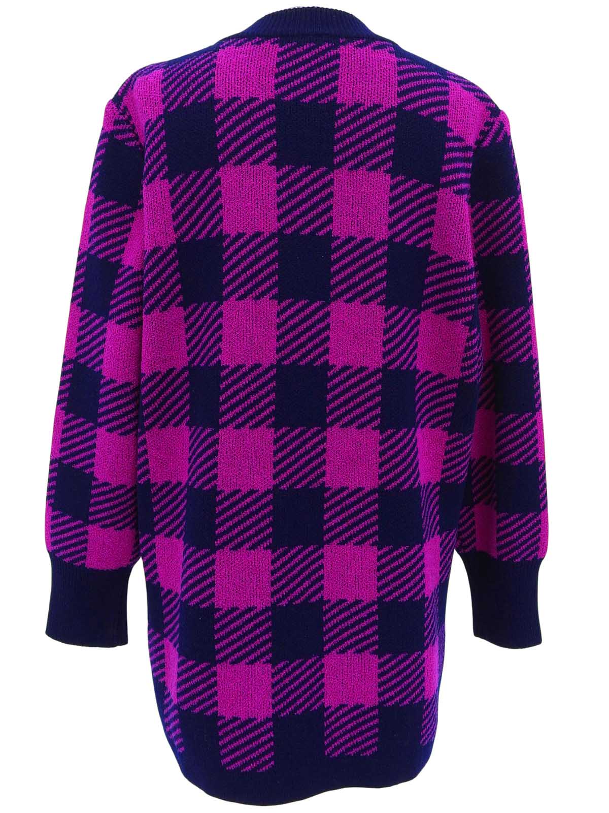 ウールブロックチェックパターンロングカーディガン ダリアパープル/ネイビー