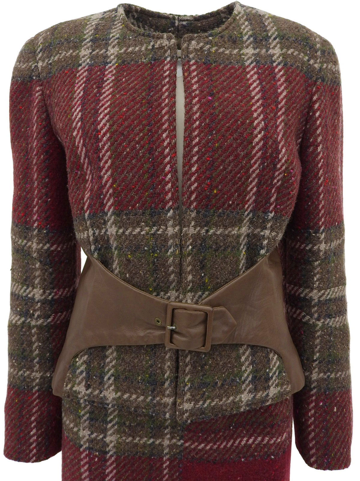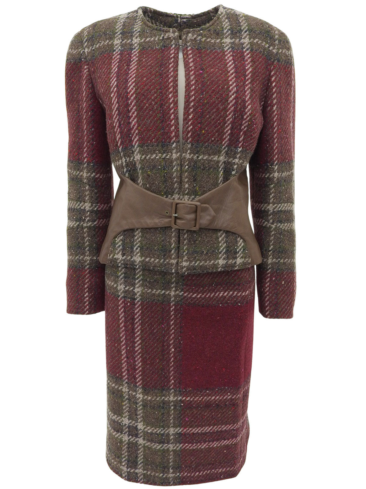 チェックパターンウエストベルトセットアップ ボルドー/カーキ/マルチ