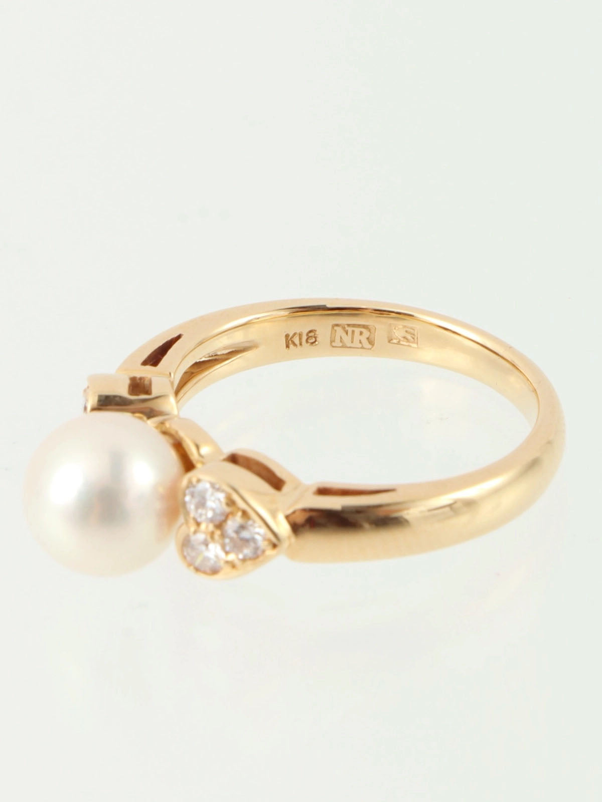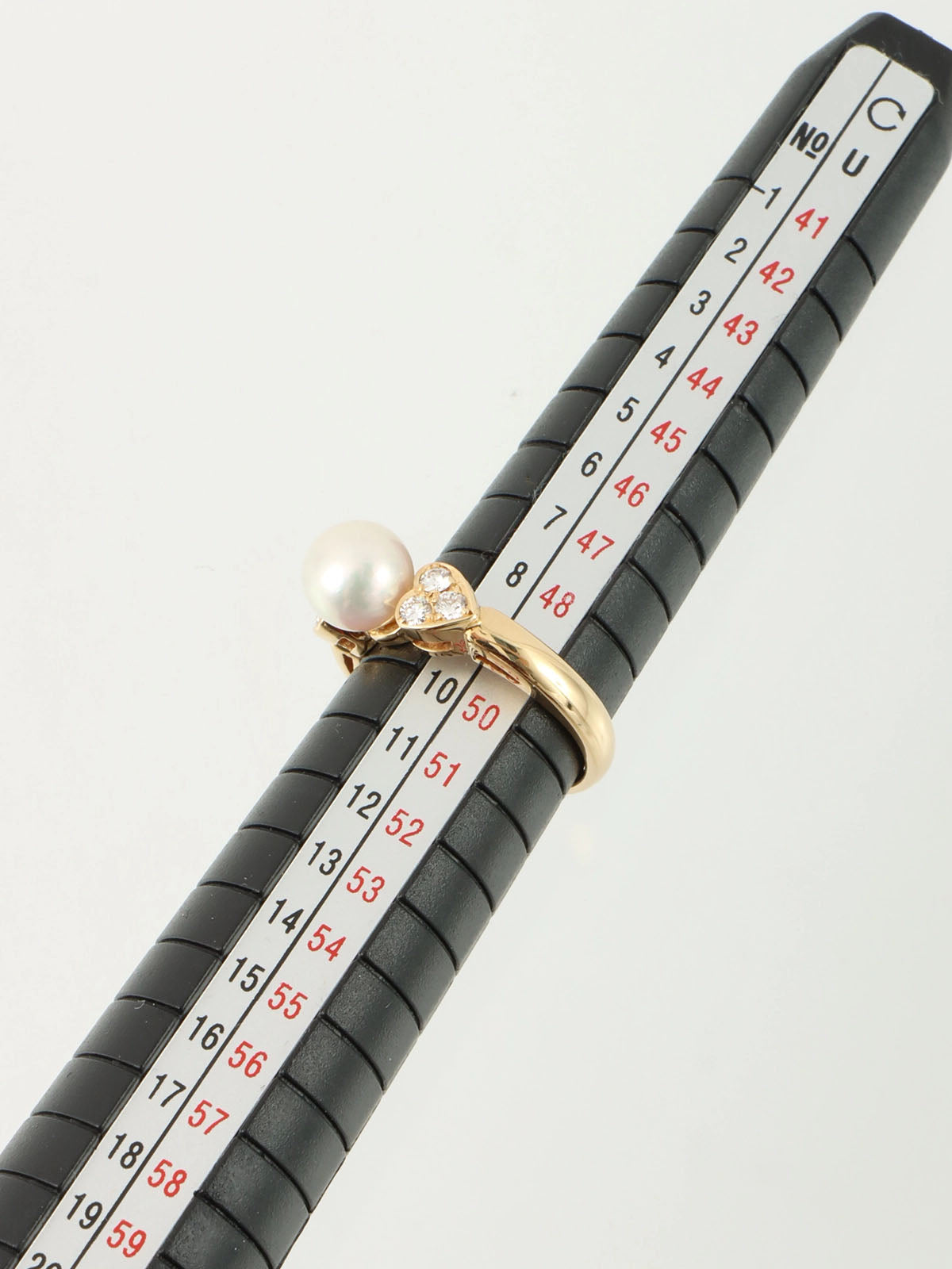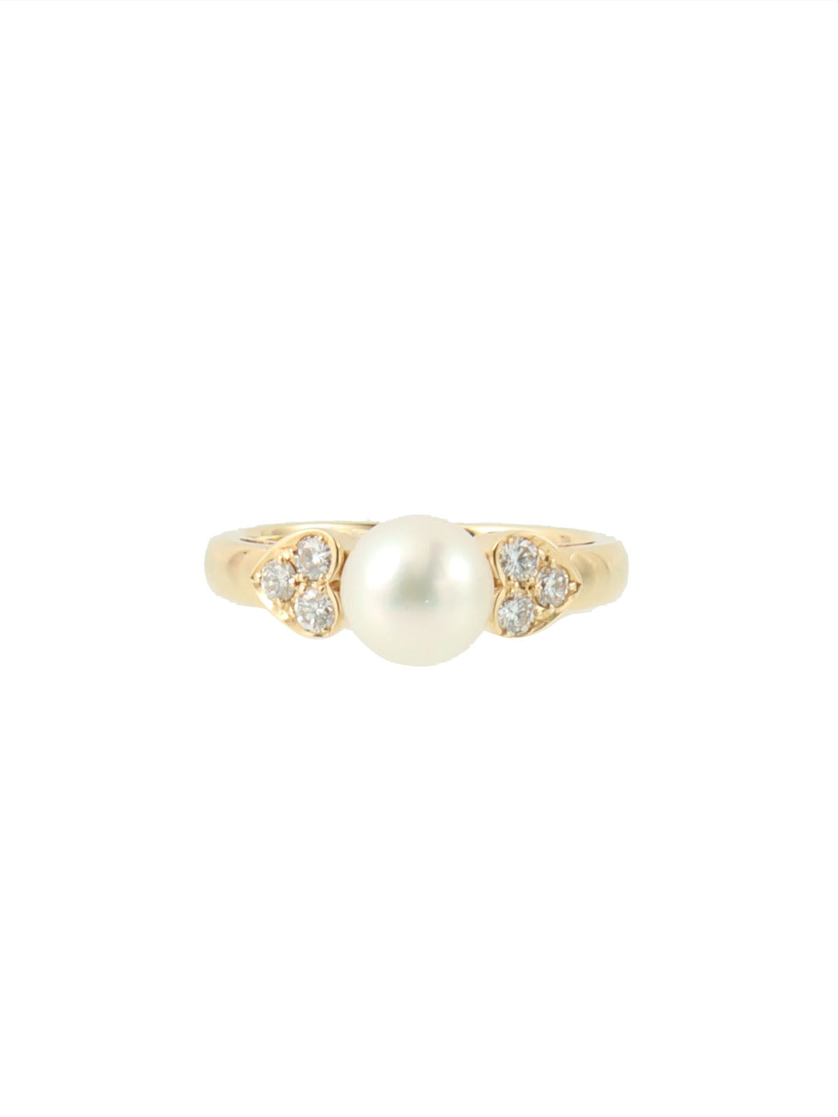 18Kダイヤモンドパールハートモチーフリング ゴールド/ホワイト