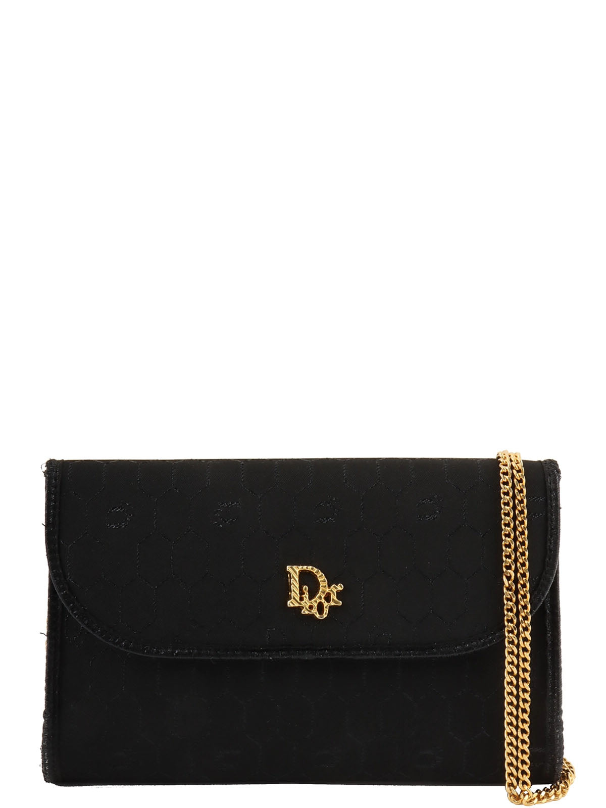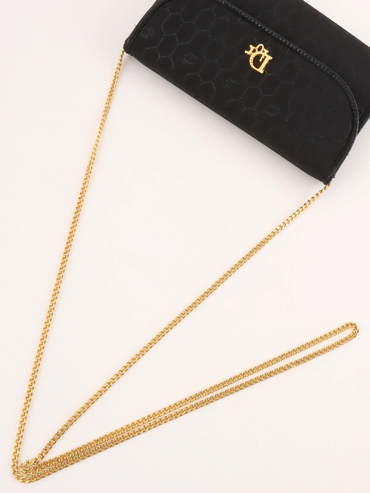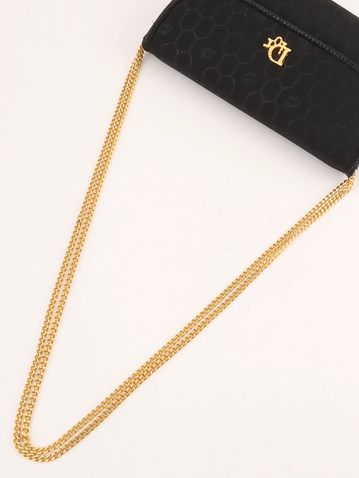 ハニカムパターンロゴプレートチェーンバッグ ブラック