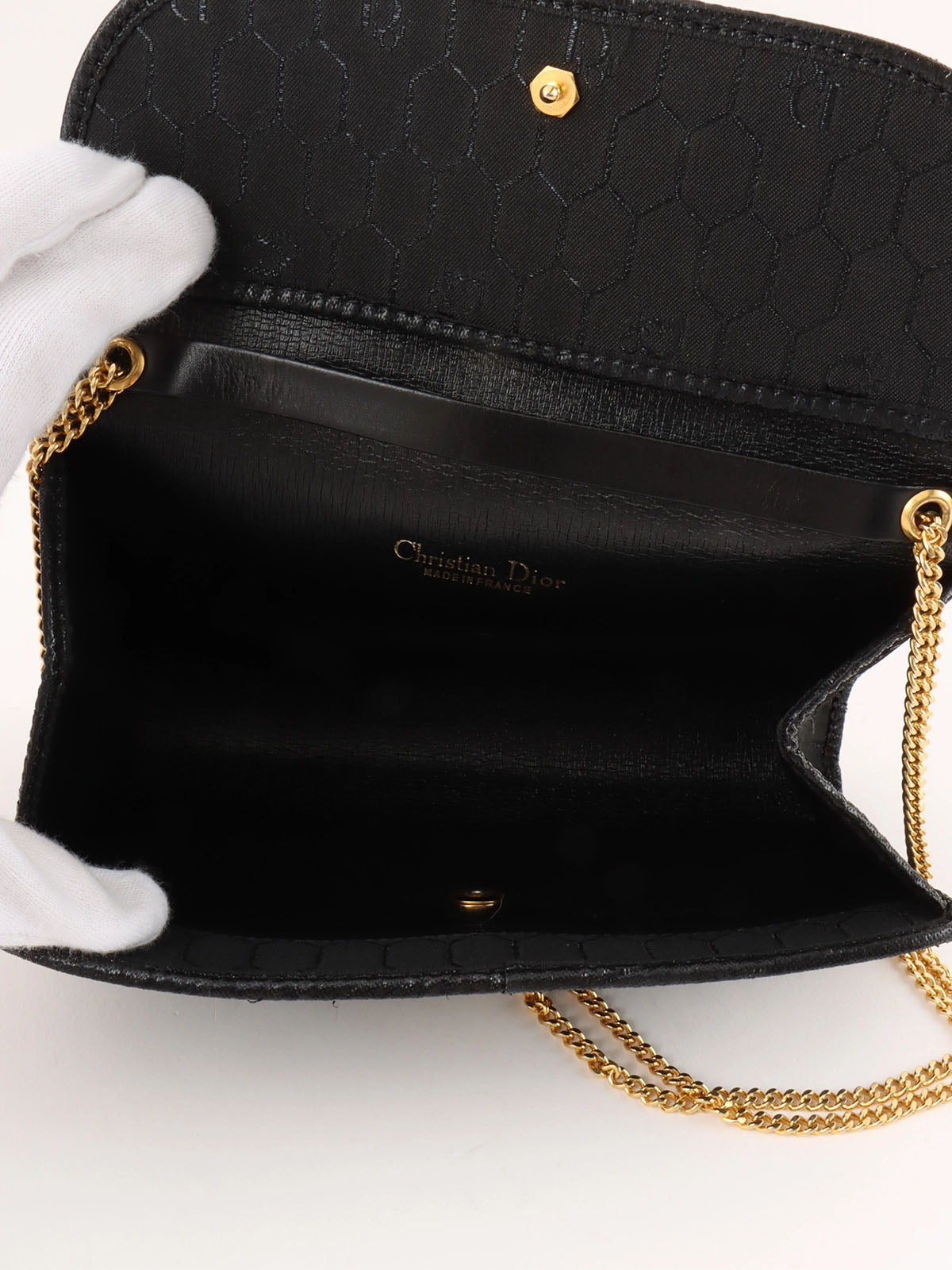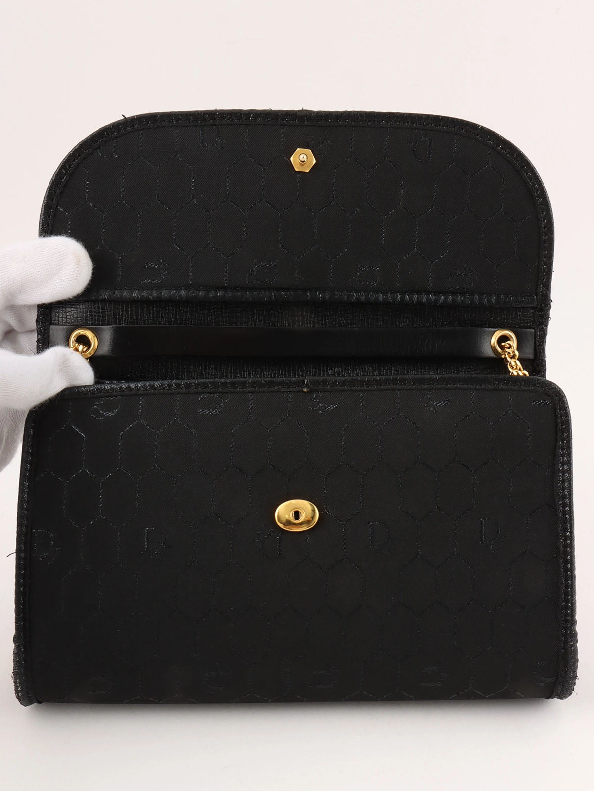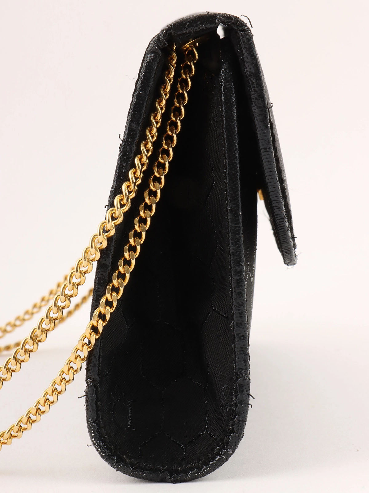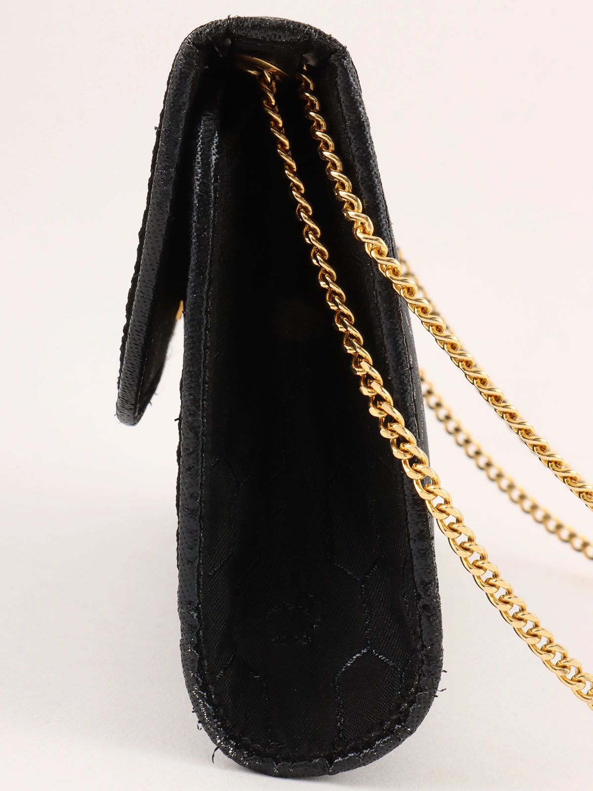 ハニカムパターンロゴプレートチェーンバッグ ブラック