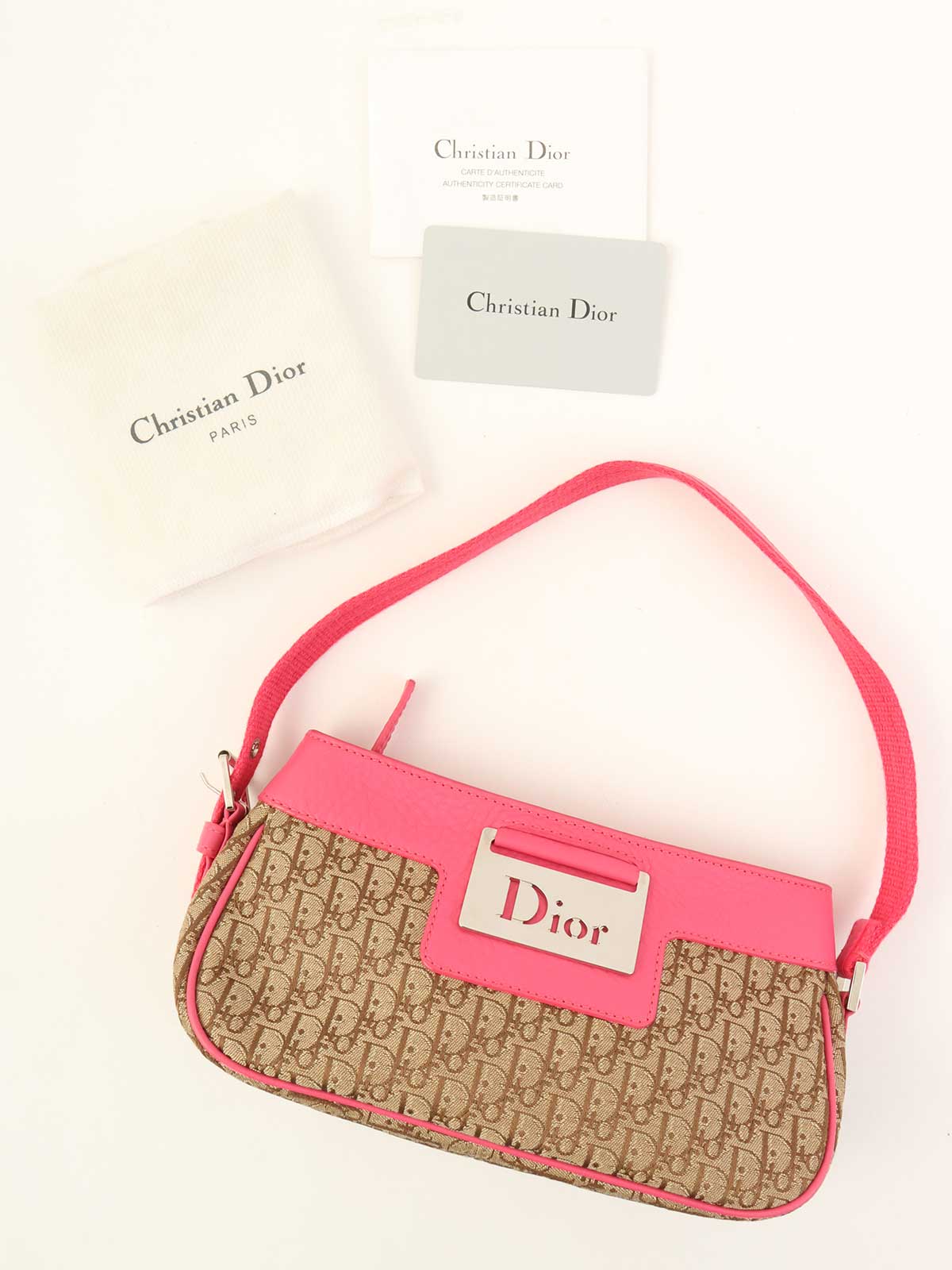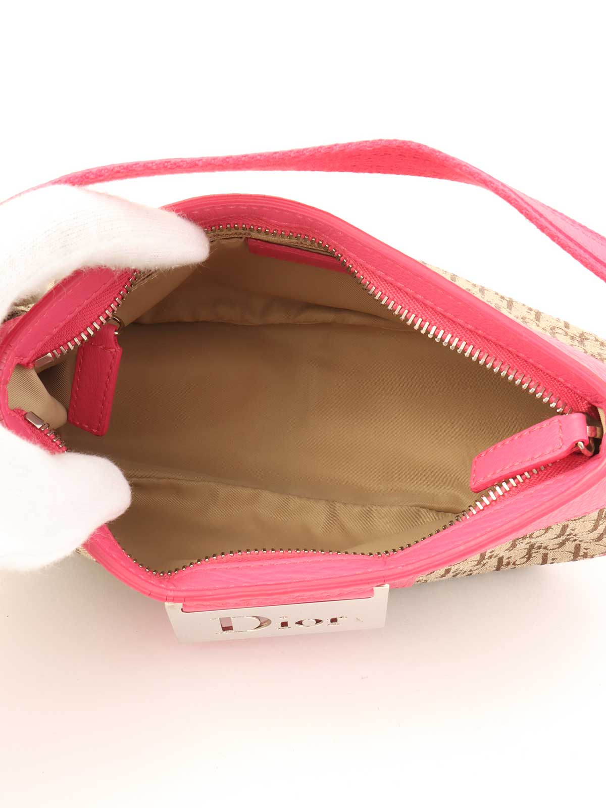 トロッターパターンロゴプレートハンドバッグ ベージュ/ピンク