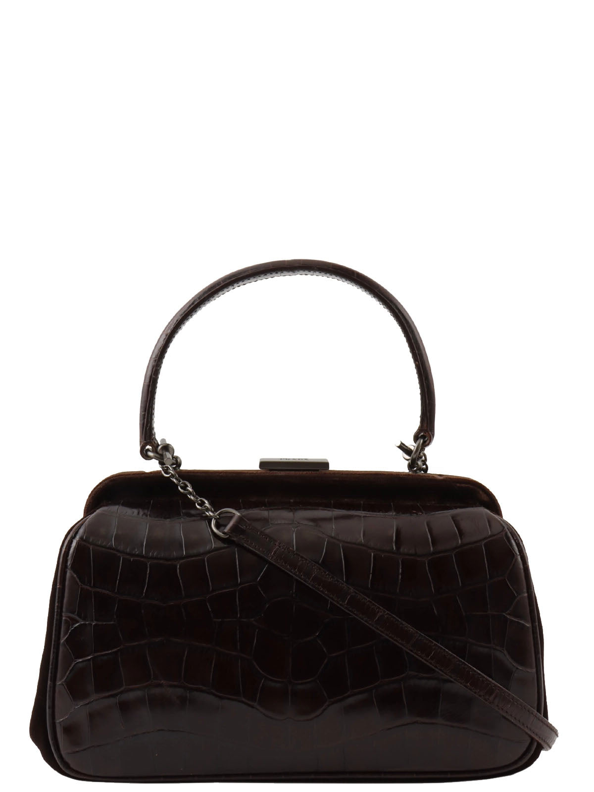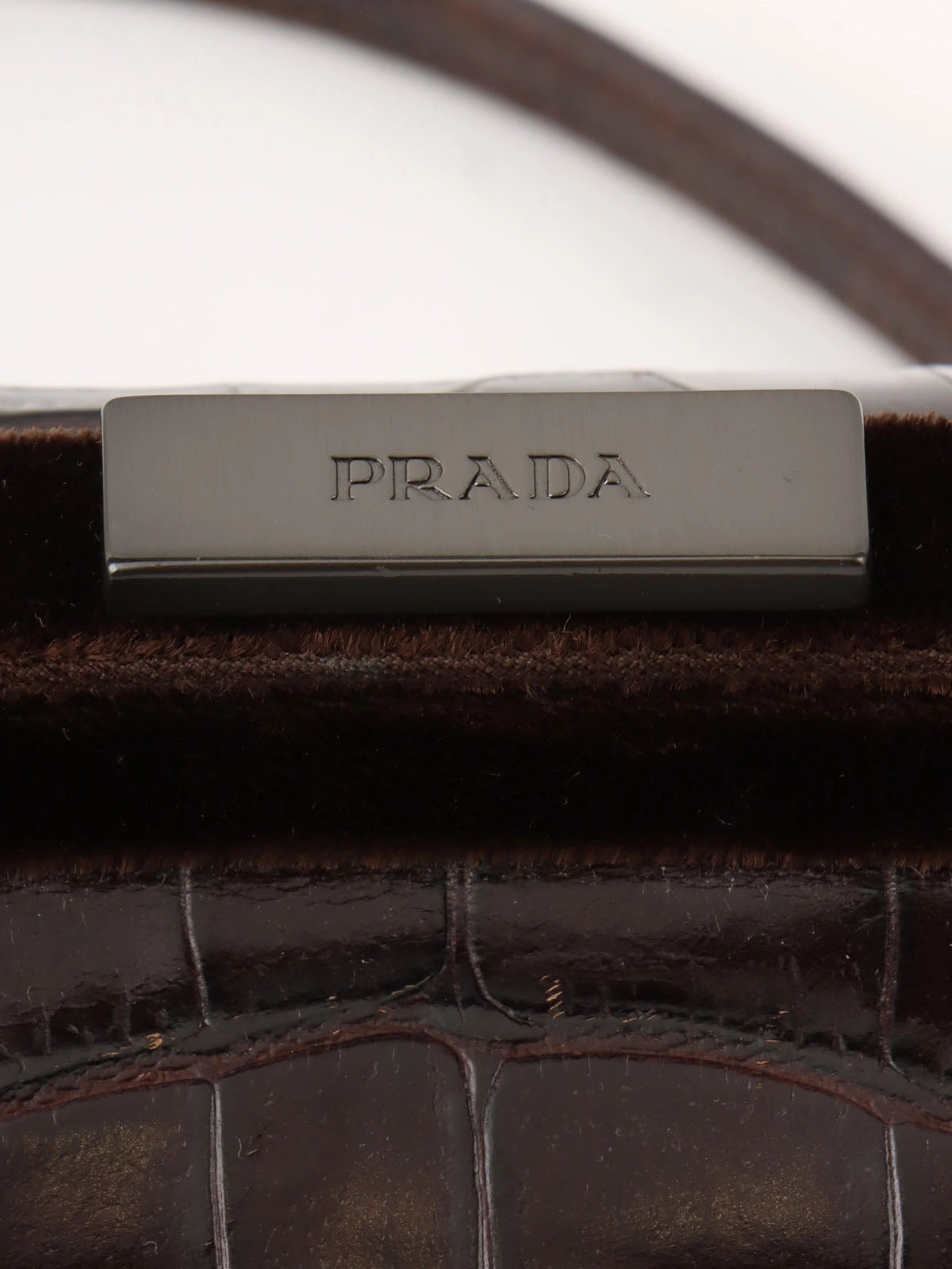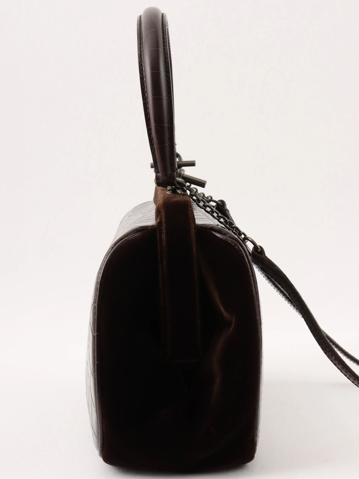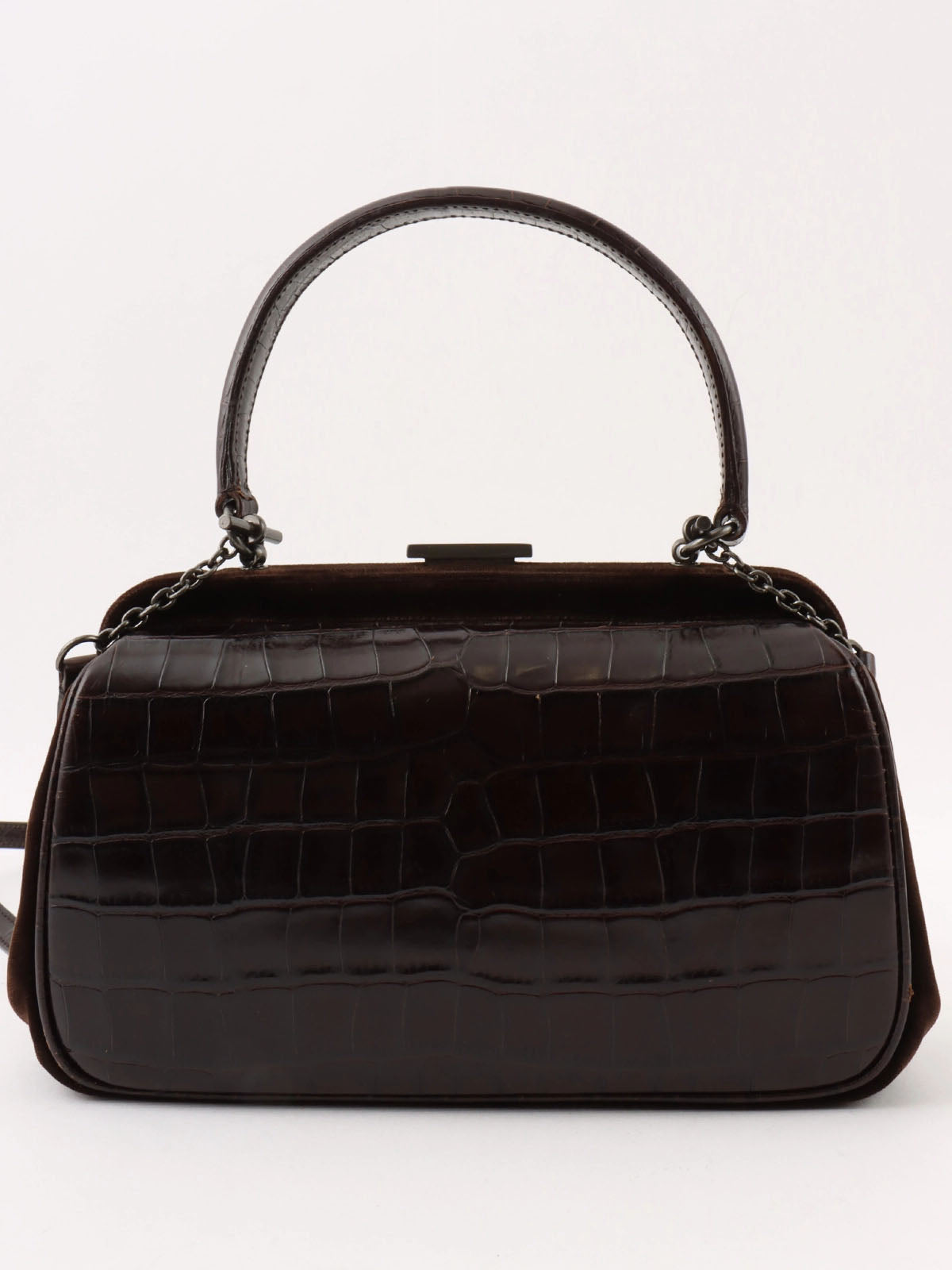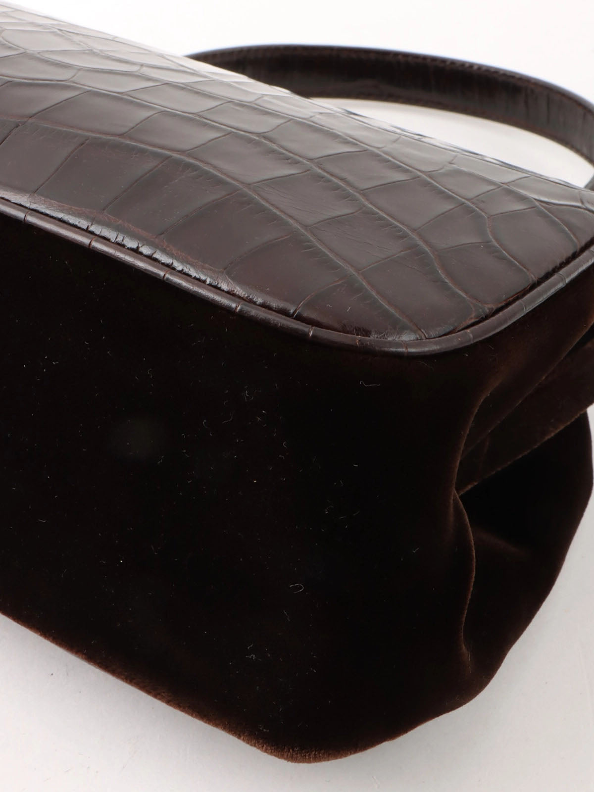 クロコダイルベロアコンビ2wayバッグ ダークブラウン