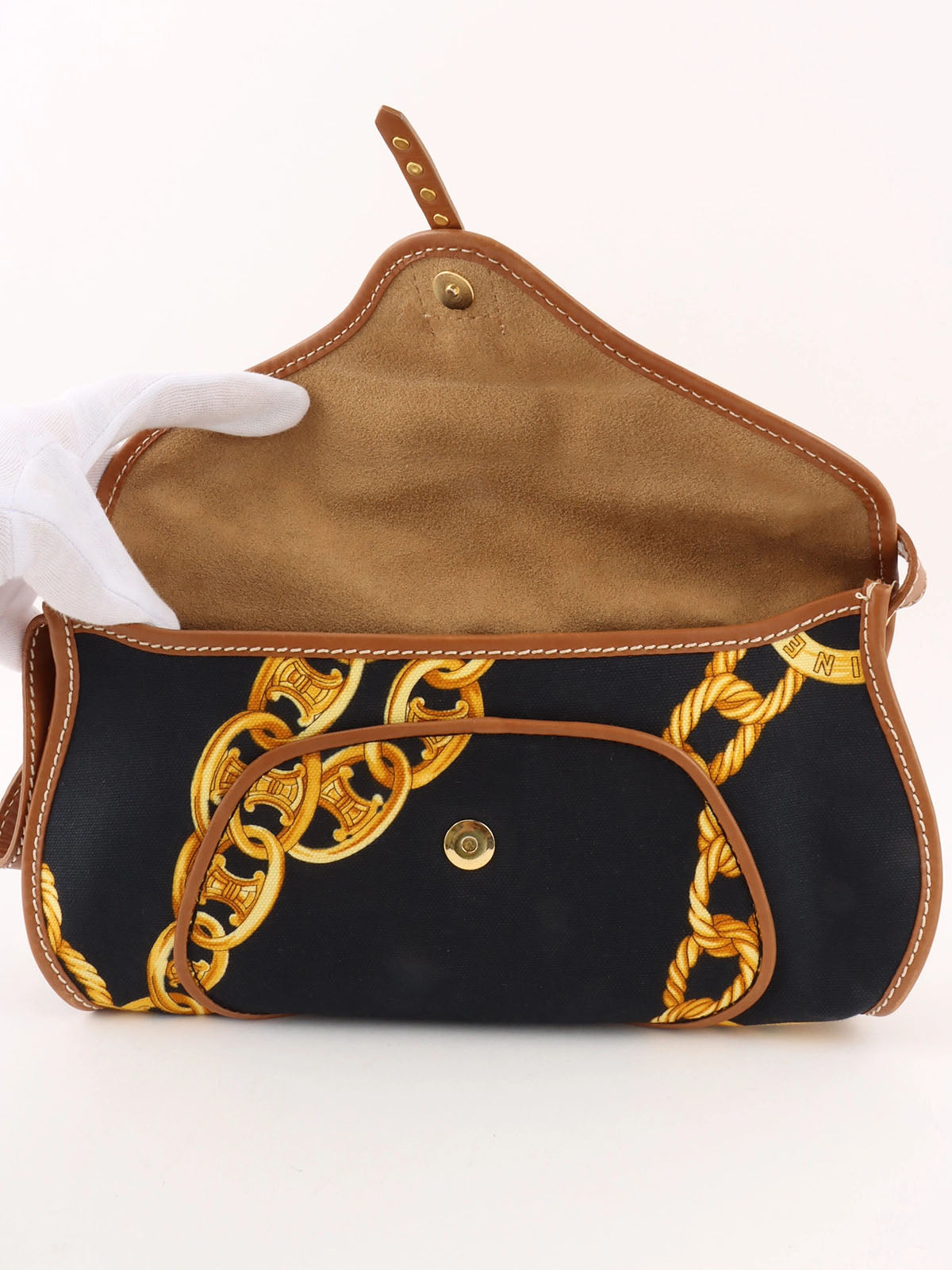 マカダムチェーンパターンワンショルダーバッグ ブラウン/ブラック