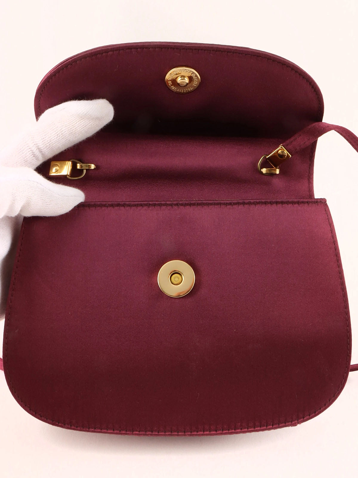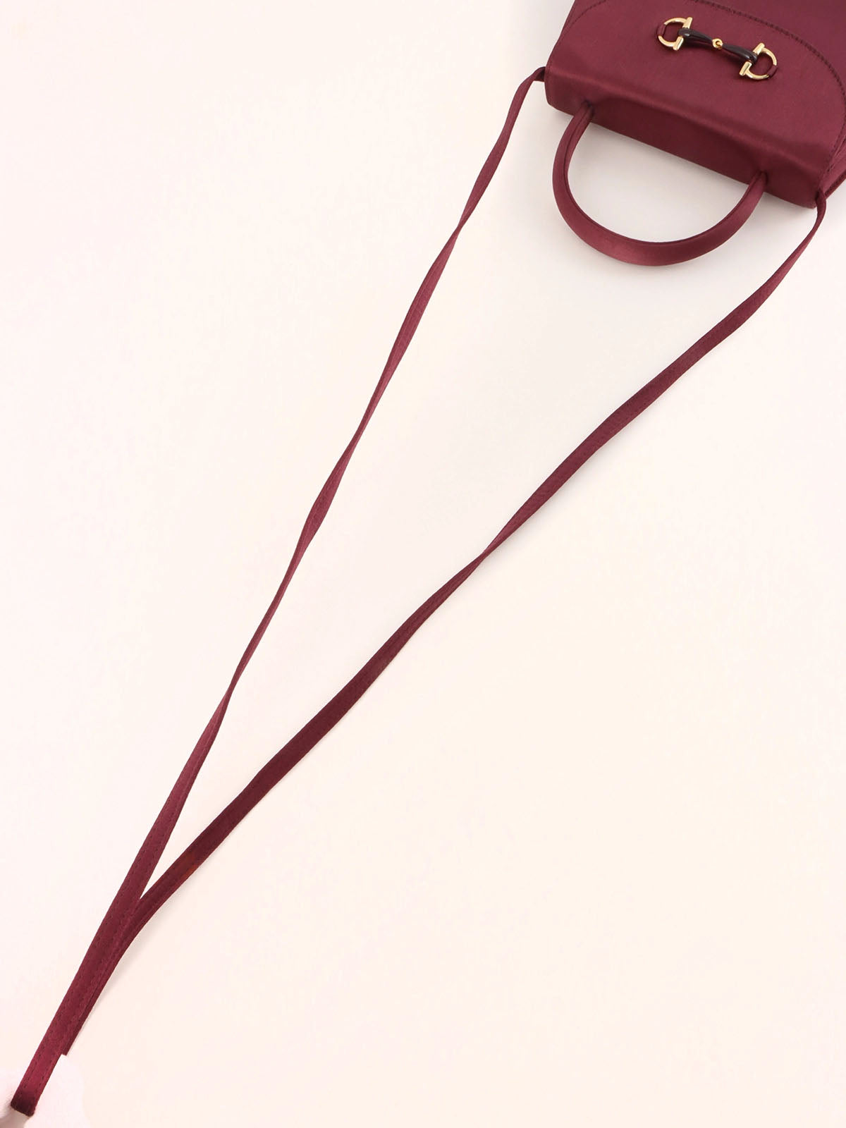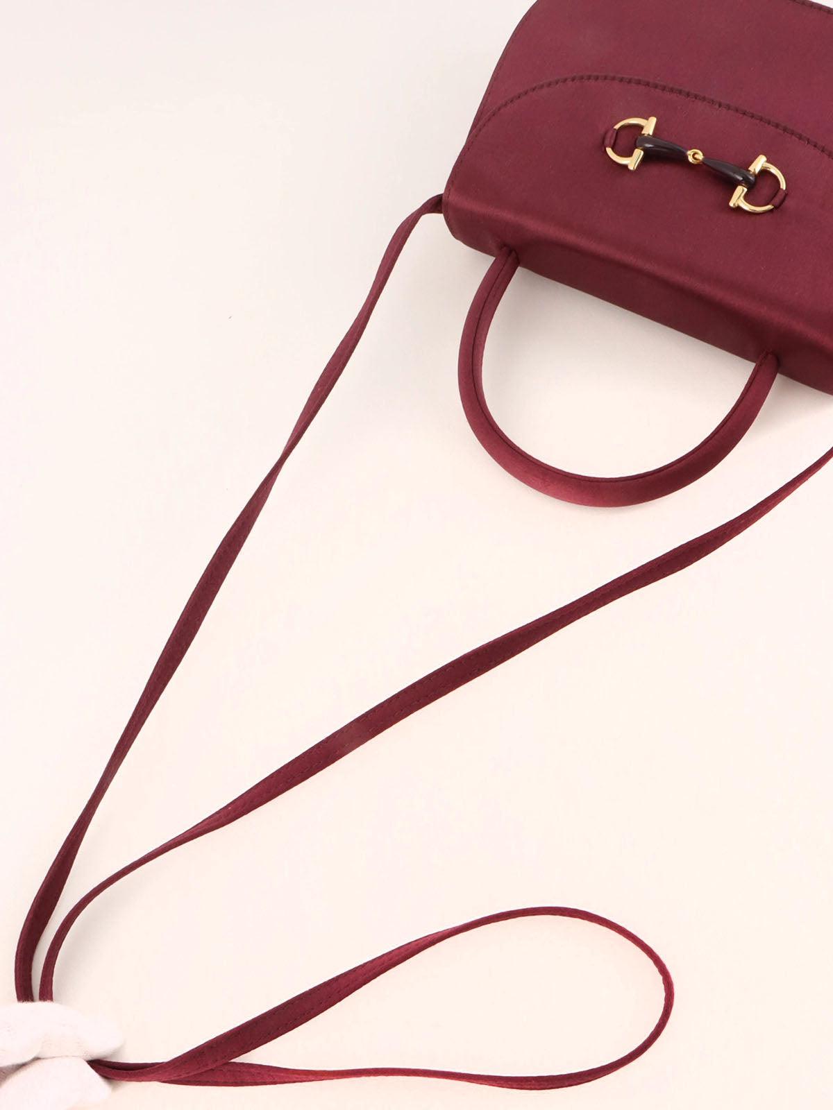 サテンホースビットプレートミニ2wayバッグ ワインレッド
