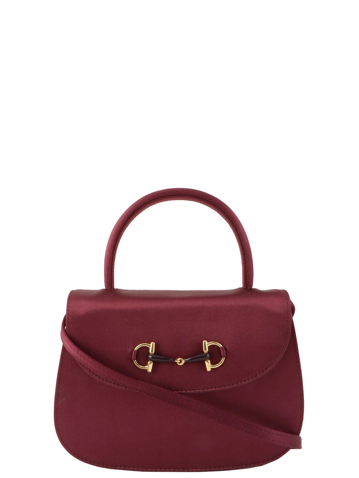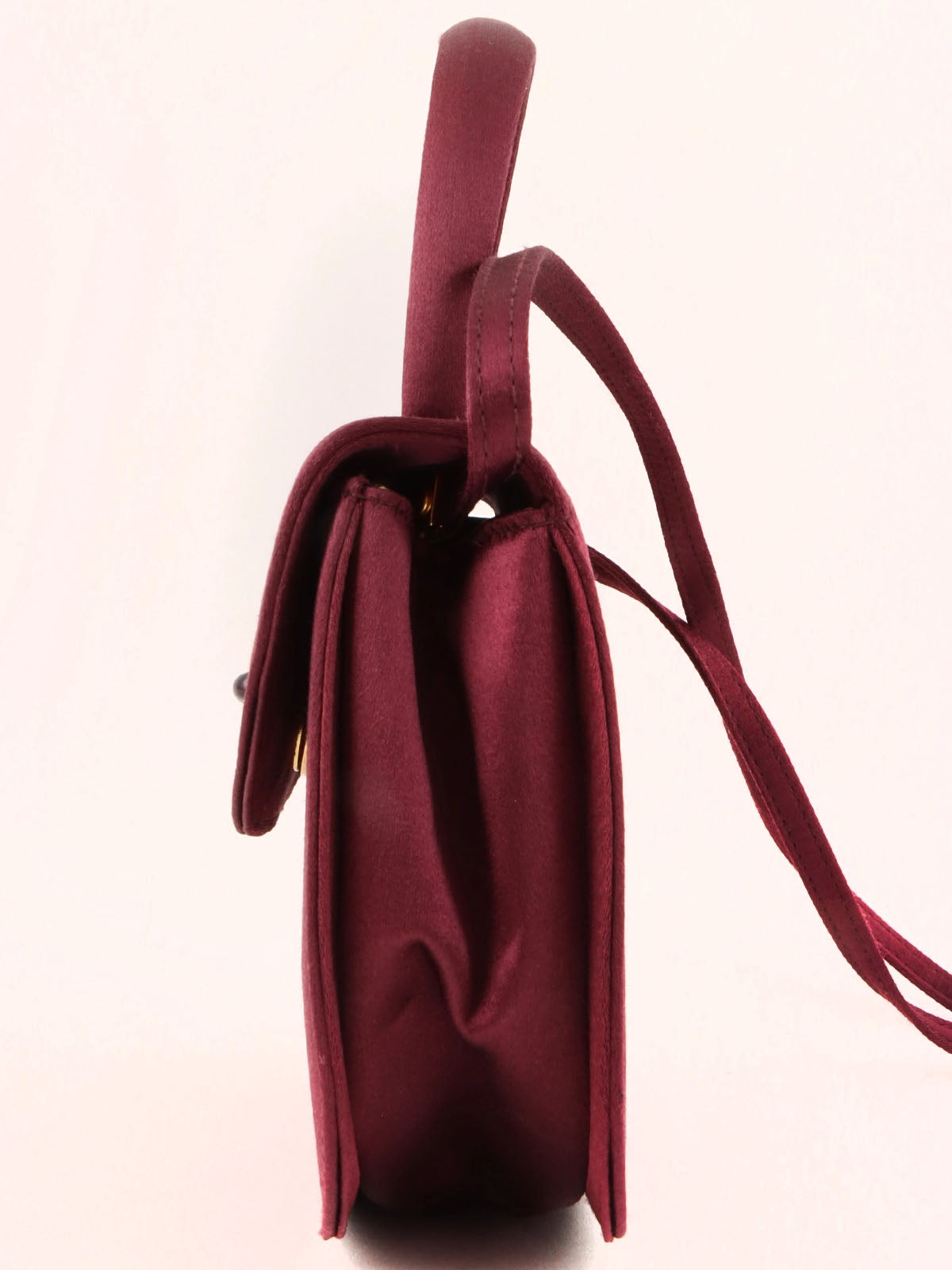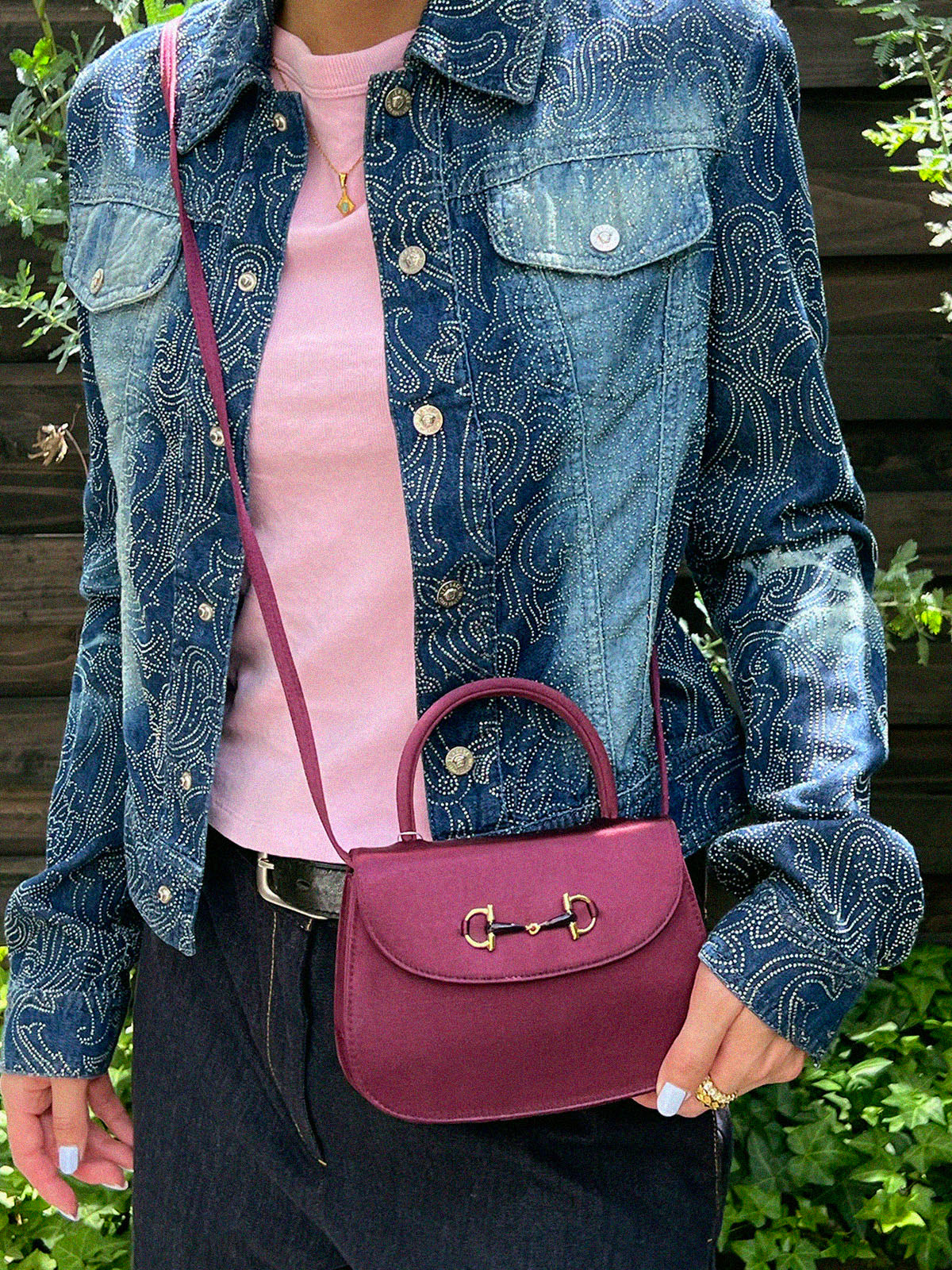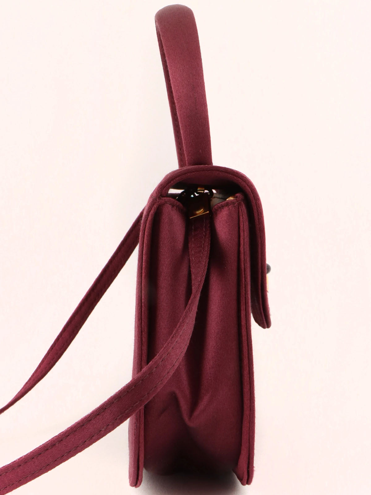 サテンホースビットプレートミニ2wayバッグ ワインレッド