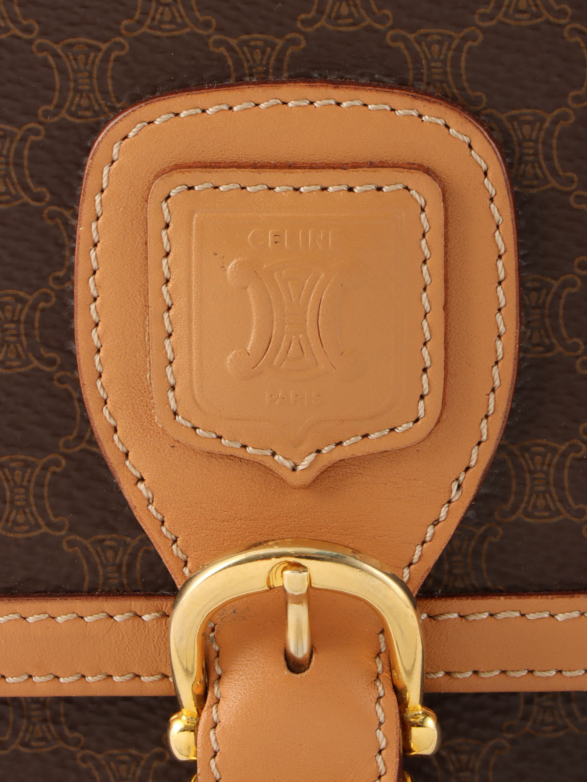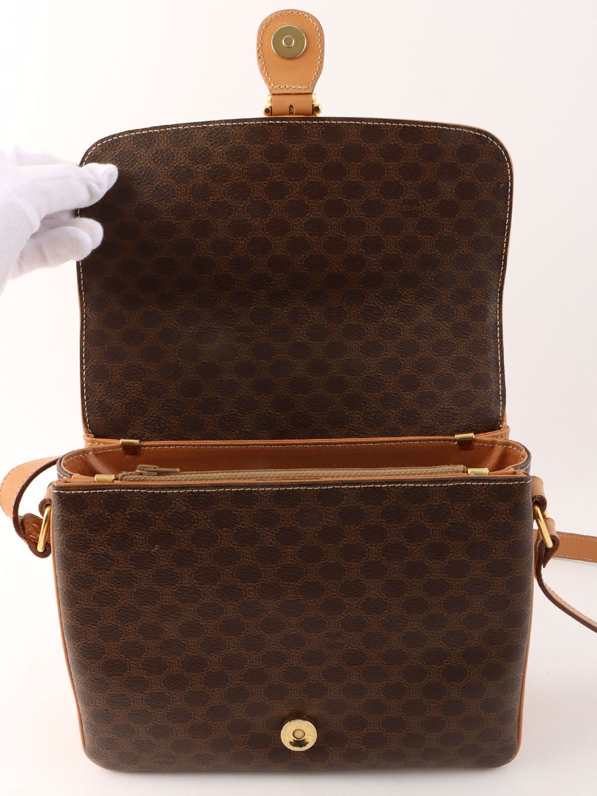 マカダムパターンロゴエンボスショルダーバッグ ブラウン