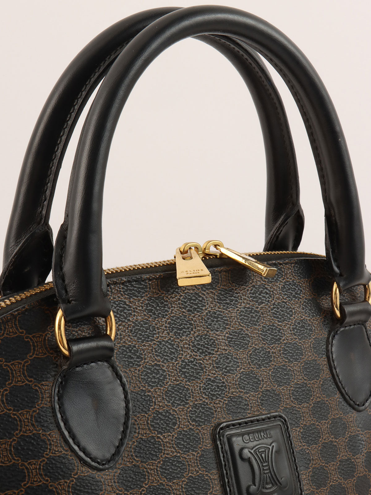 マカダムパターンロゴエンボスハンドバッグ ダークブラウン/ブラック