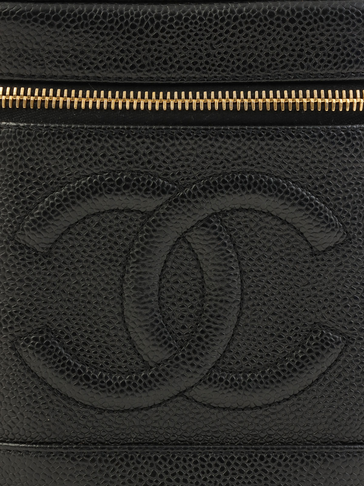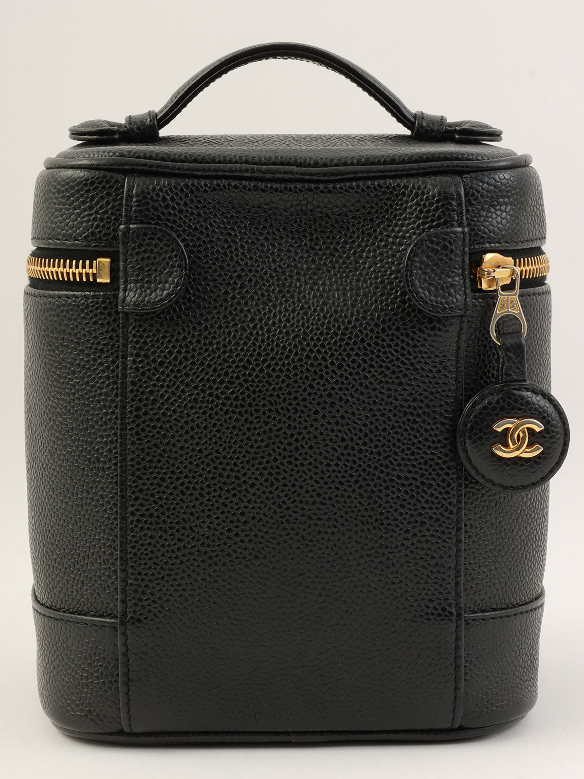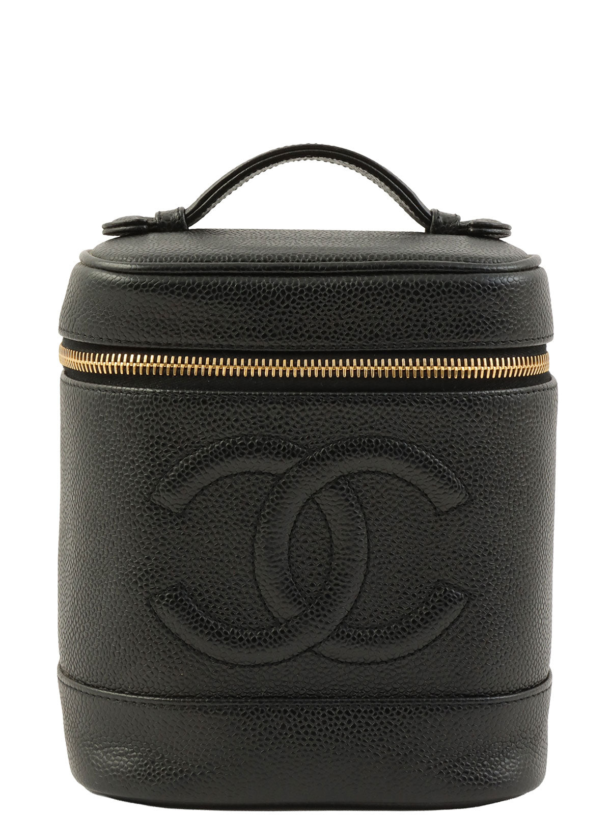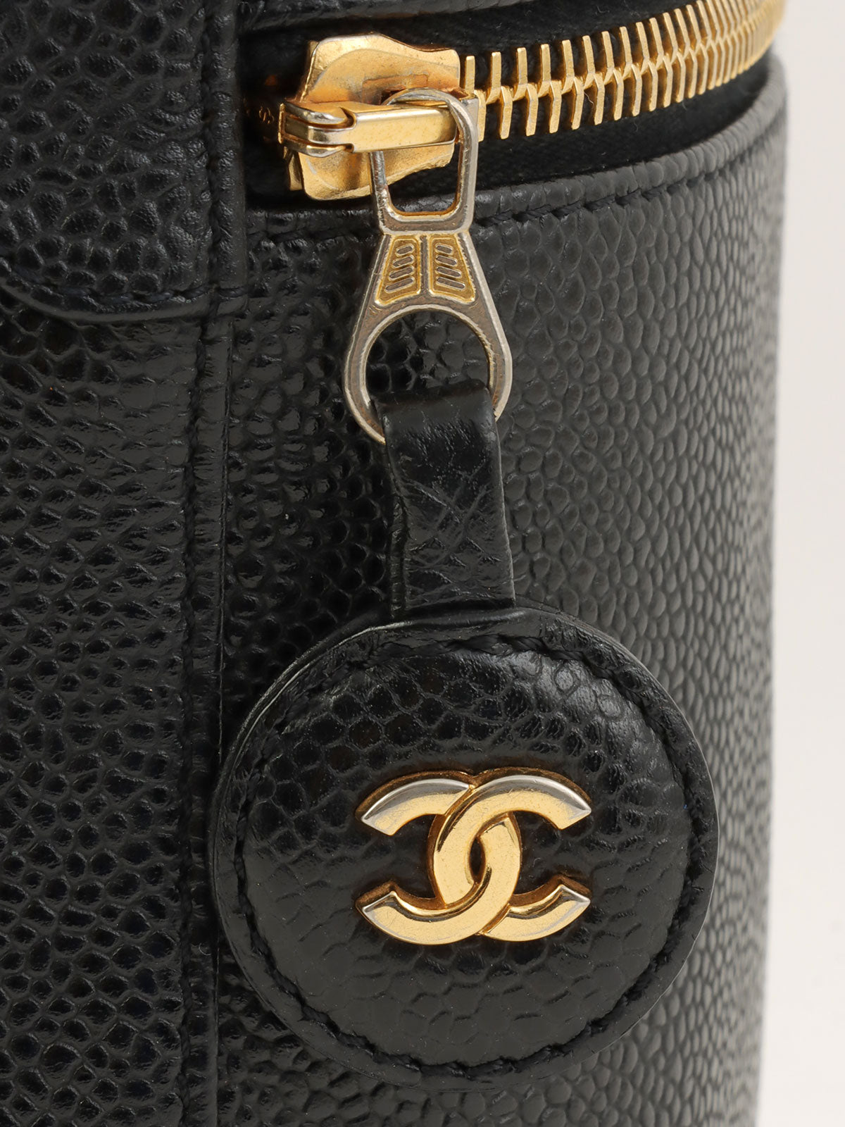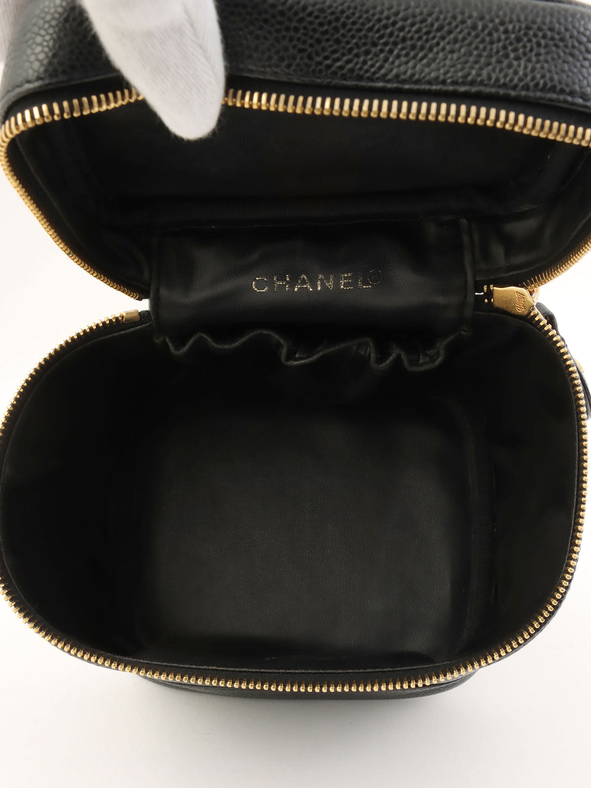2000年頃製 キャビアスキンCCマークステッチバニティ ブラック