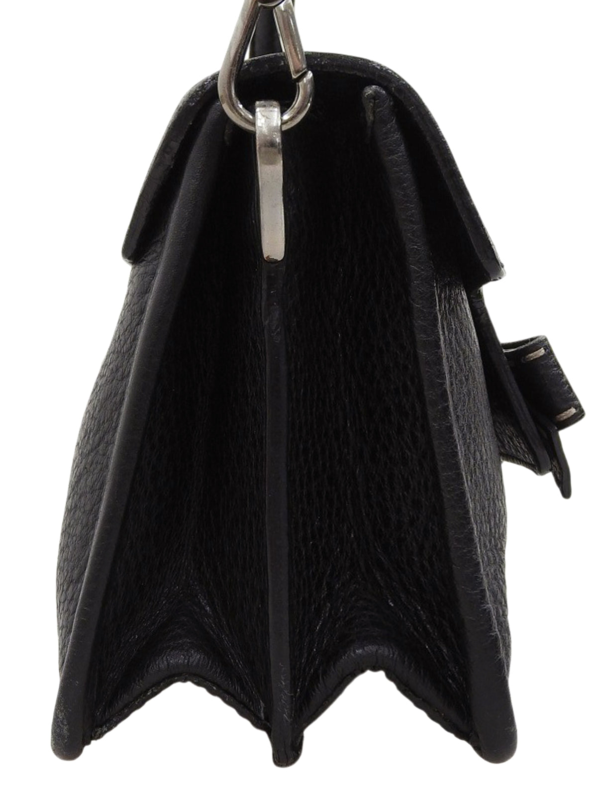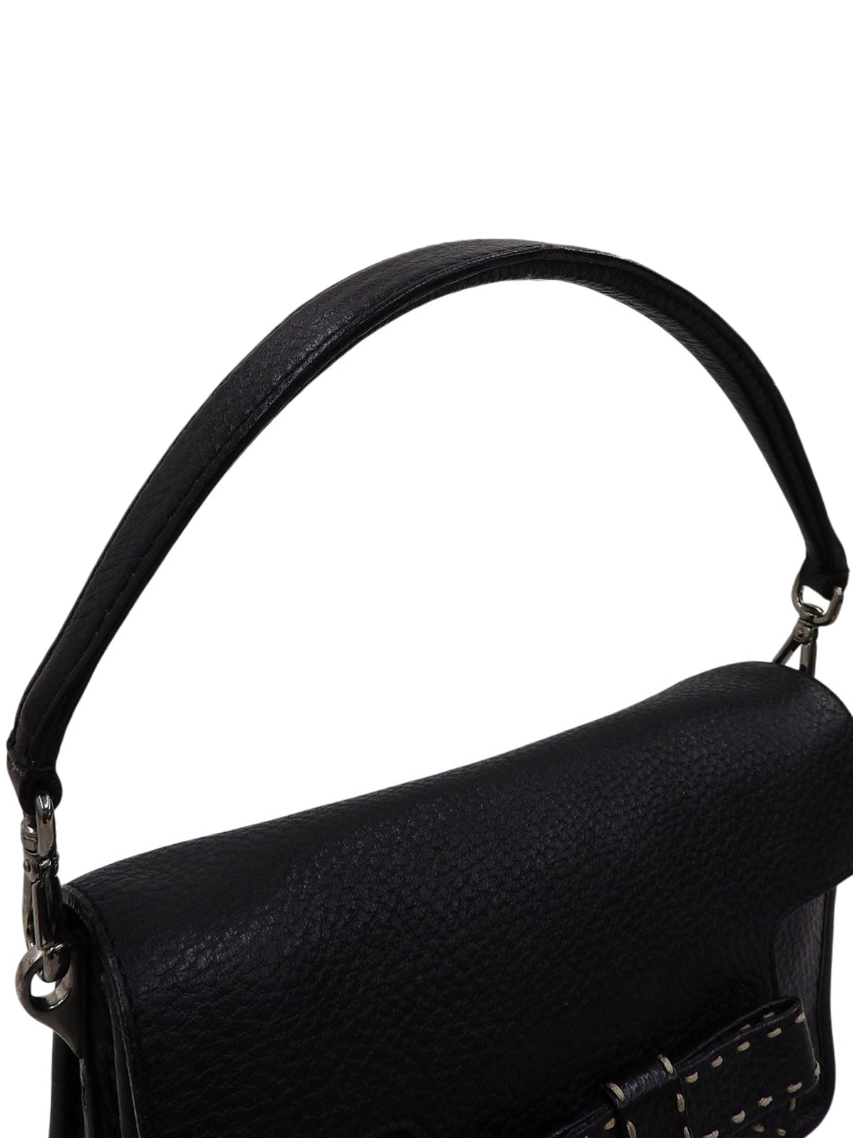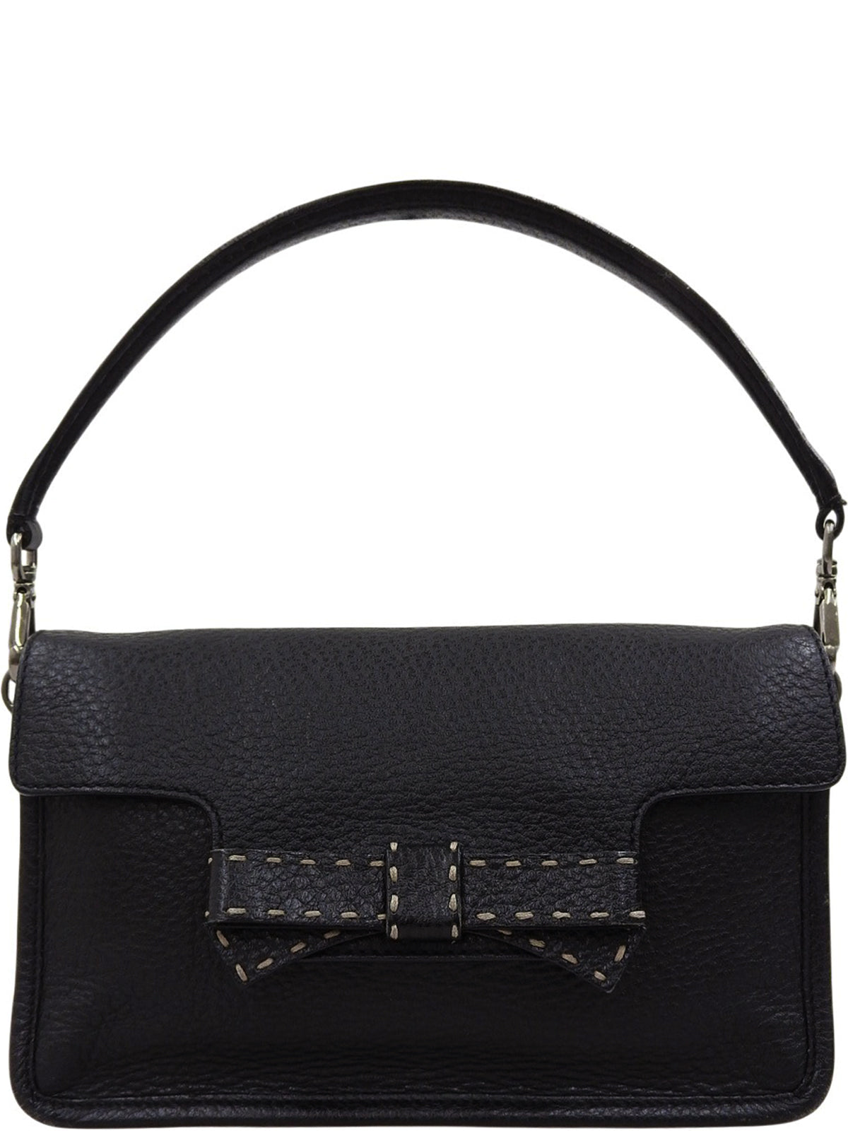 リボンモチーフロゴプレートハンドバッグ ブラック