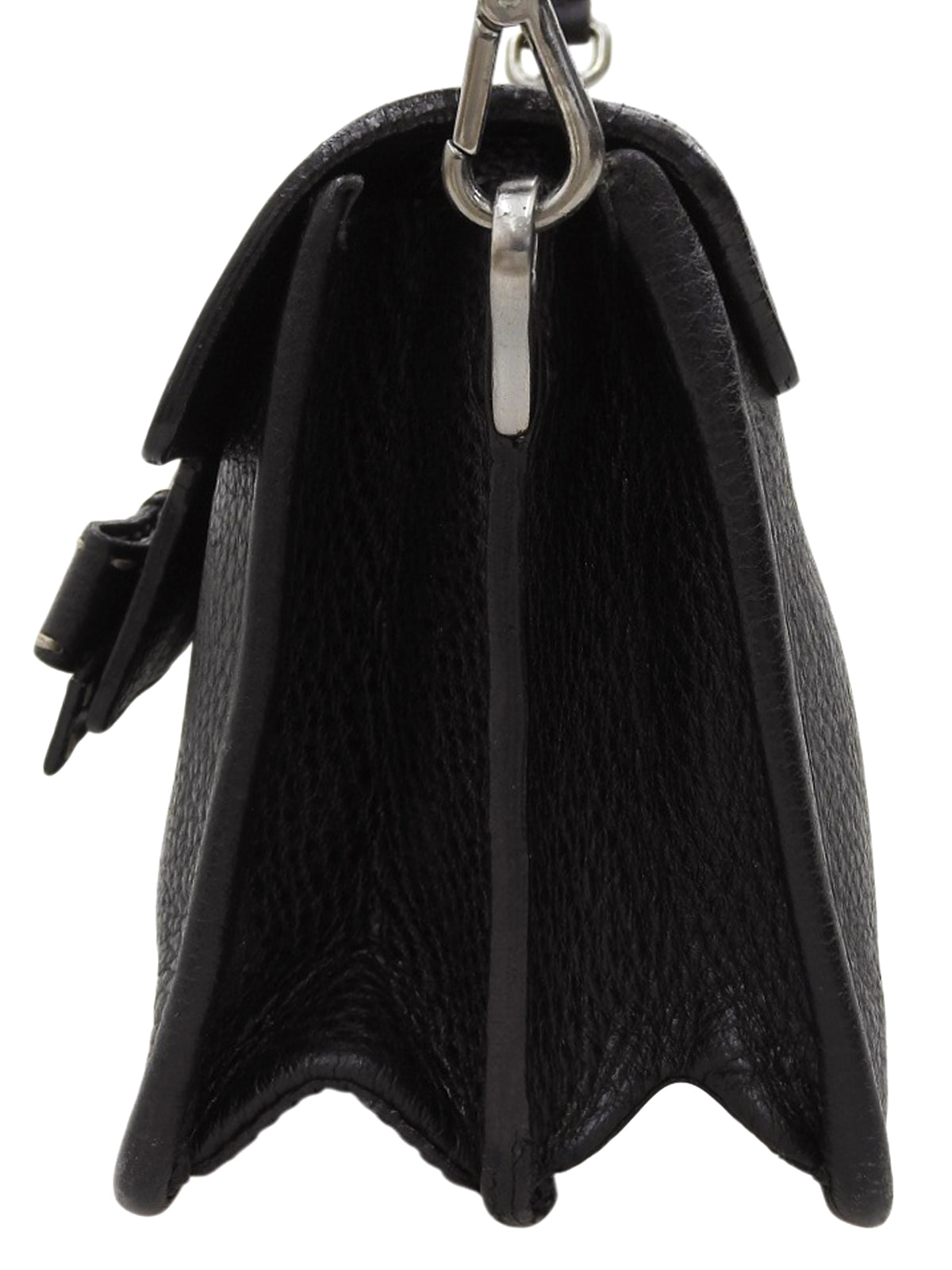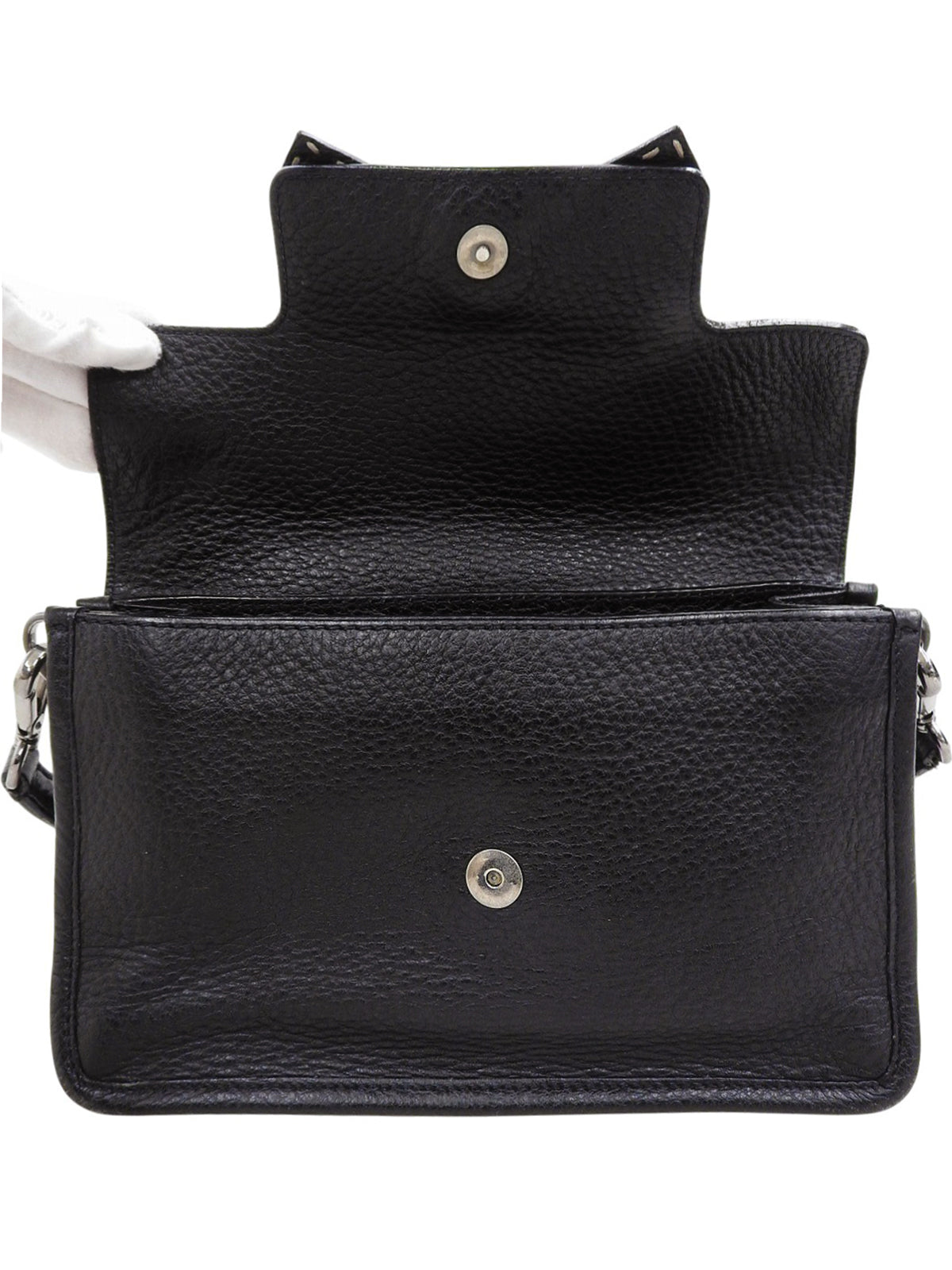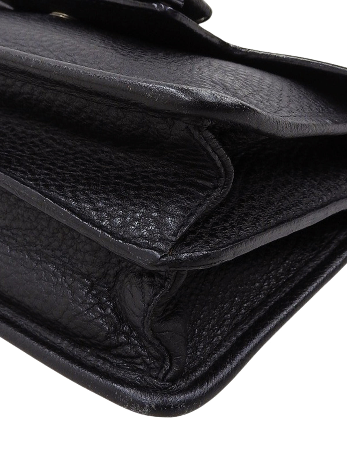 リボンモチーフロゴプレートハンドバッグ ブラック