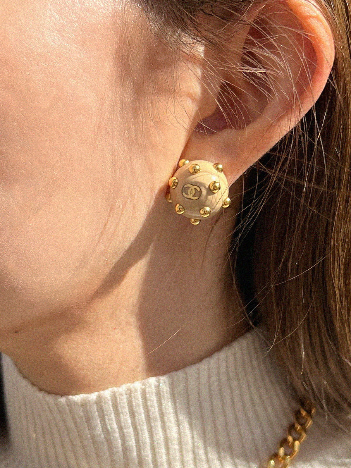 2000年製 ラウンドドットCCマークイヤリング ベージュ/ゴールド