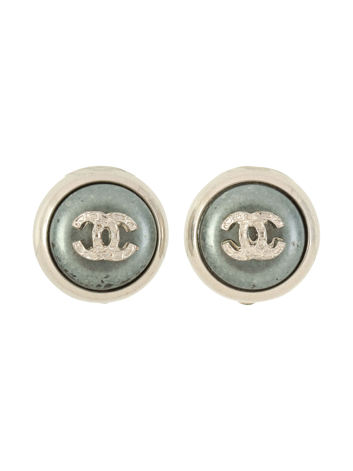 2000年製 ラウンドCCマークイヤリング シルバー/グレー