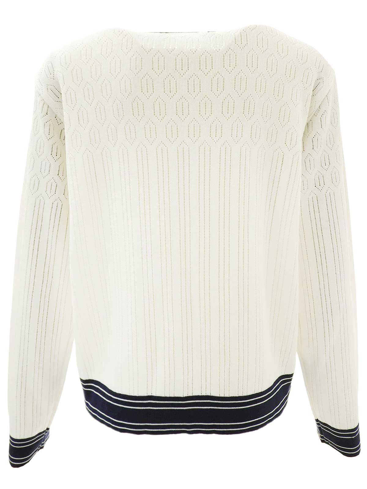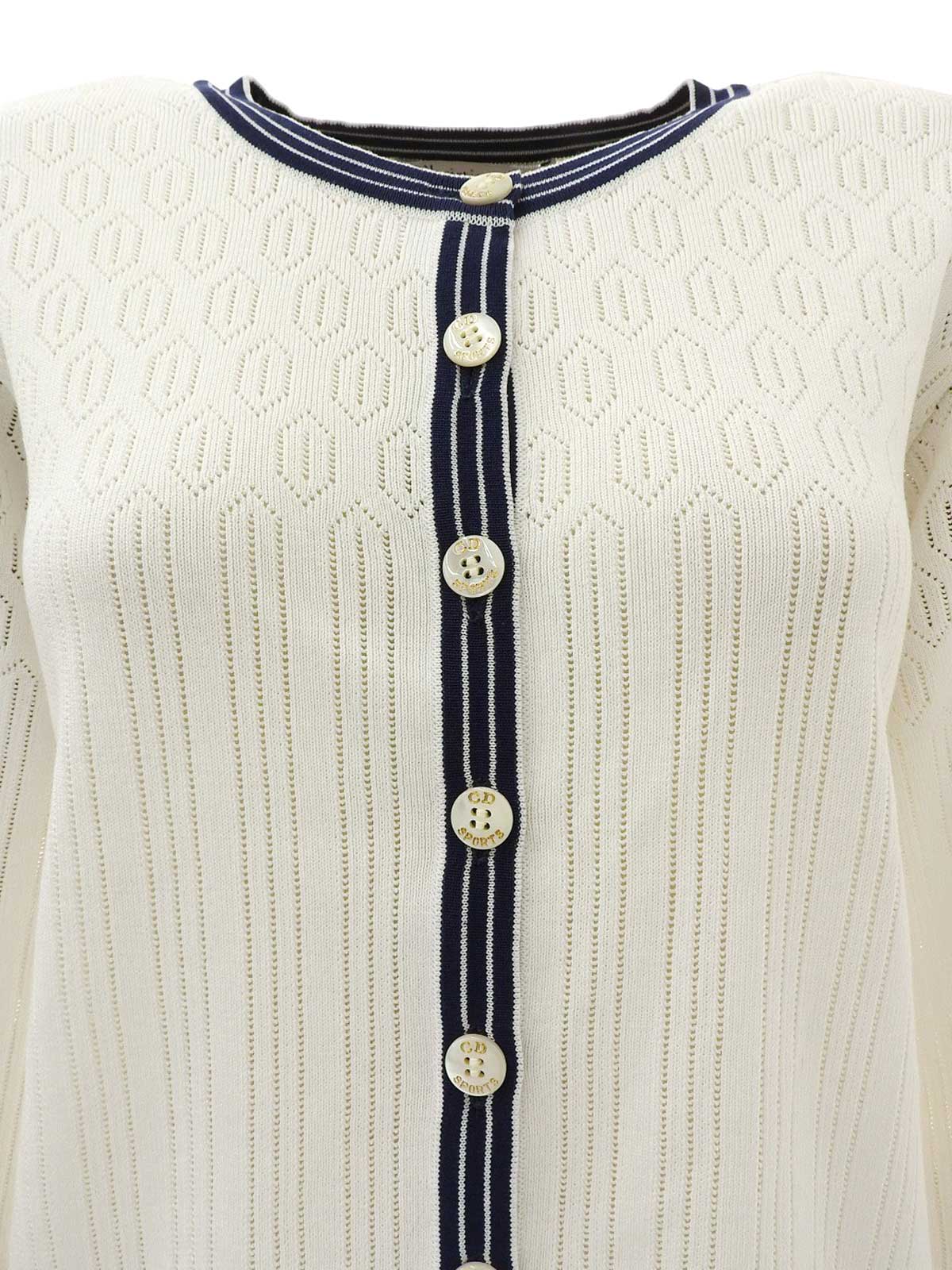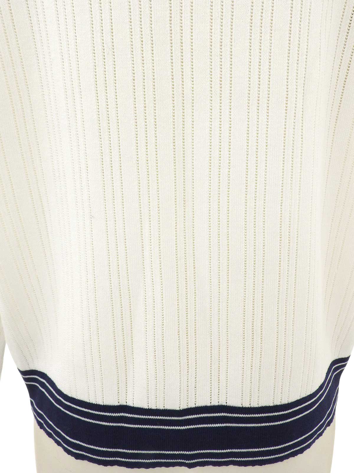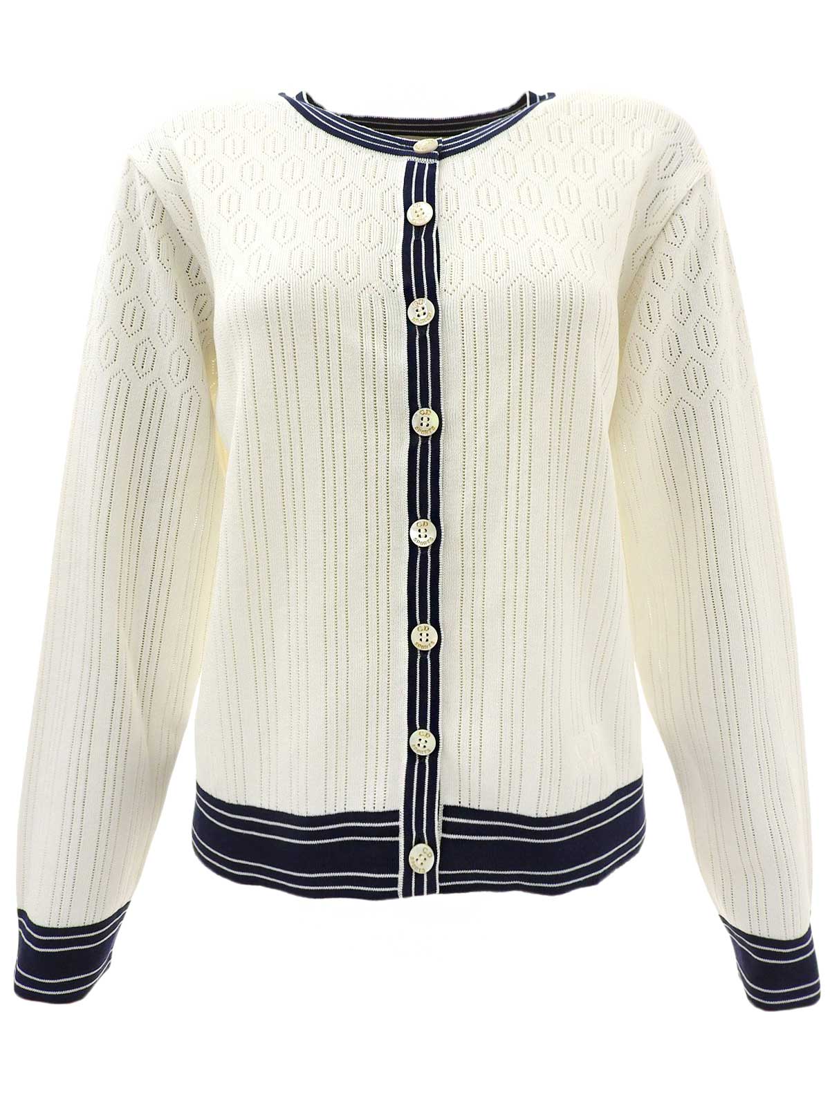 コットンロゴボタンラインカーディガン ホワイト/ネイビー