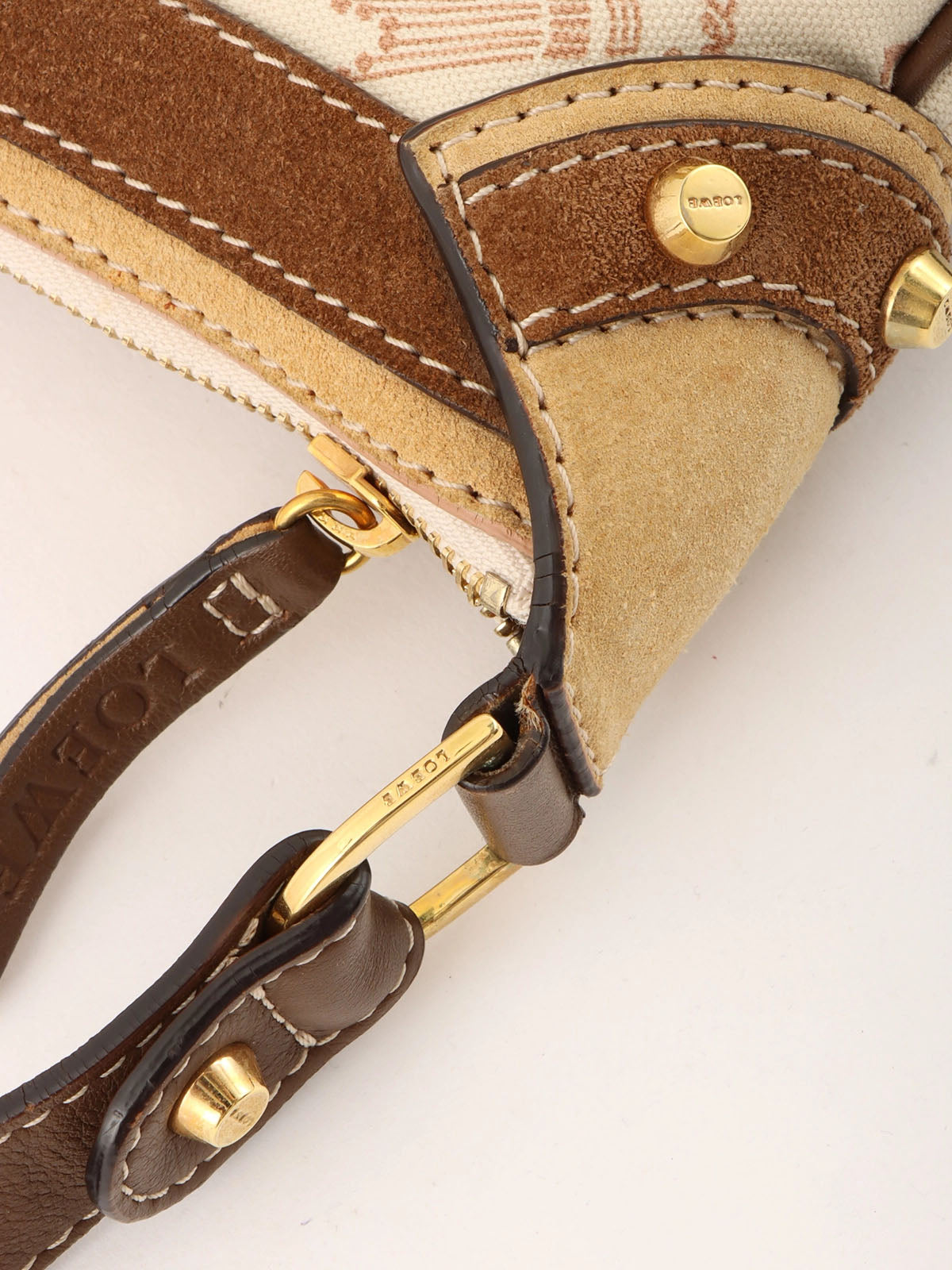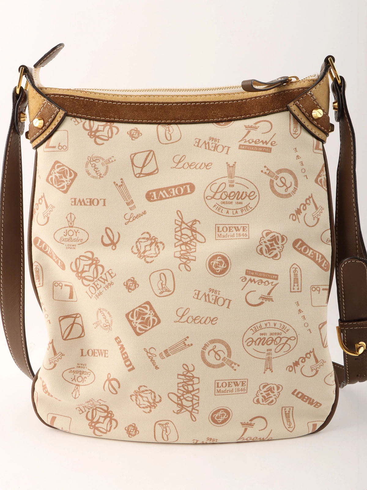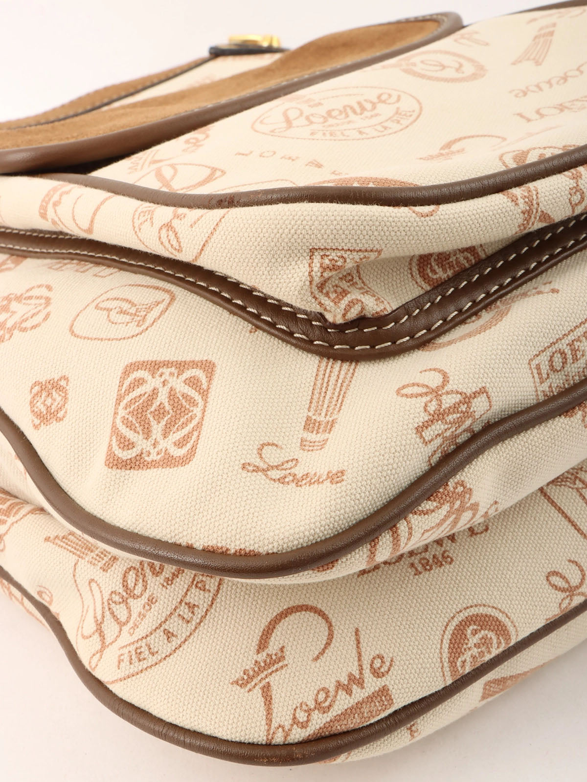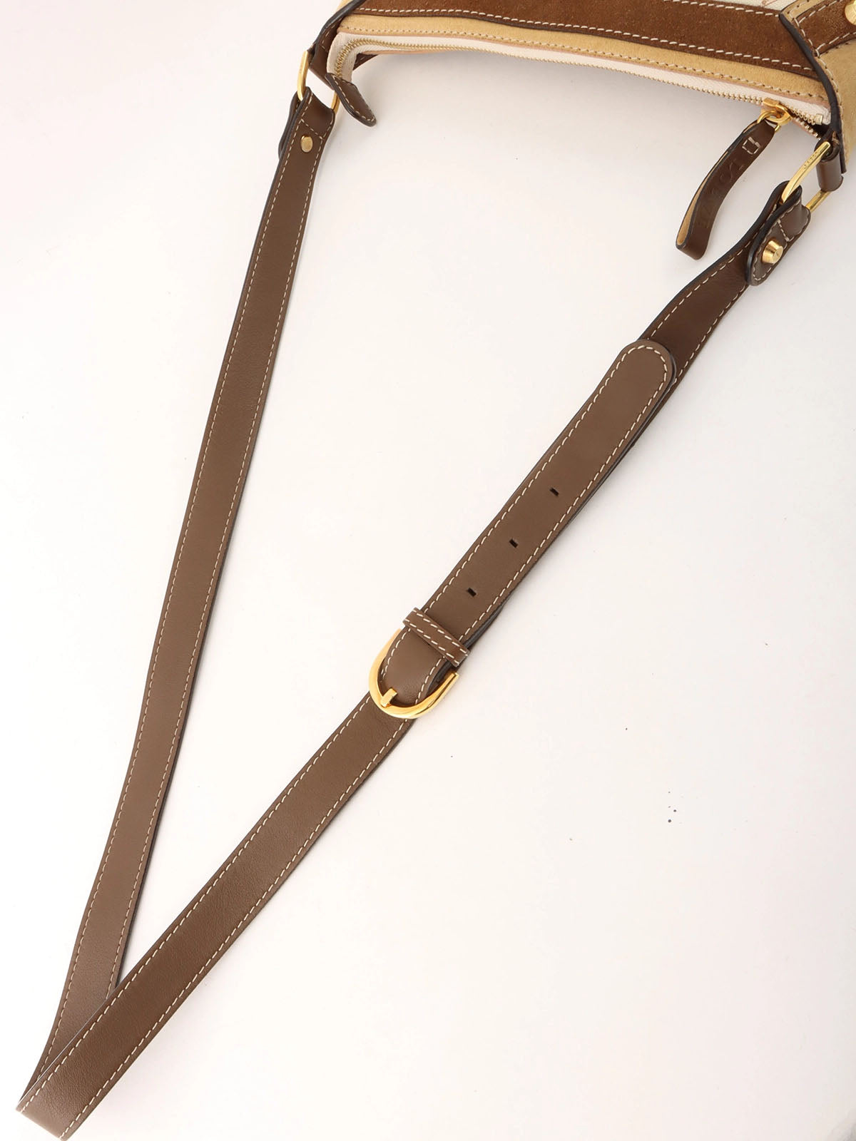 ロゴパターンキャンバススエードコンビショルダーバッグ ベージュ