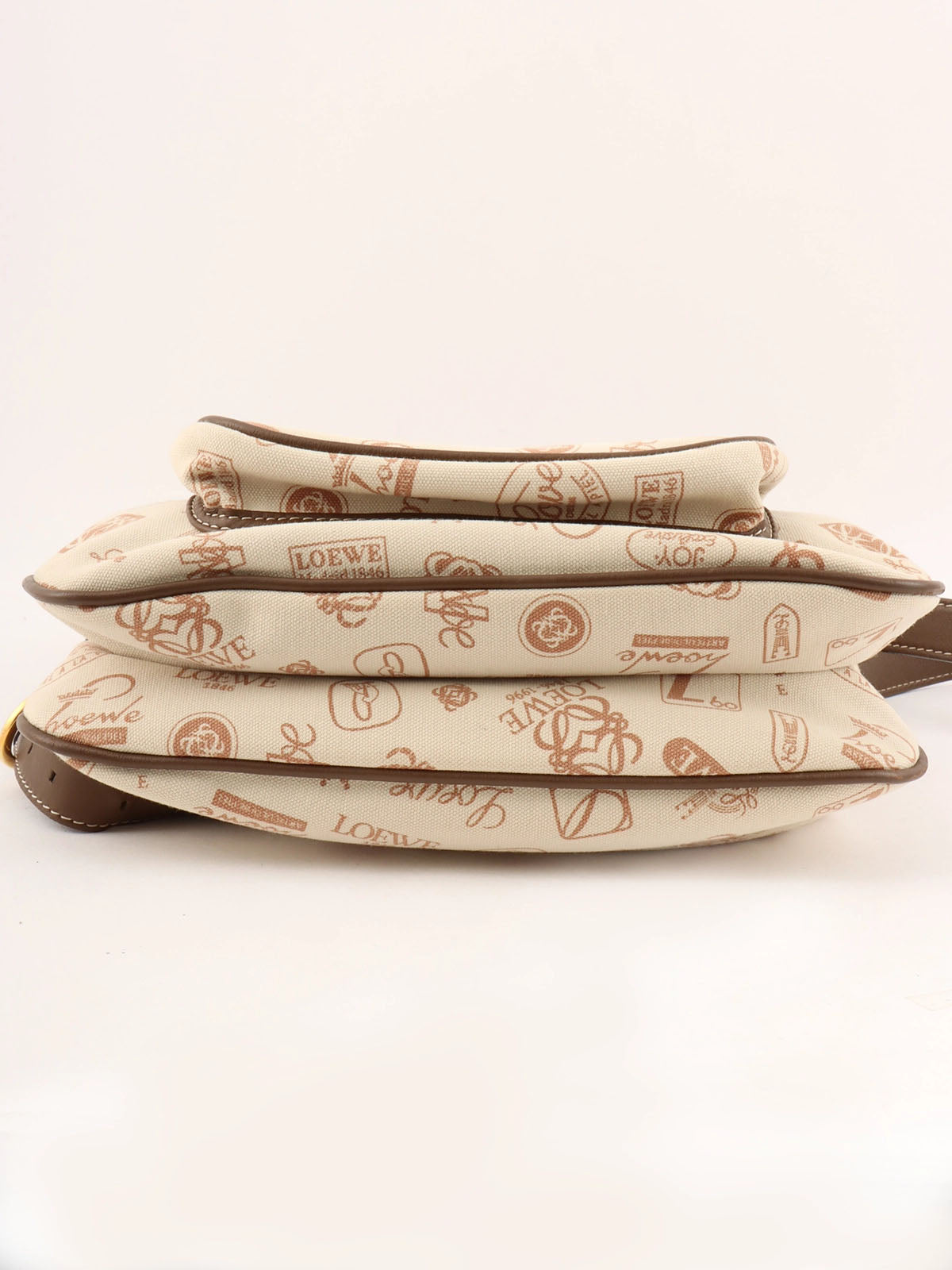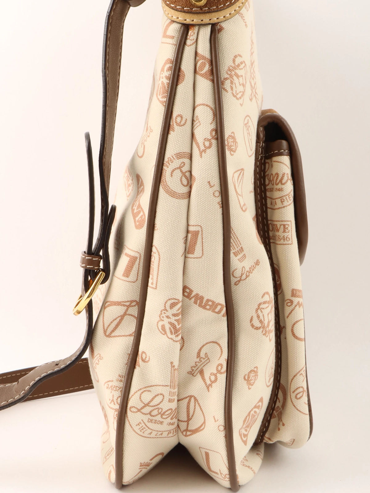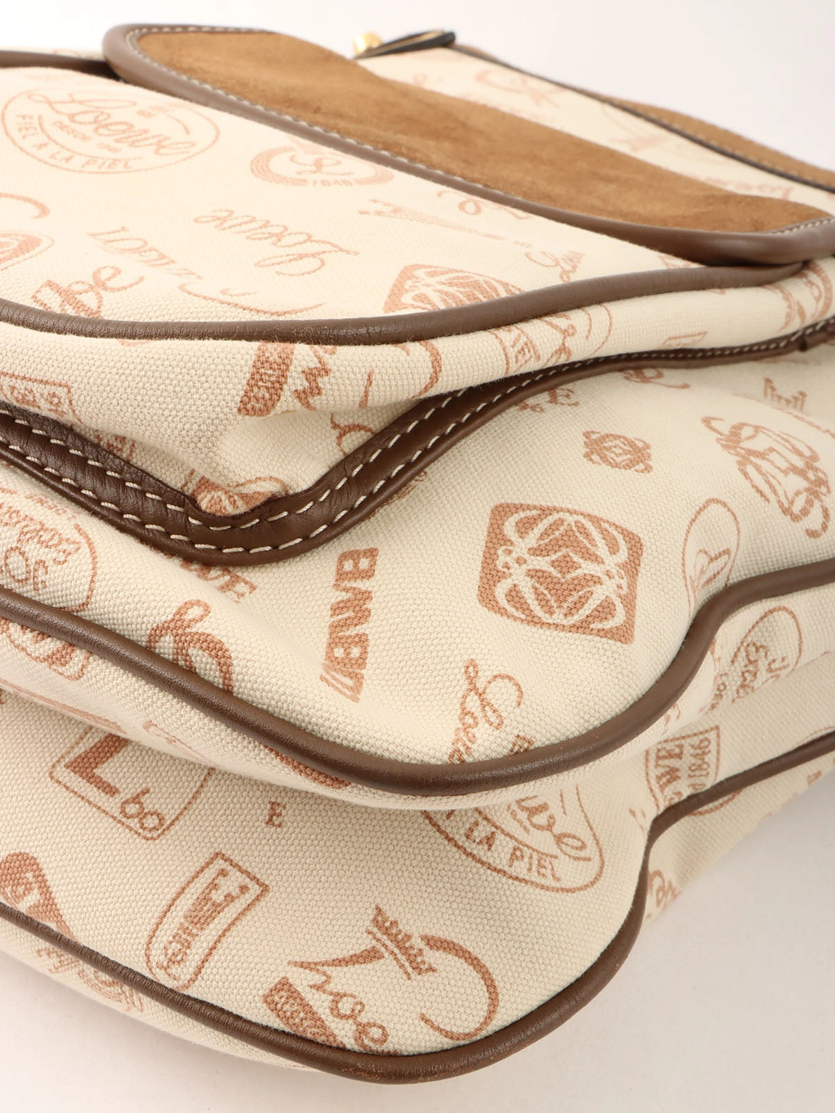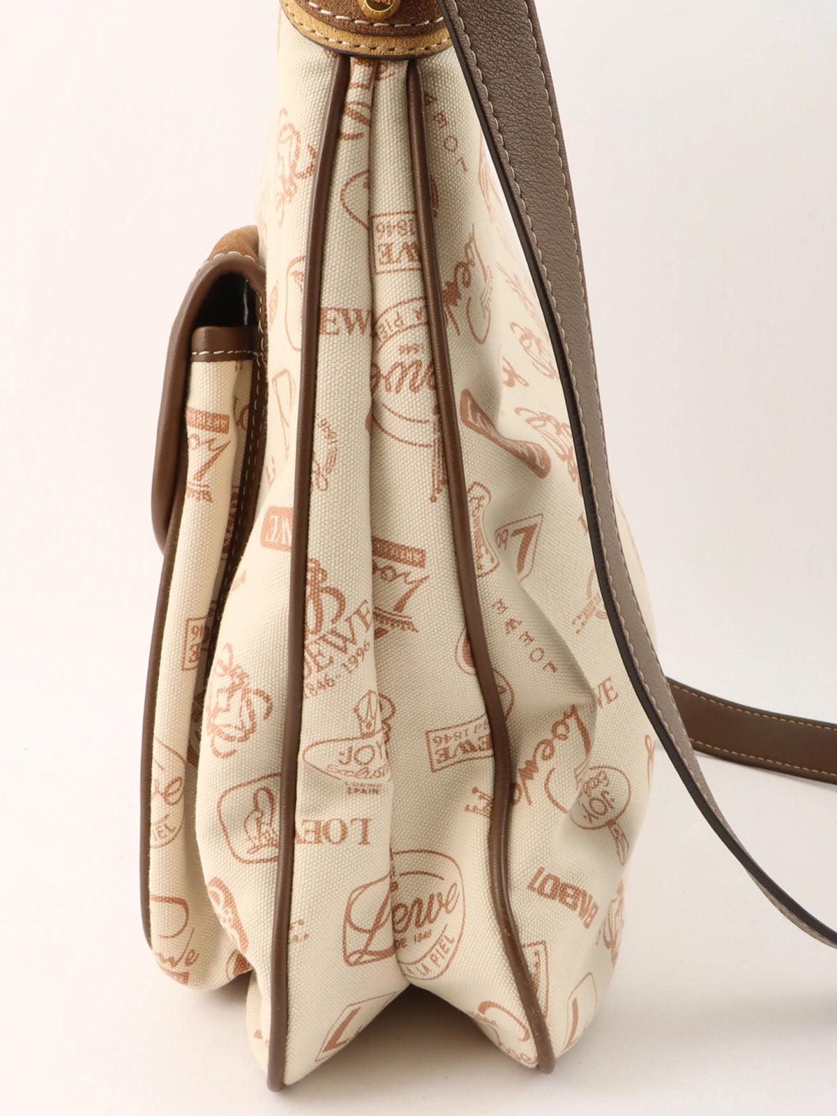 ロゴパターンキャンバススエードコンビショルダーバッグ ベージュ