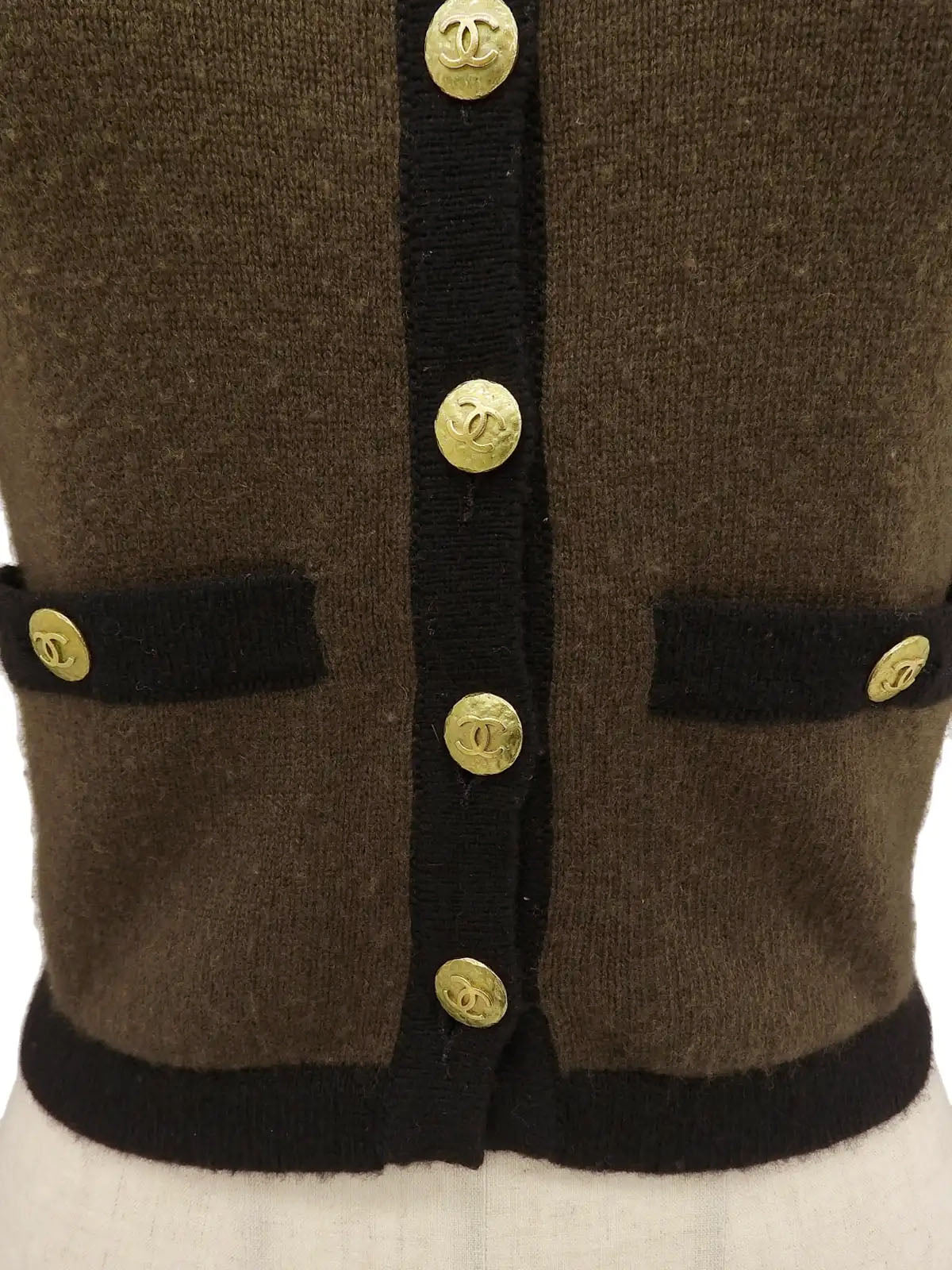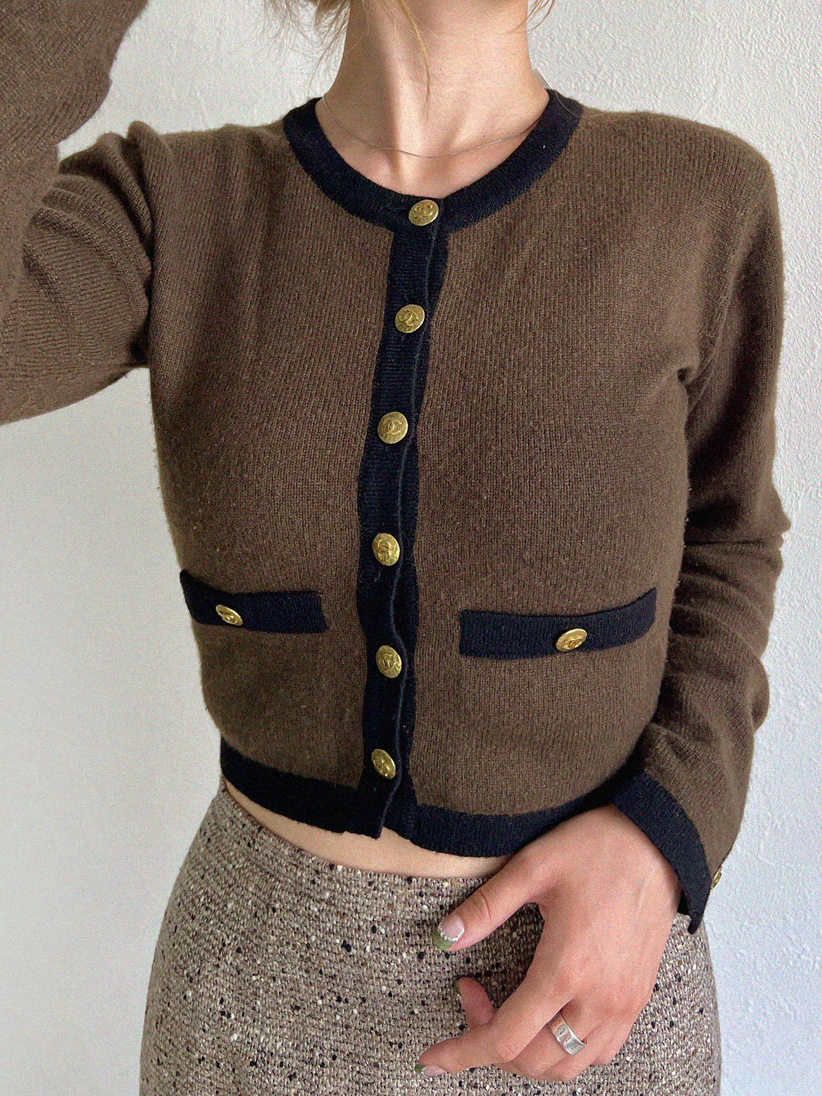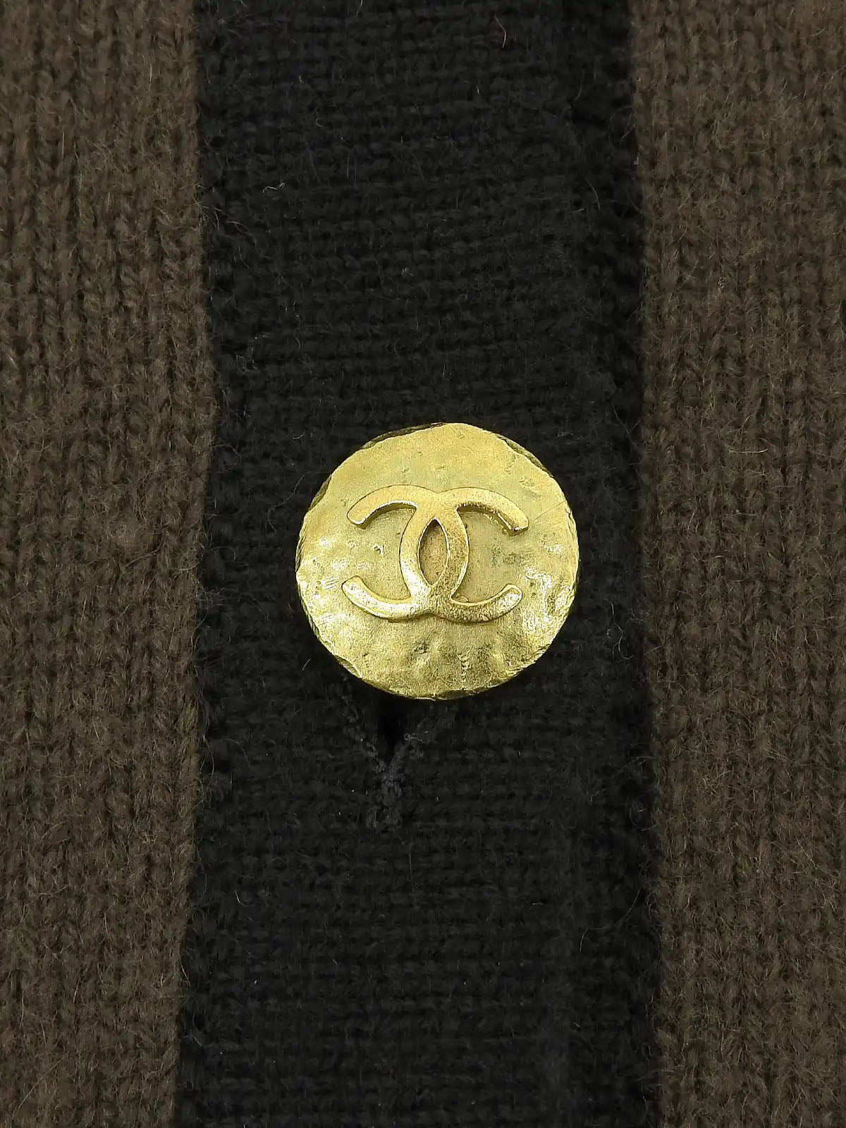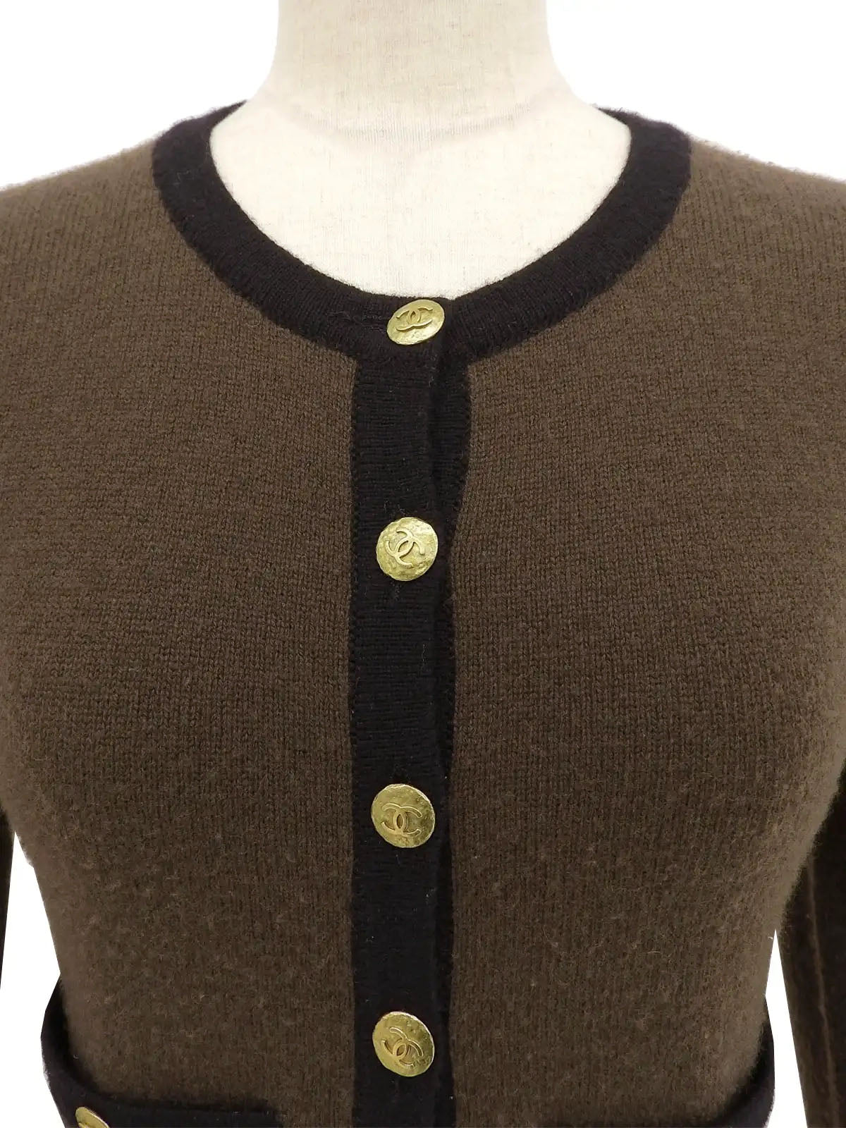 1994年製 カシミアバイカラーCCマークボタンカーディガン ダークブラウン/ブラック