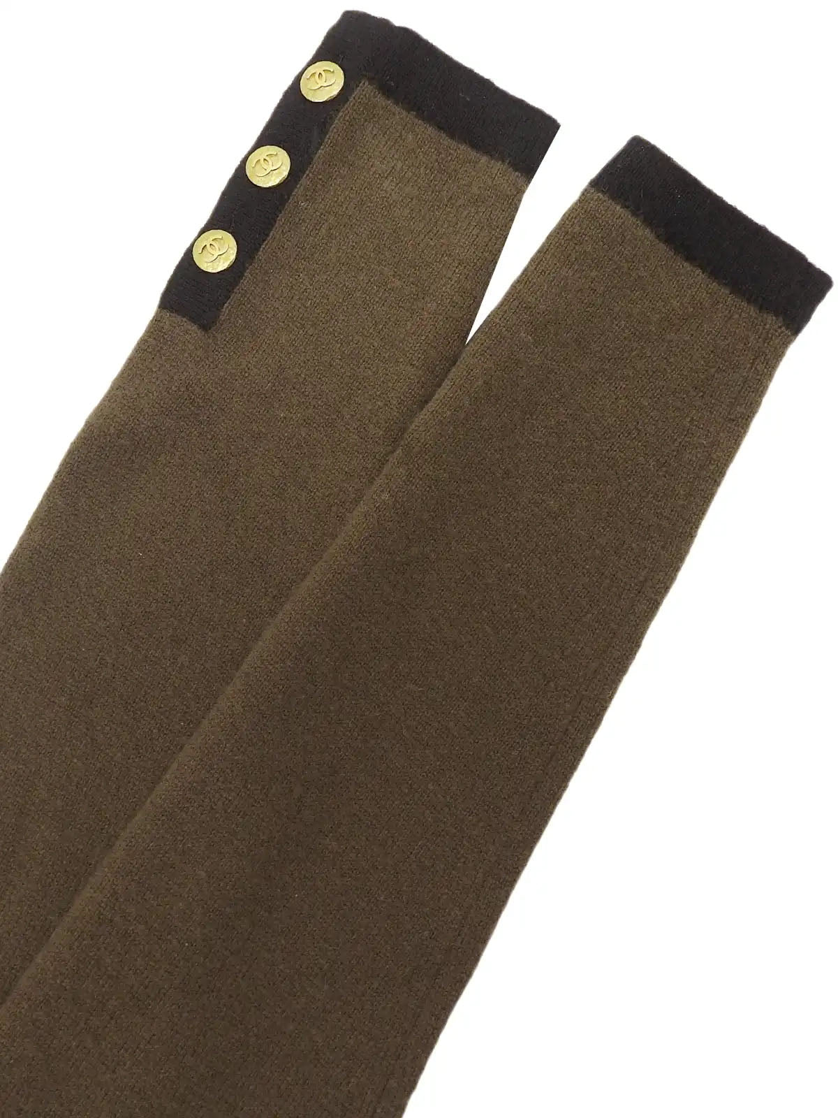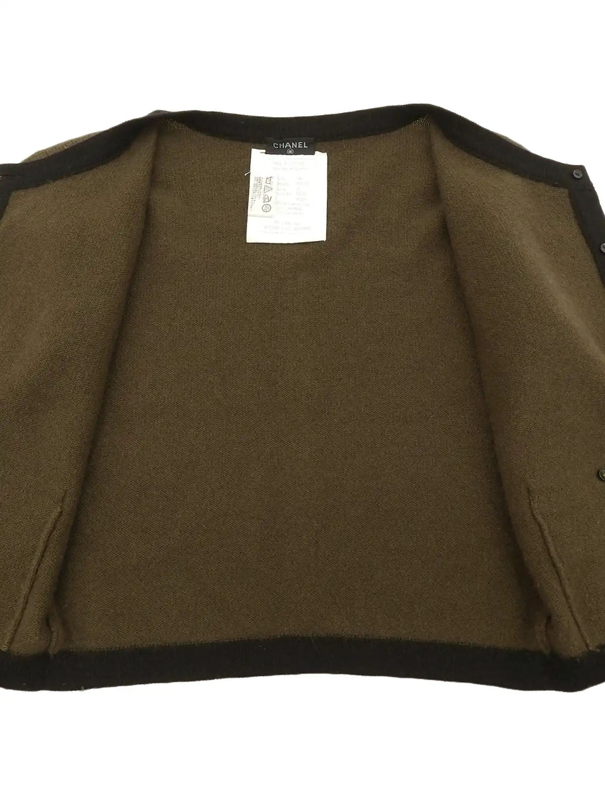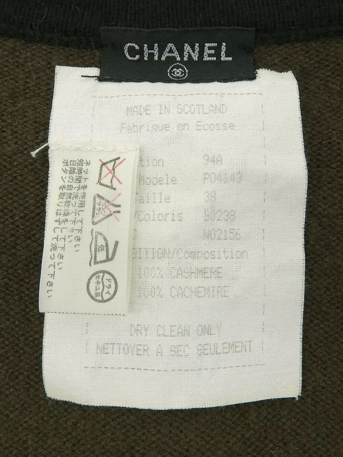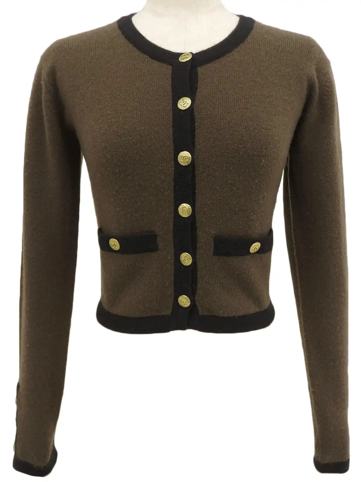 1994年製 カシミアバイカラーCCマークボタンカーディガン ダークブラウン/ブラック