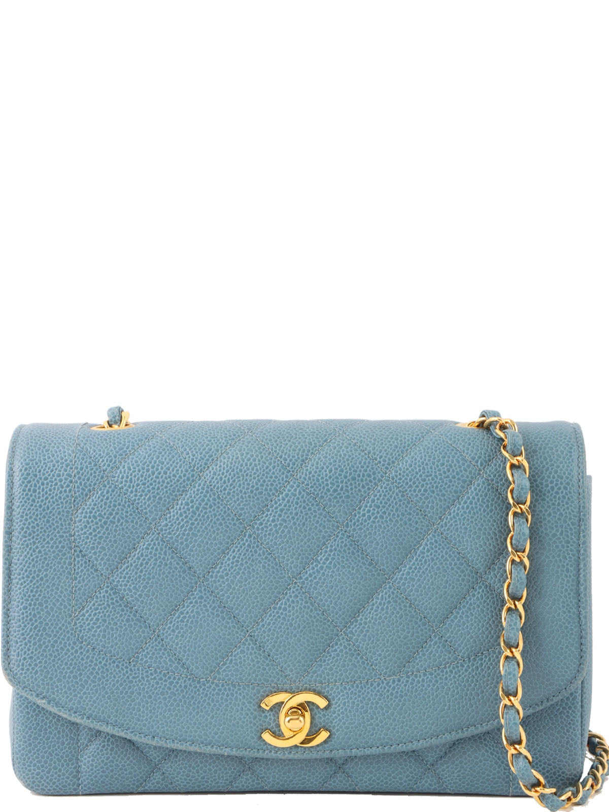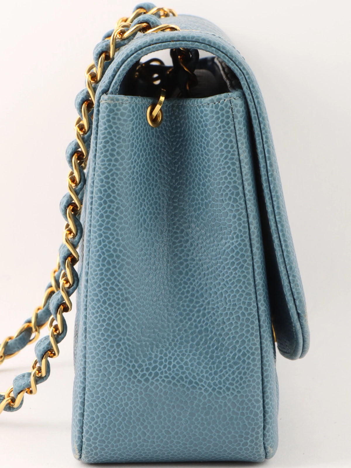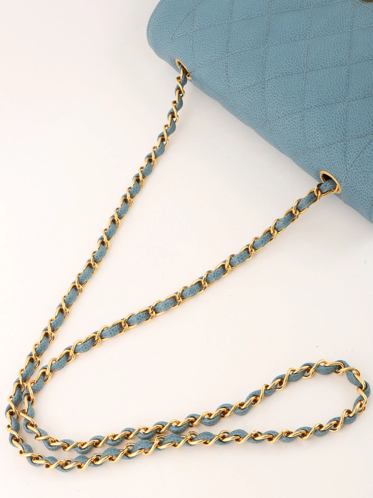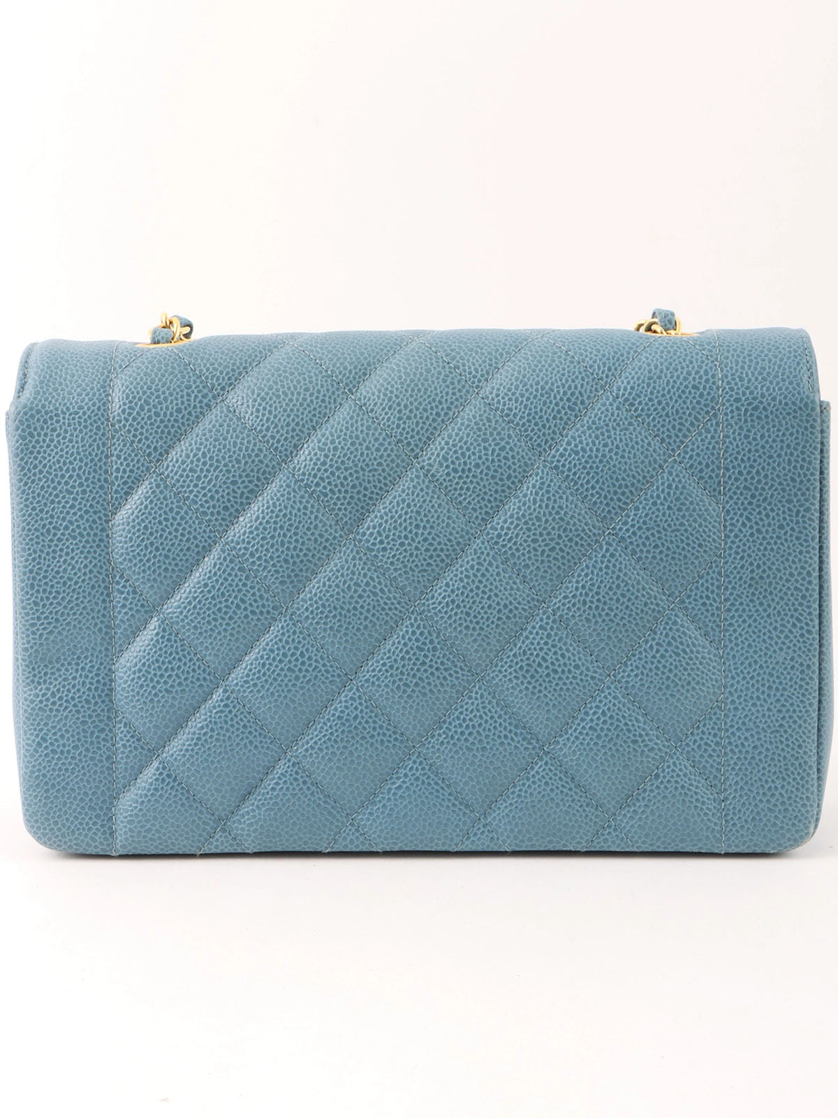 1995年頃製 キャビアスキンダイアナフラップチェーンバッグ25cm ライトブルー