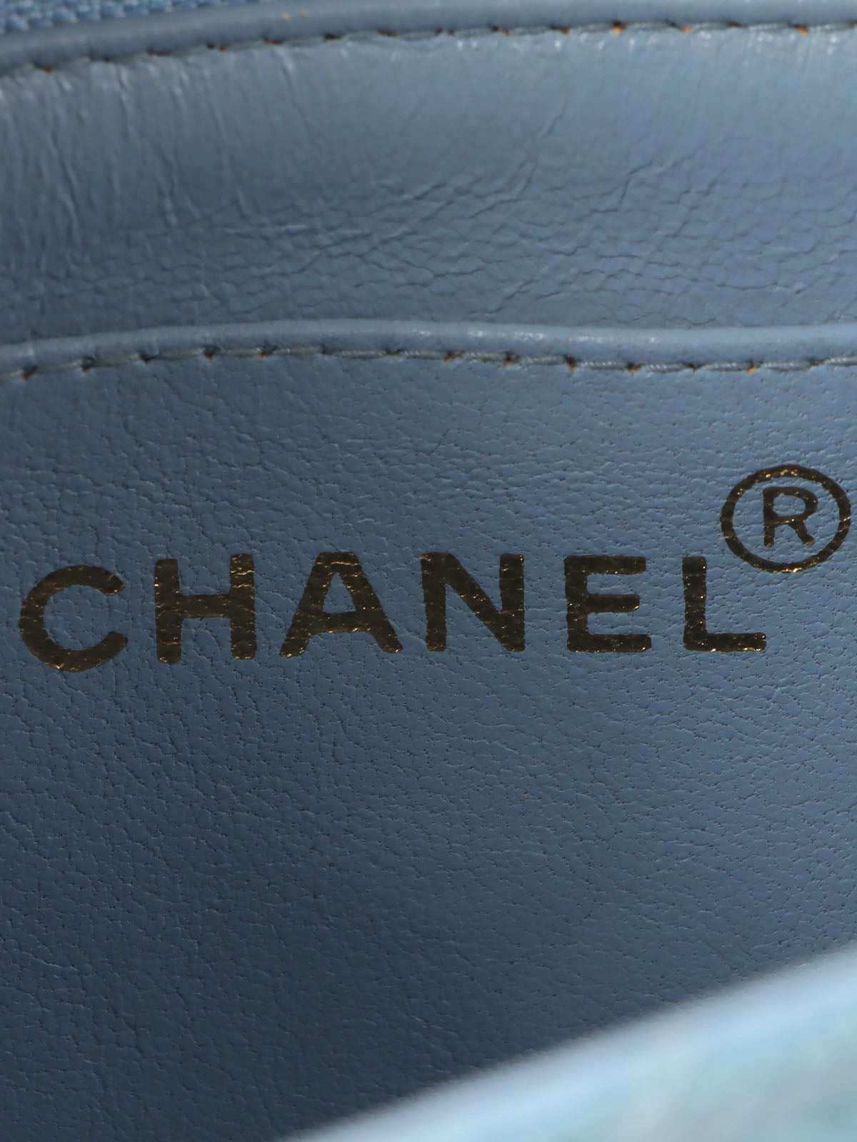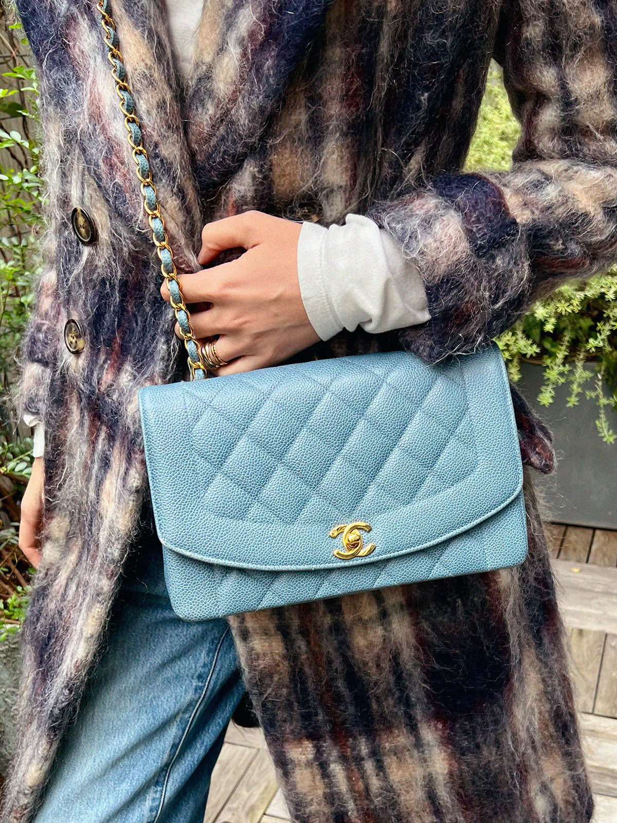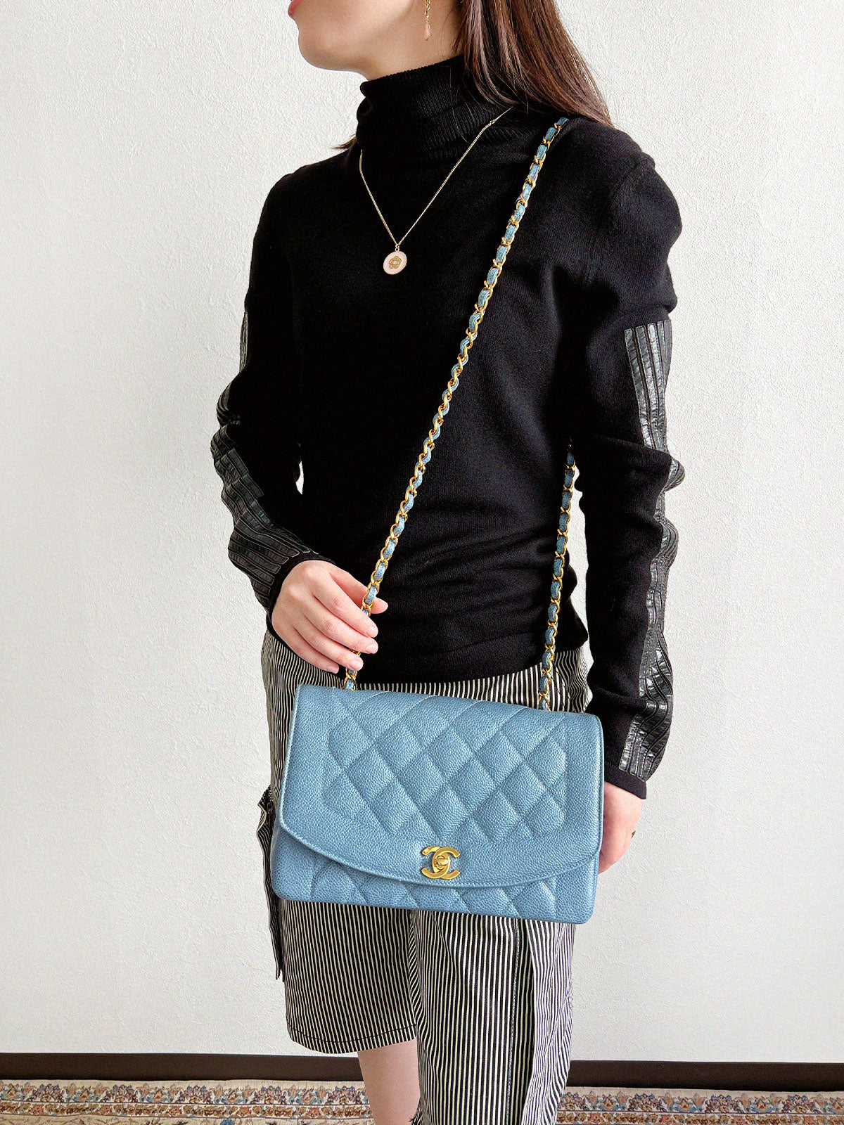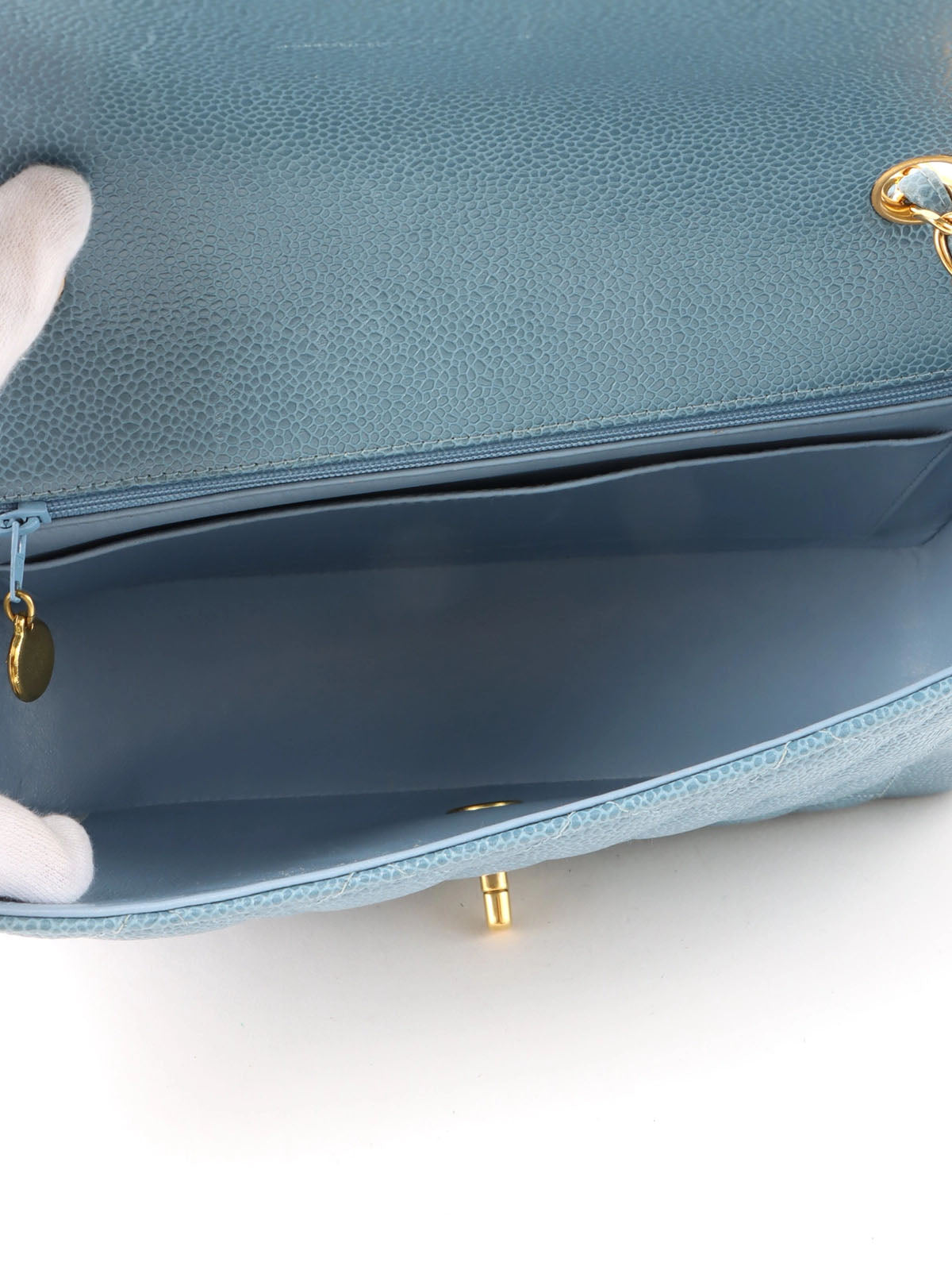 1995年頃製 キャビアスキンダイアナフラップチェーンバッグ25cm ライトブルー