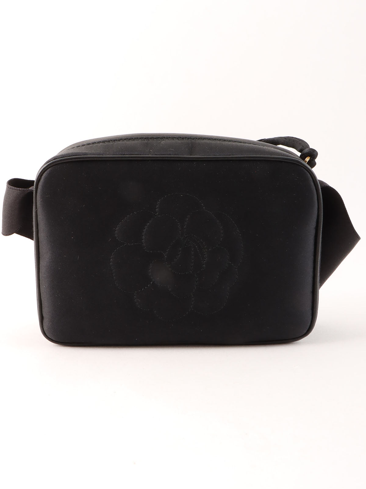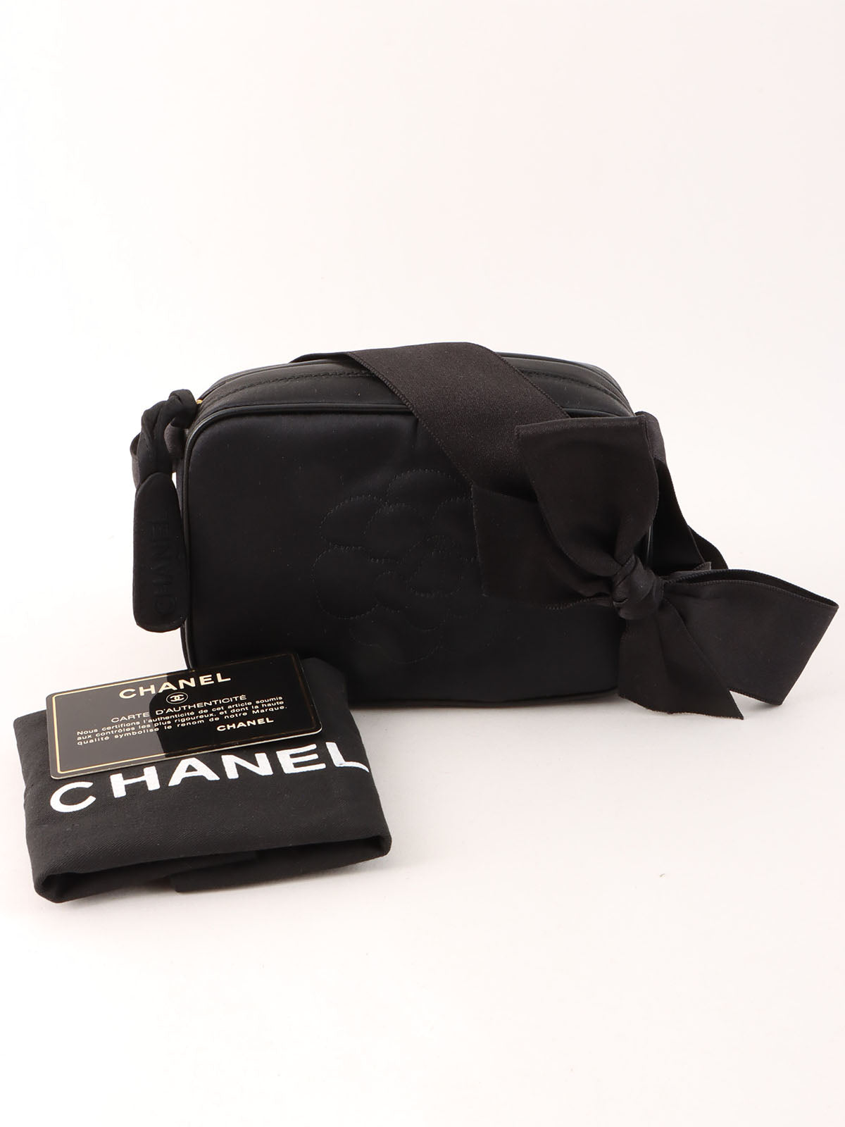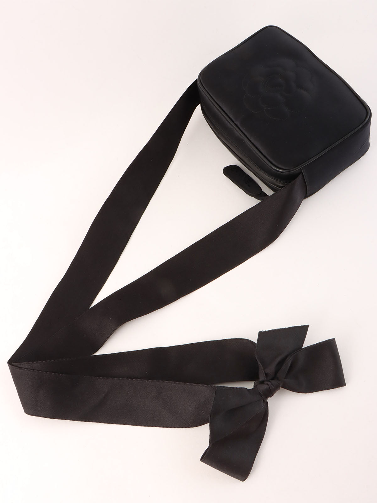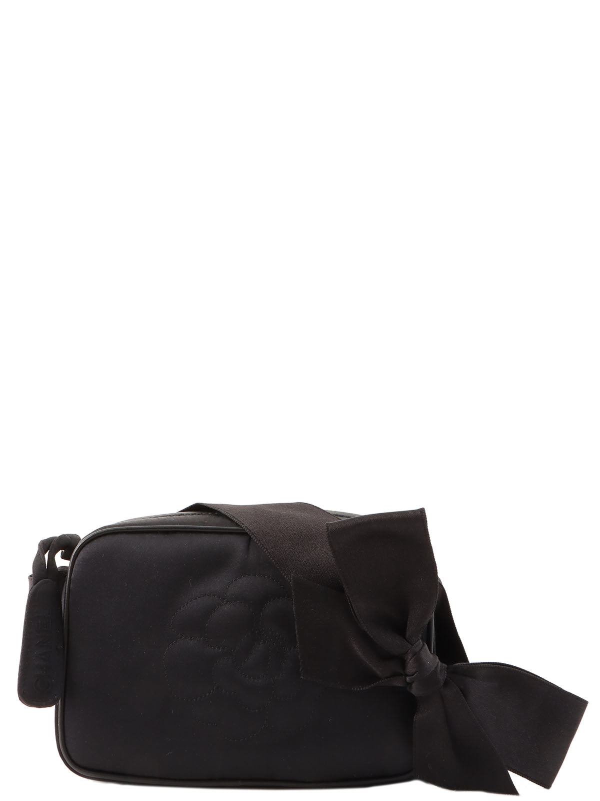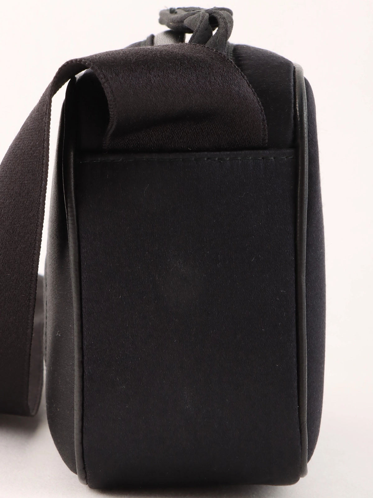 1997年頃製 シルクサテンカメリアステッチリボンショルダーバック ブラック