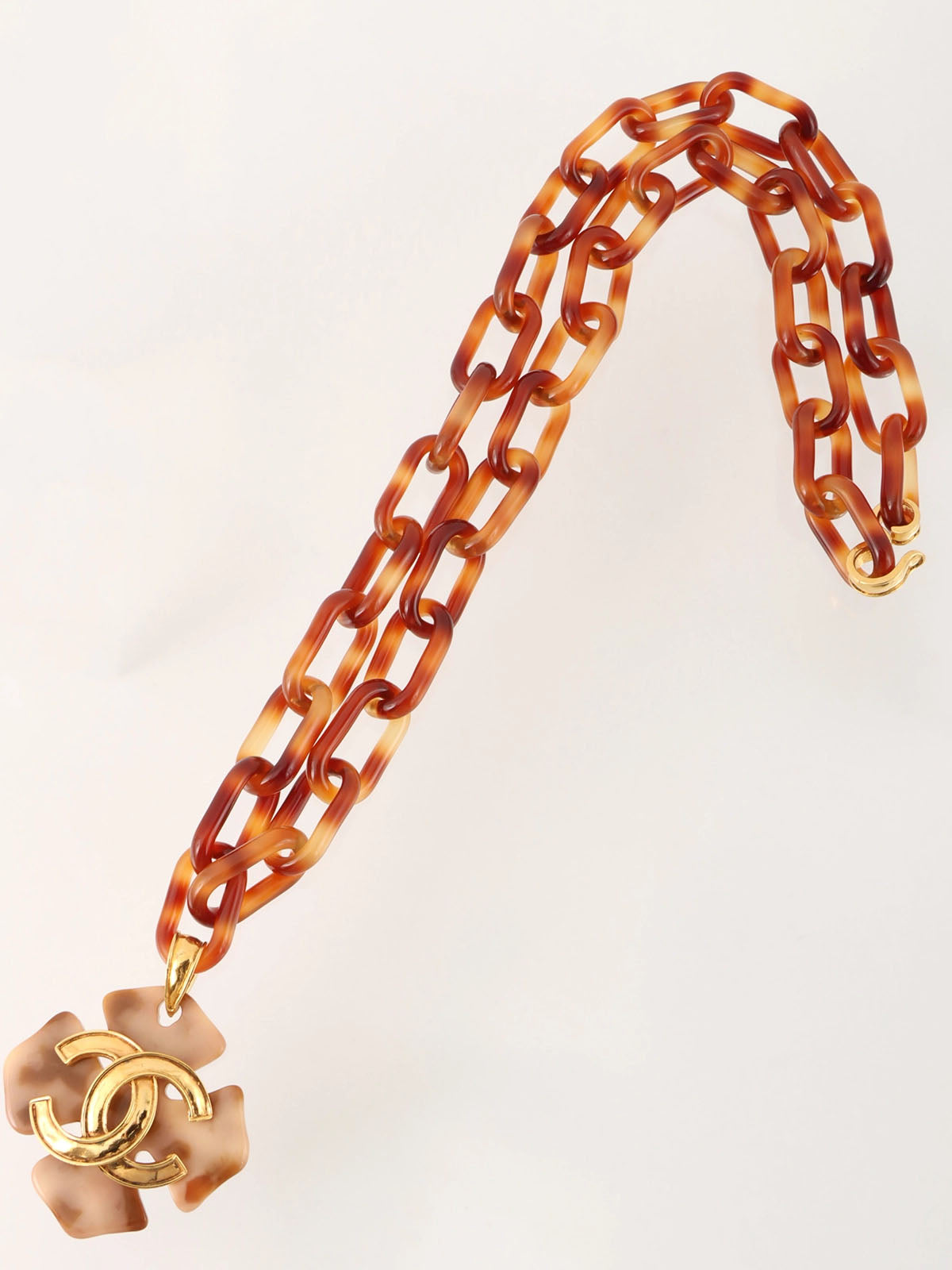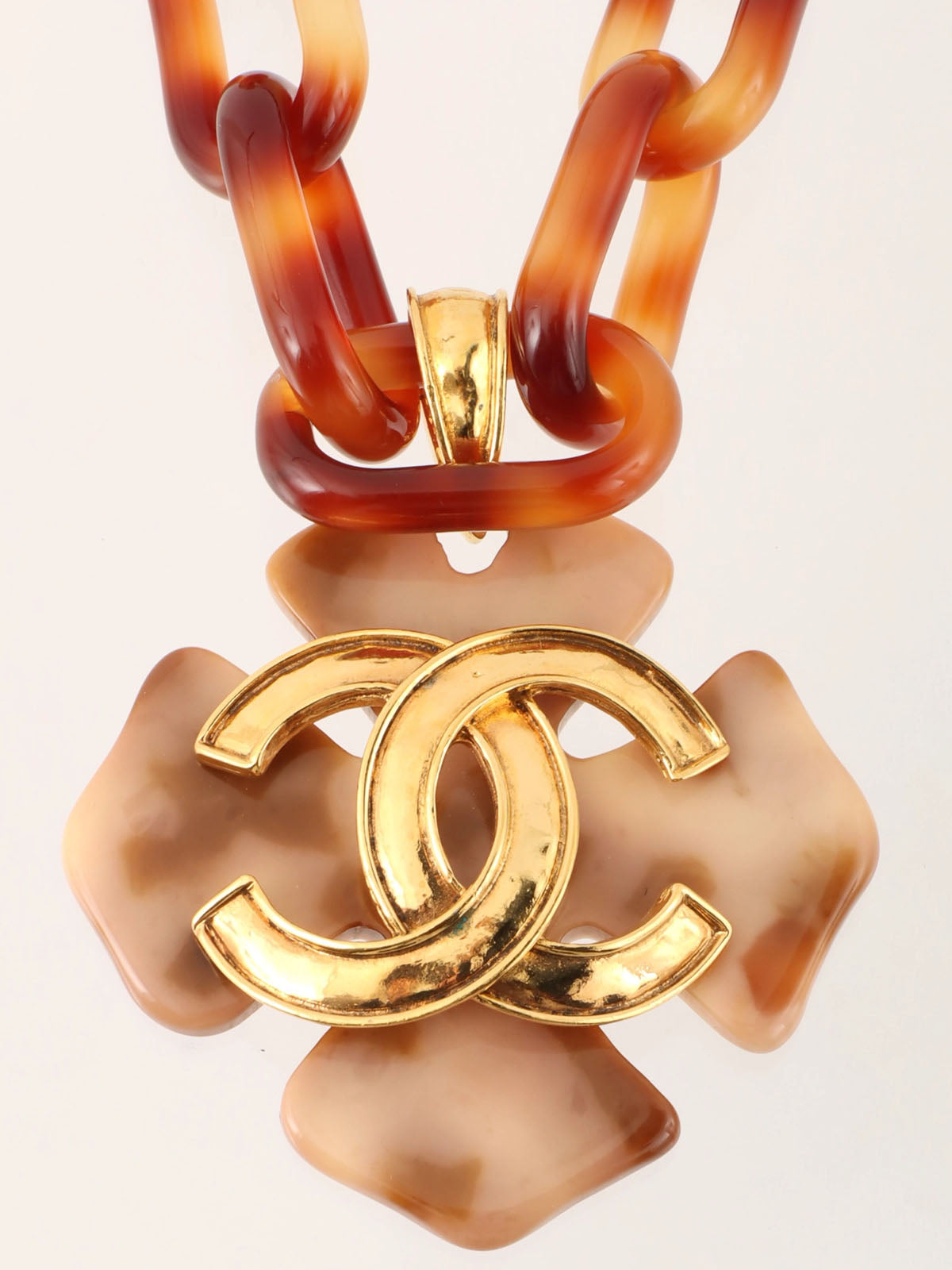 1993年製 ブラウンマーブル柄デザインモチーフCCマークロングネックレス ゴールド/ブラウン/ベージュ