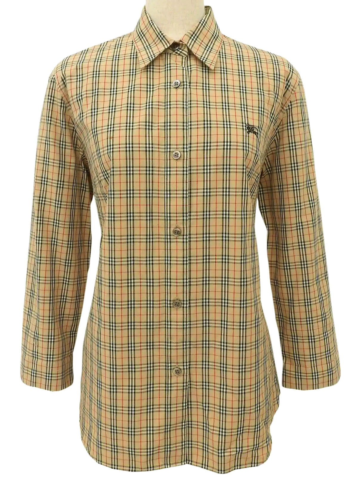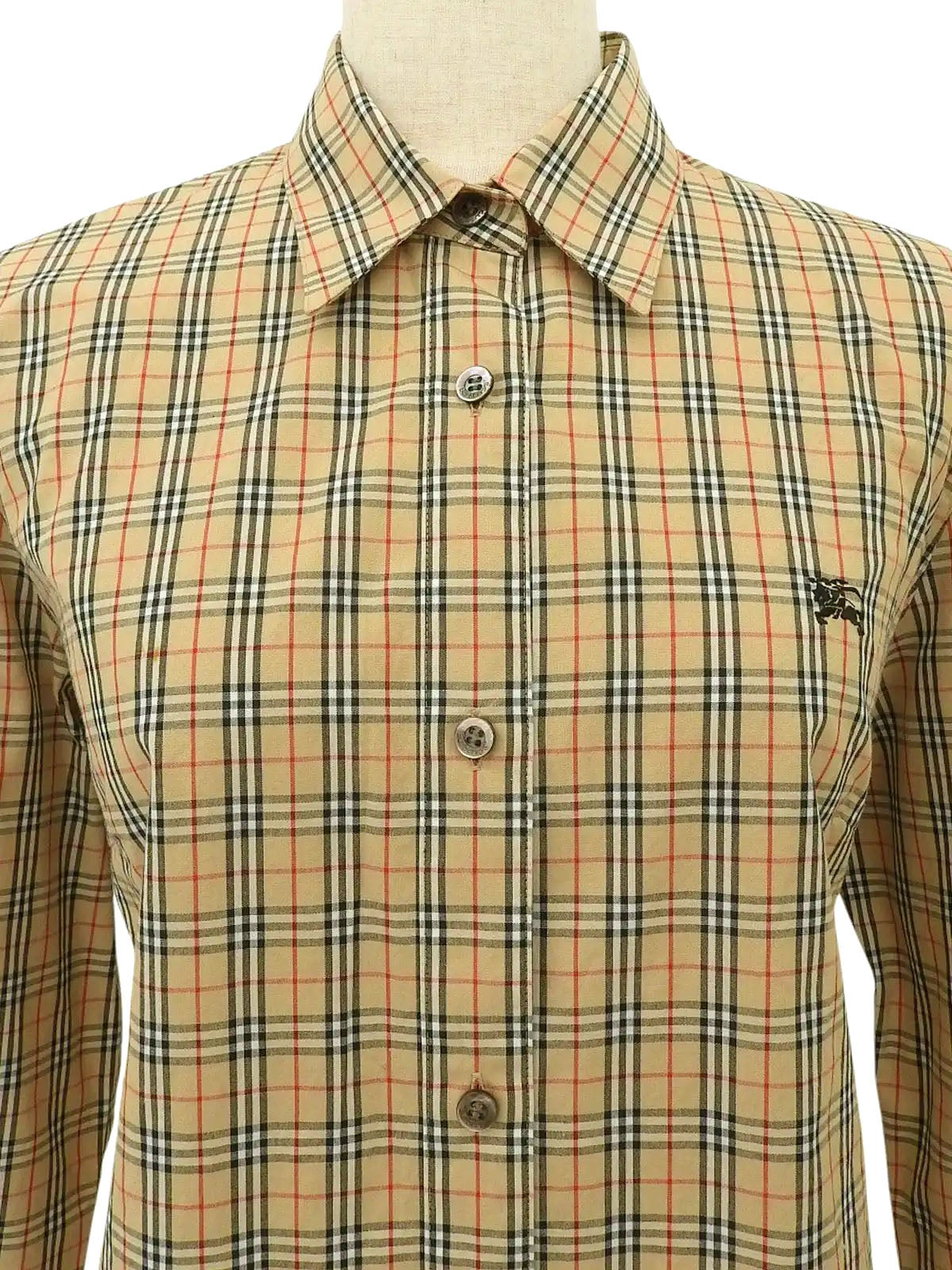 ノバチェックロゴ刺繍長袖シャツ ベージュ/マルチ