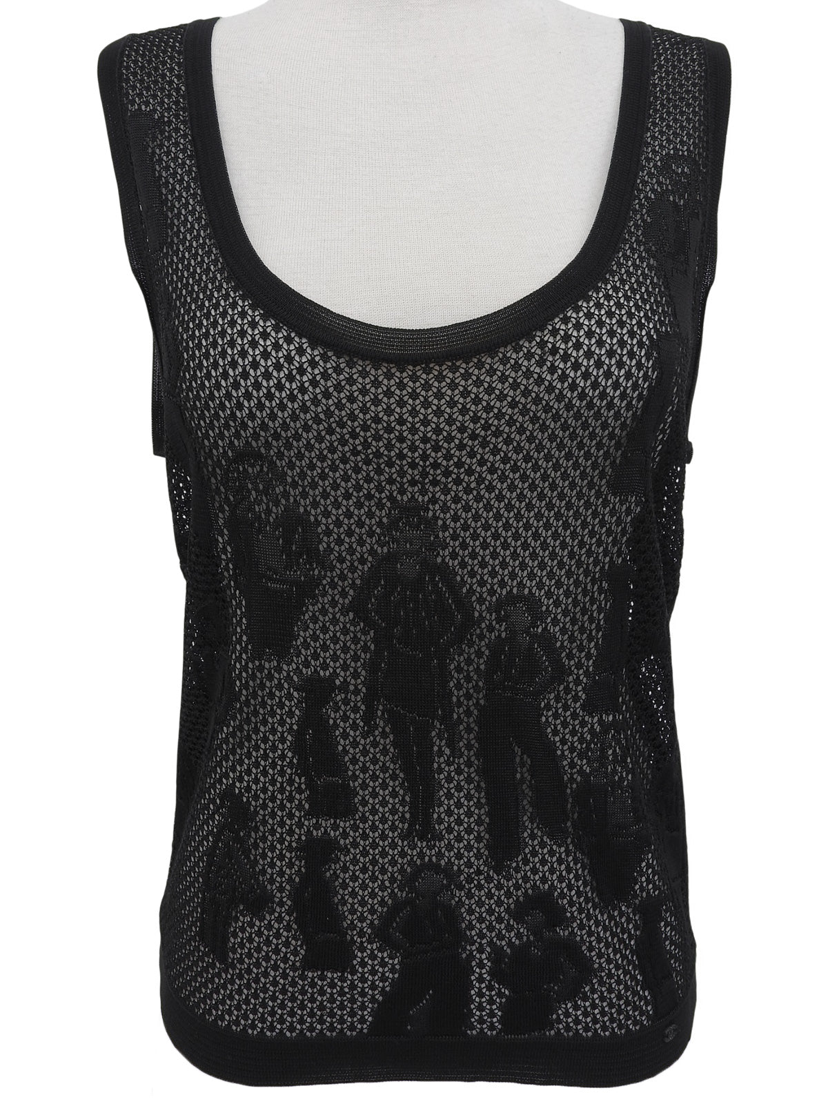 2003年製 メッシュピープルモチーフノースリーブトップス ブラック