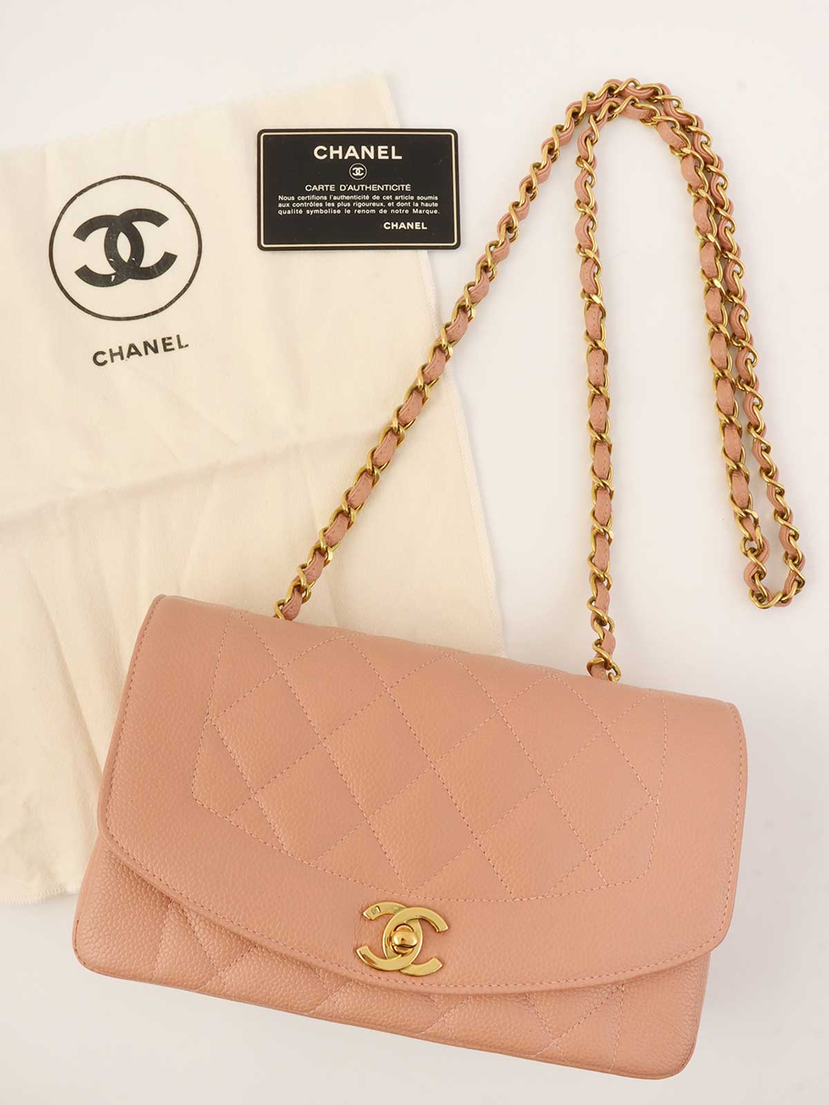 1995年頃製 キャビアスキンダイアナフラップチェーンバッグ22cm ピンク