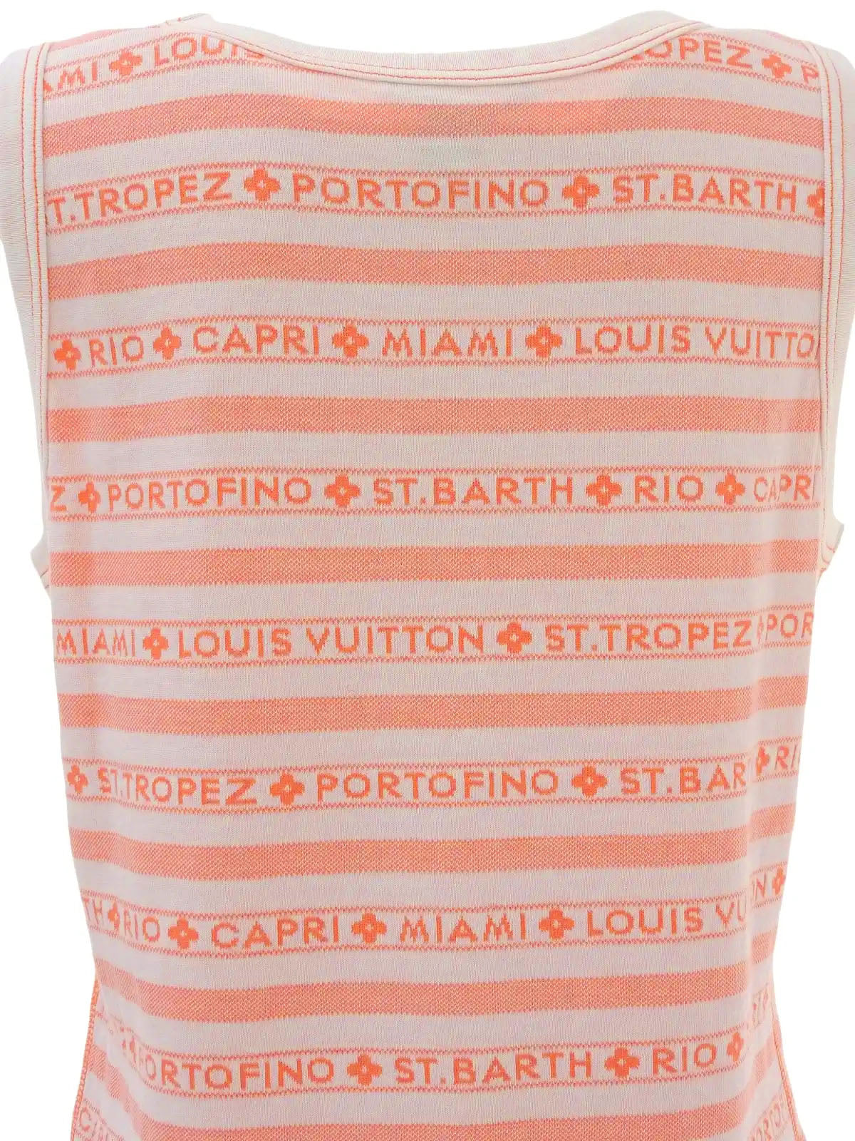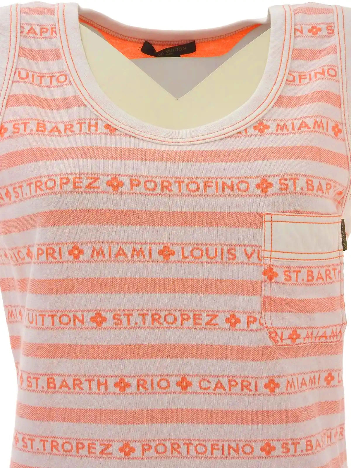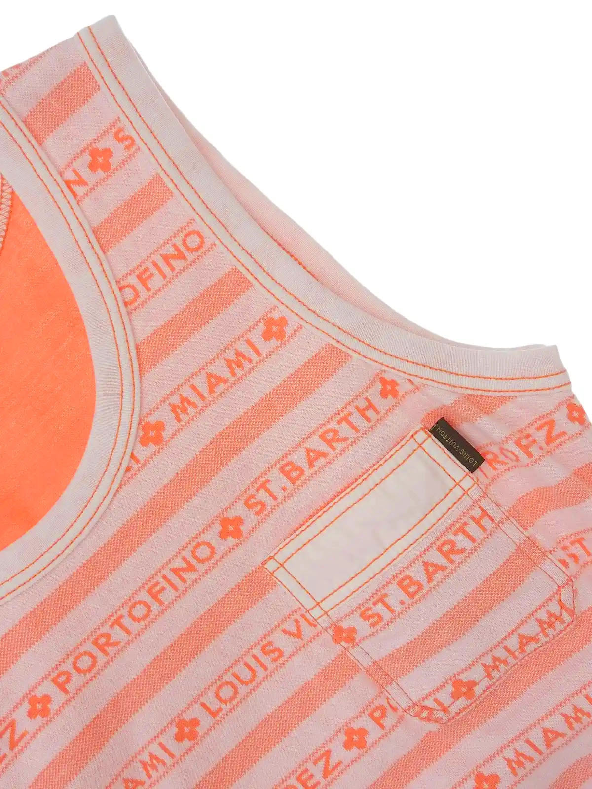 ボーダーパターンロゴノースリーブトップス ホワイト/オレンジ