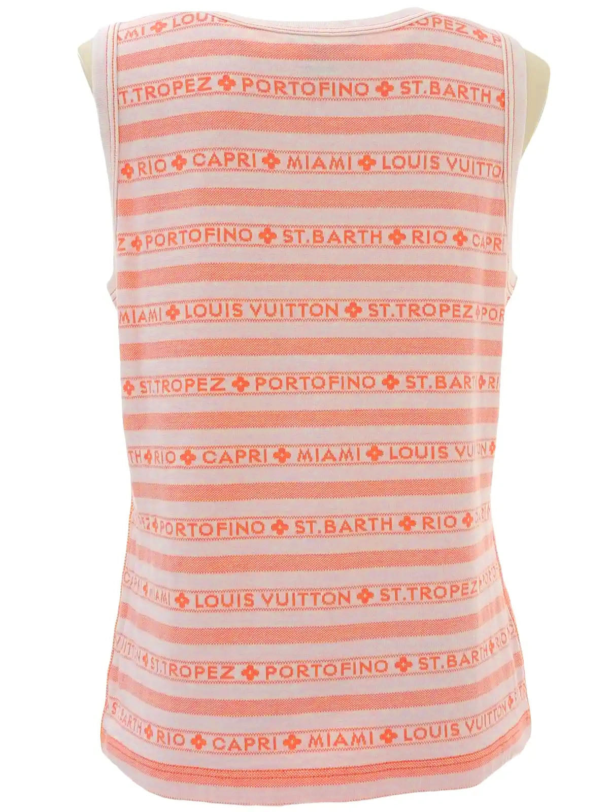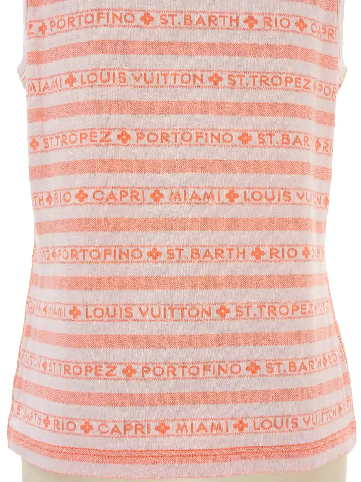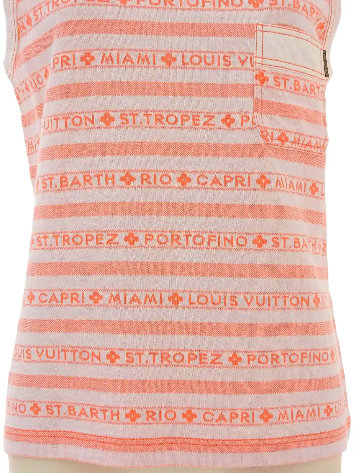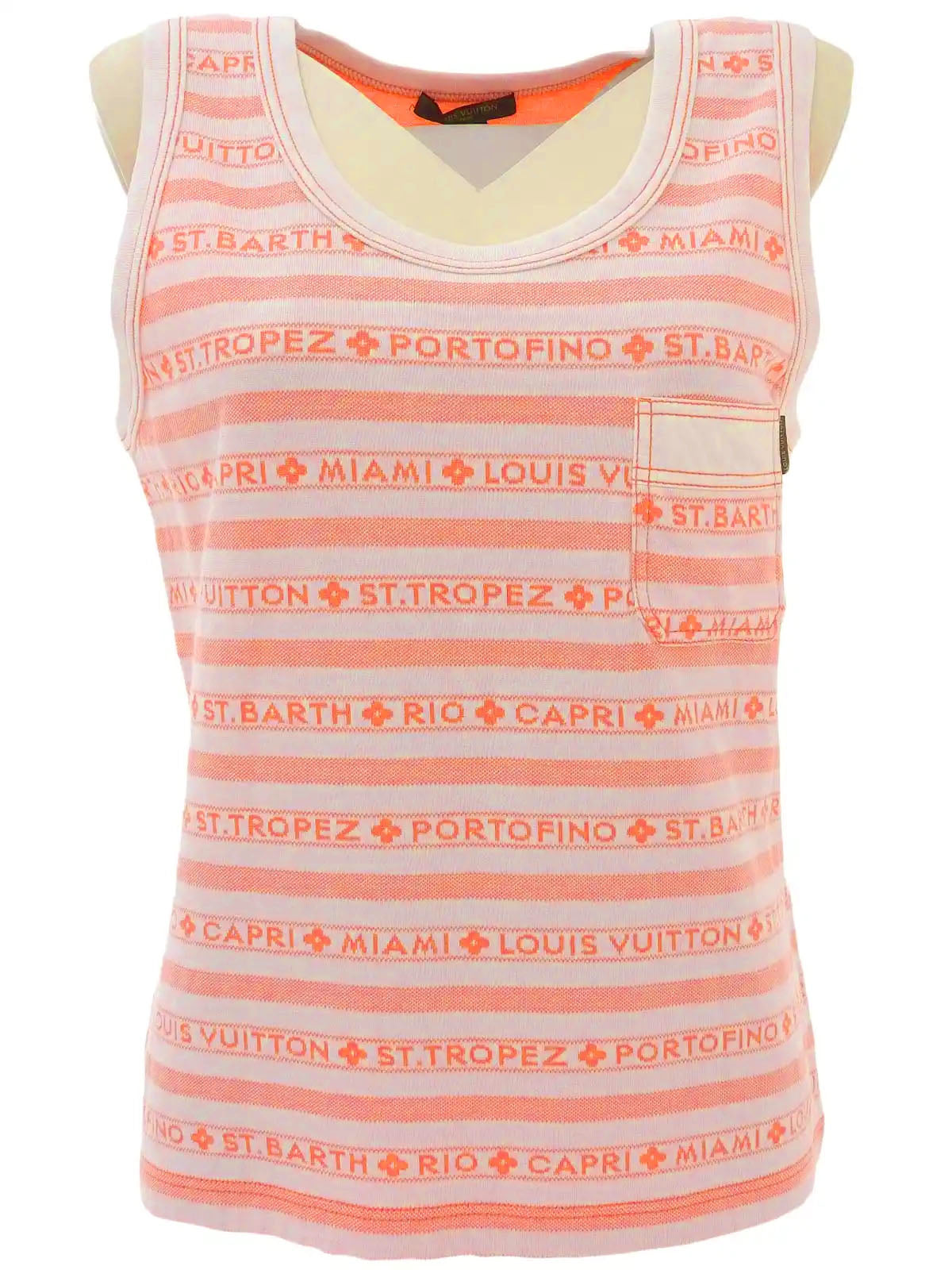 ボーダーパターンロゴノースリーブトップス ホワイト/オレンジ