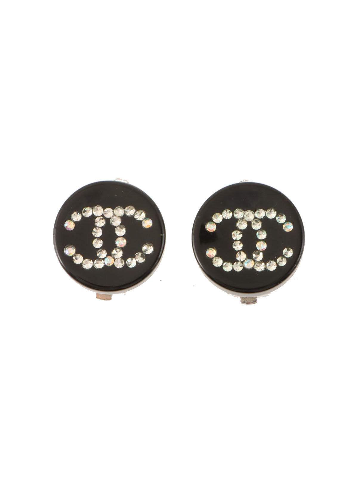 2003年製 ラインストーンラウンドCCマークイヤリング ブラック