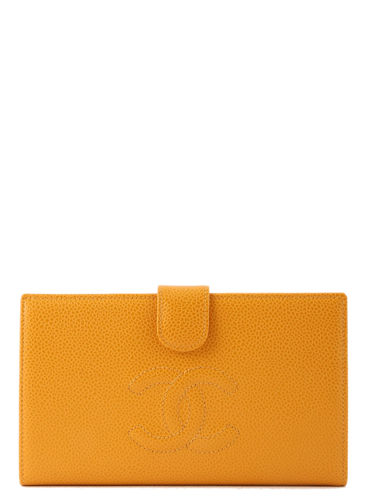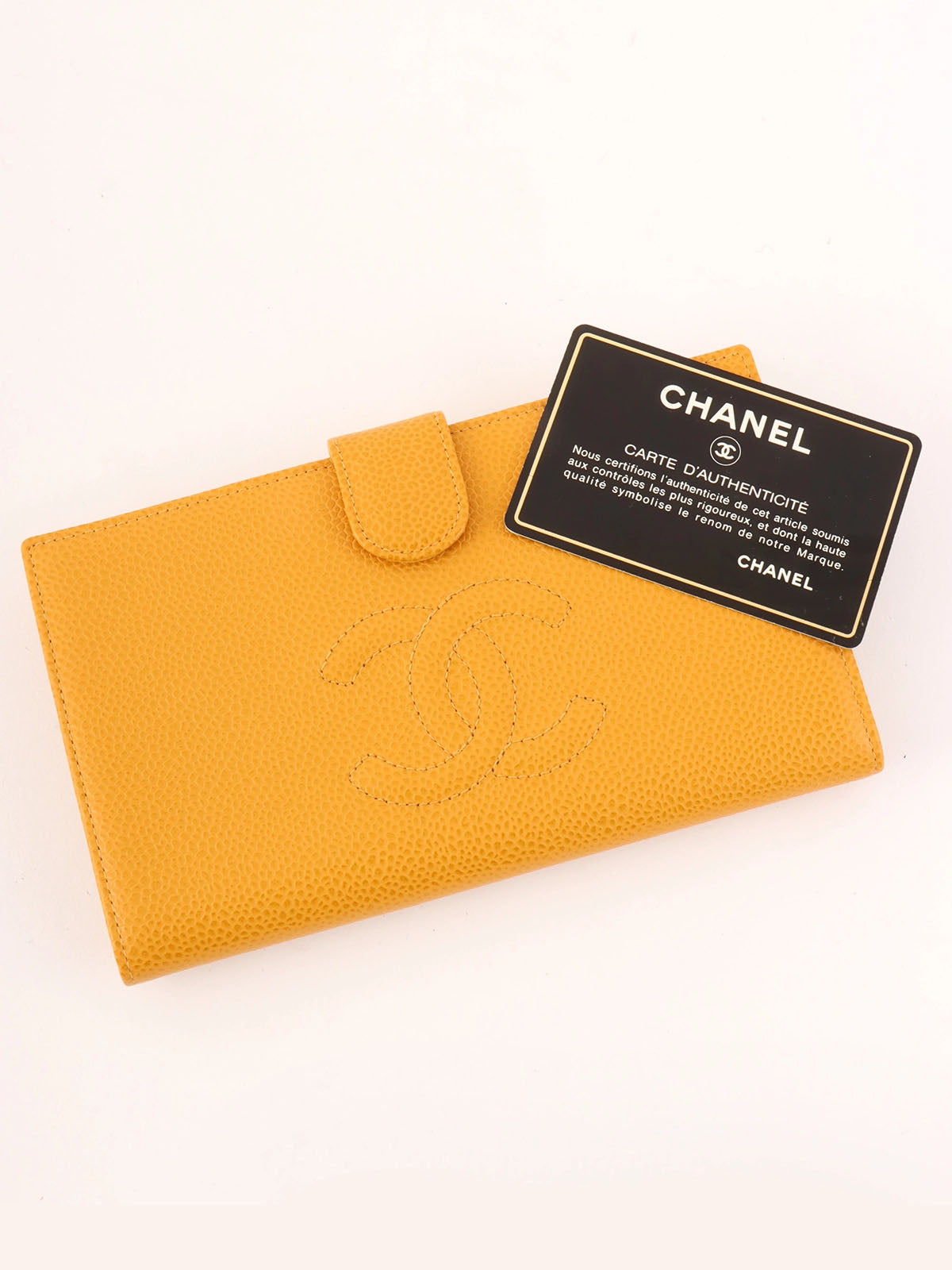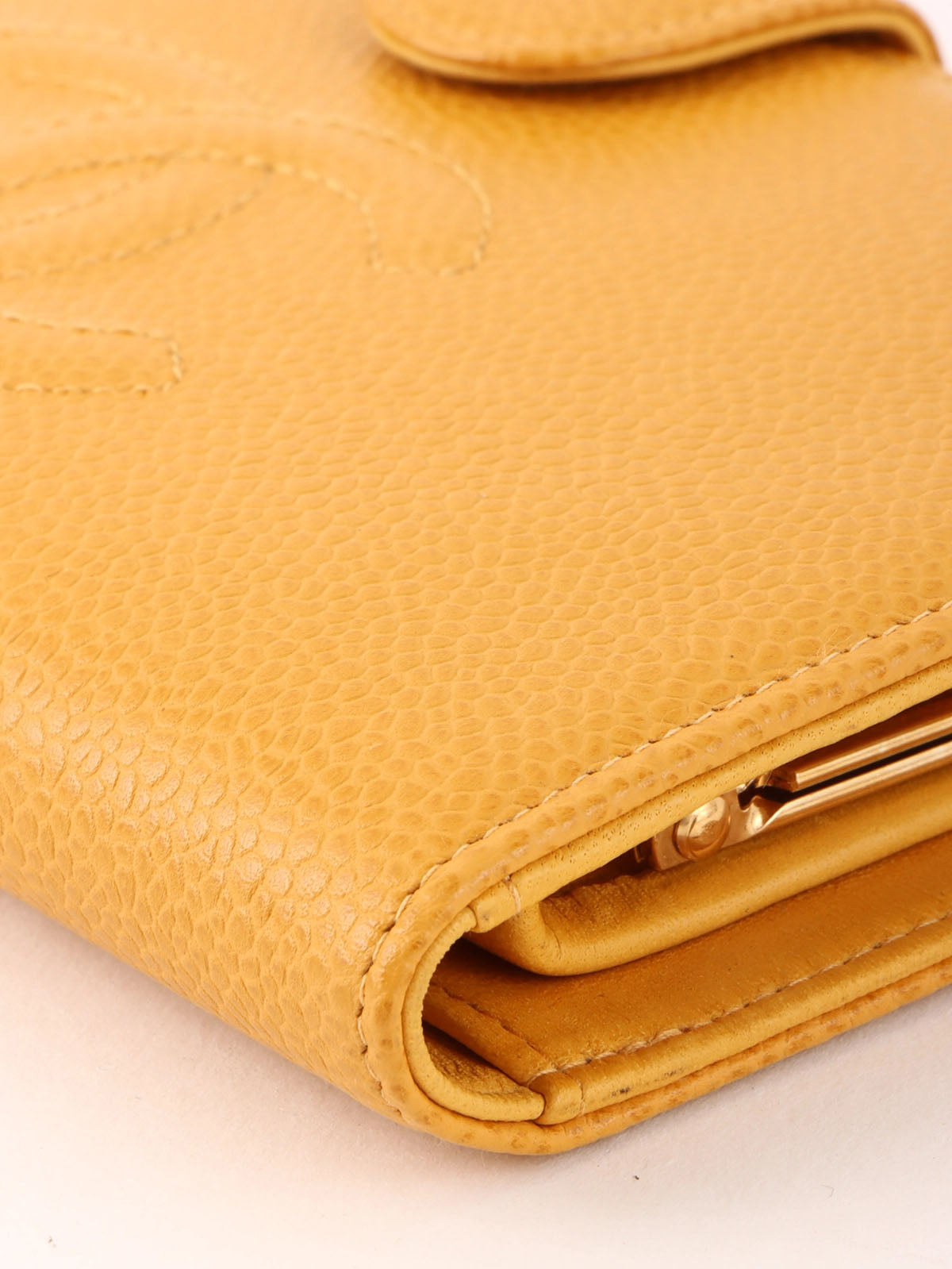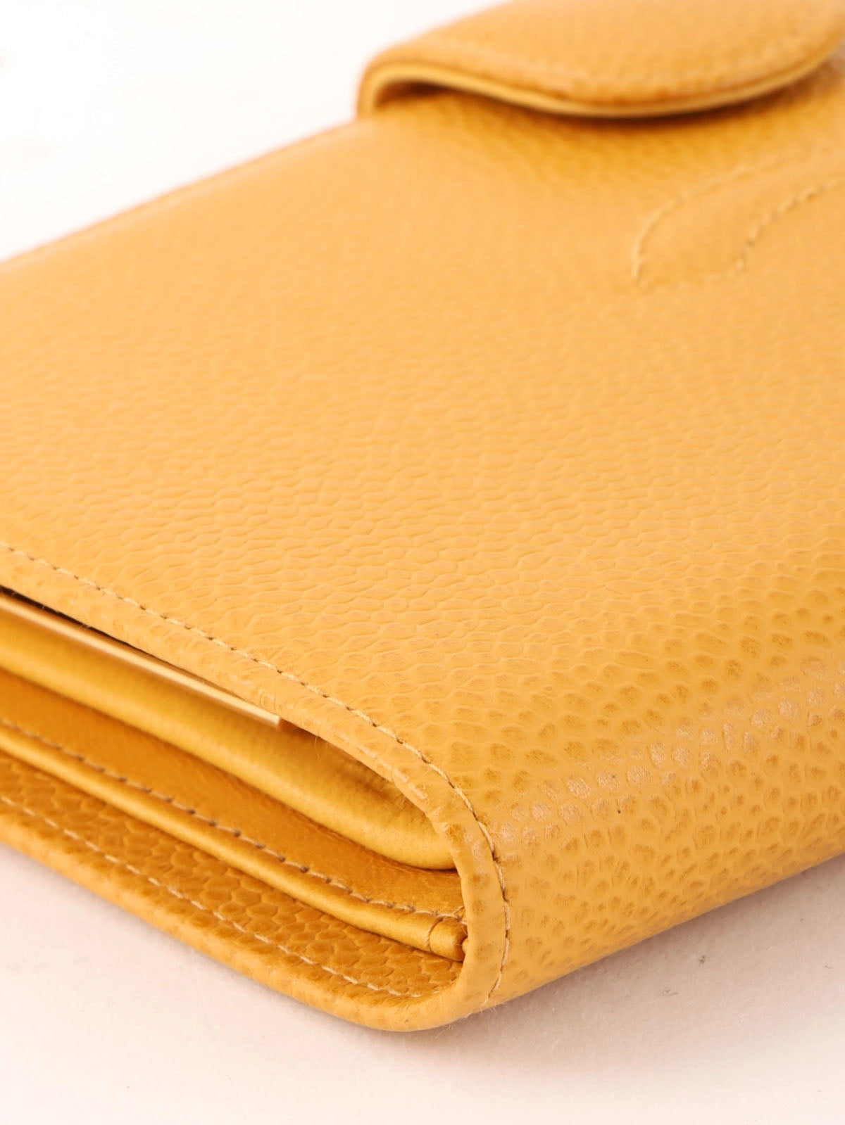 2000年頃製 キャビアスキンCCマークステッチロングウォレット マスタード
