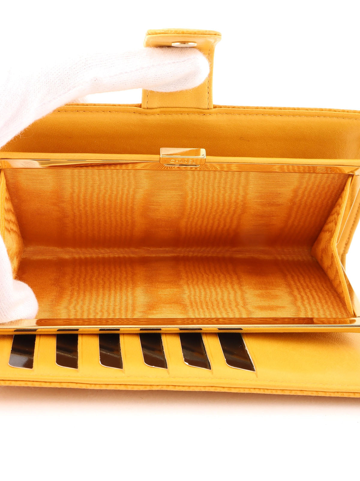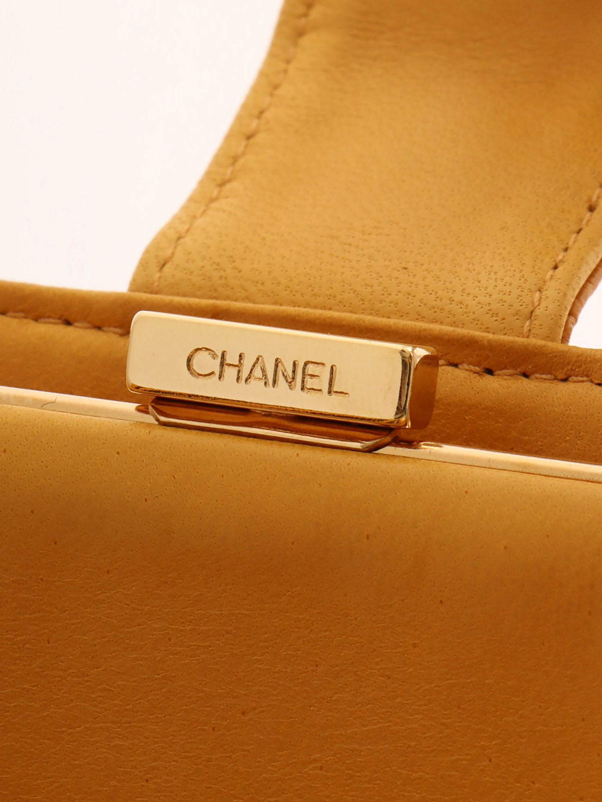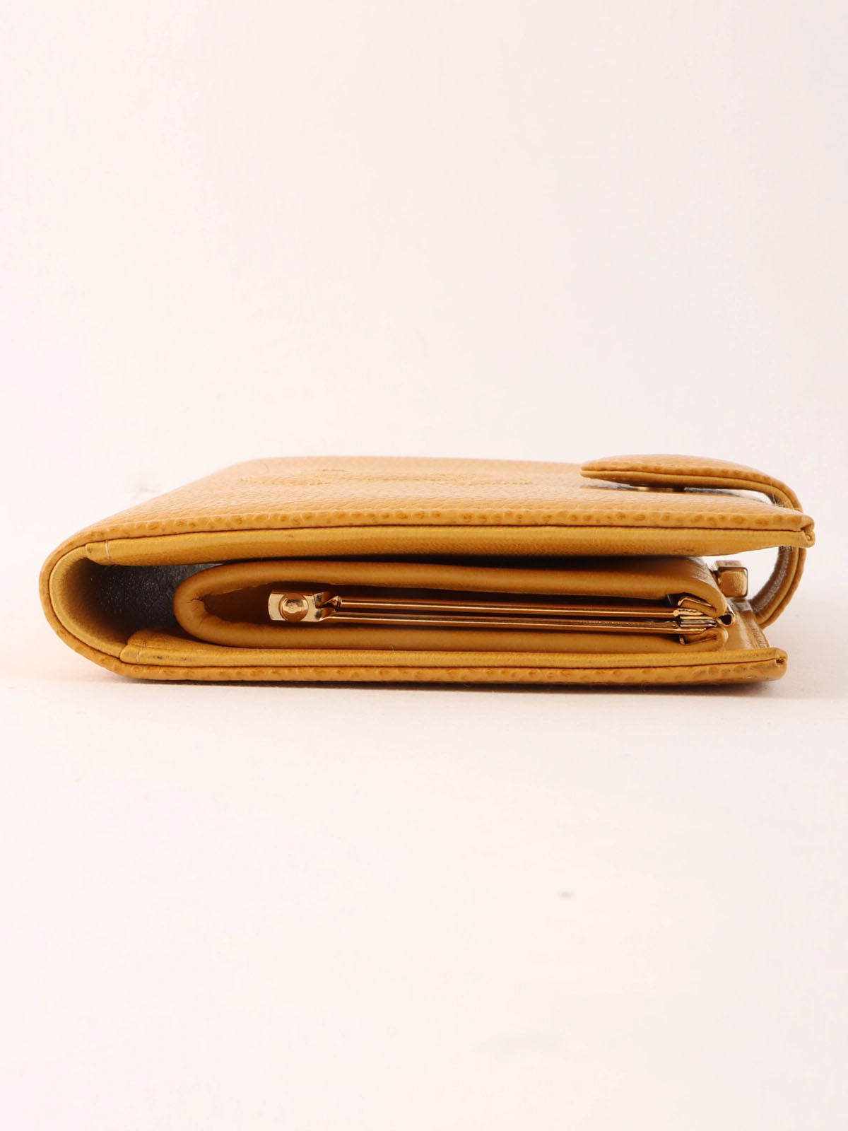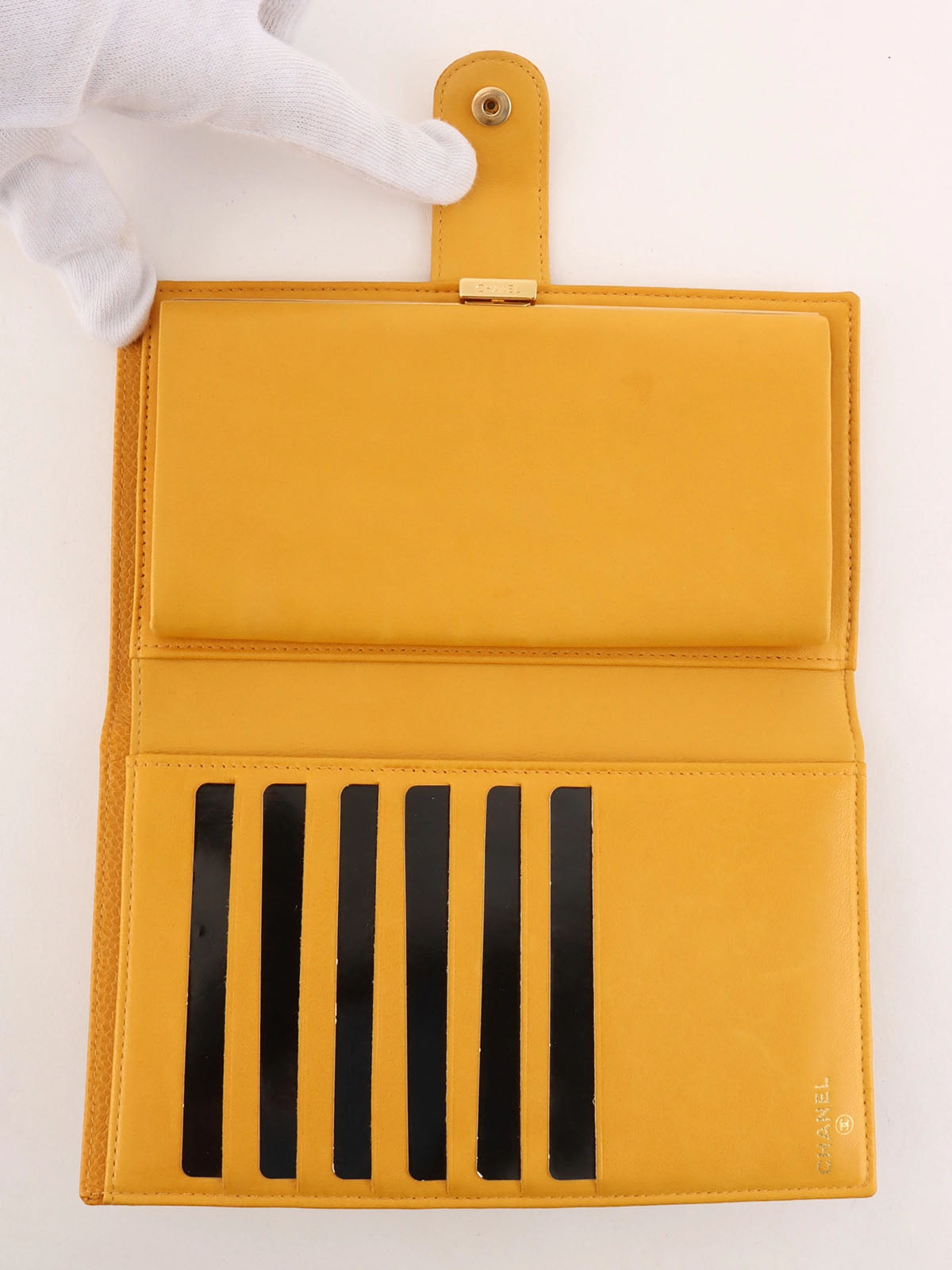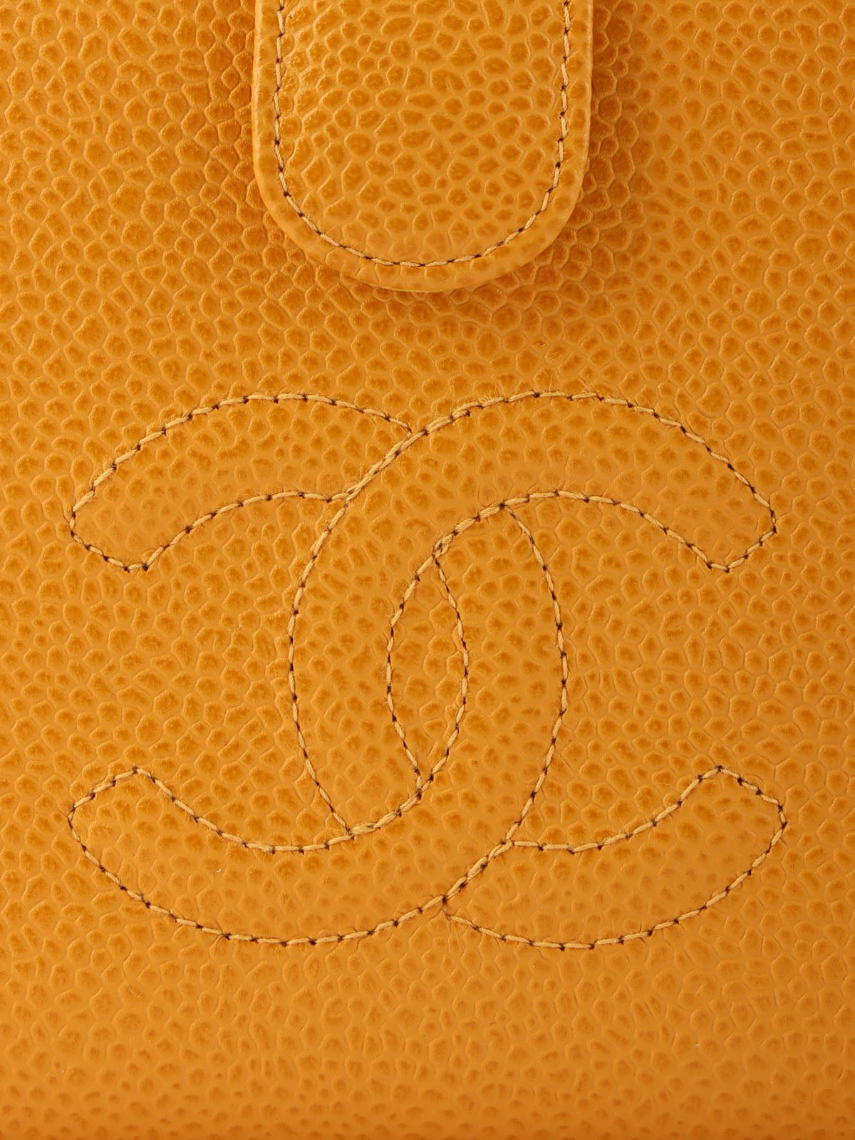 2000年頃製 キャビアスキンCCマークステッチロングウォレット マスタード