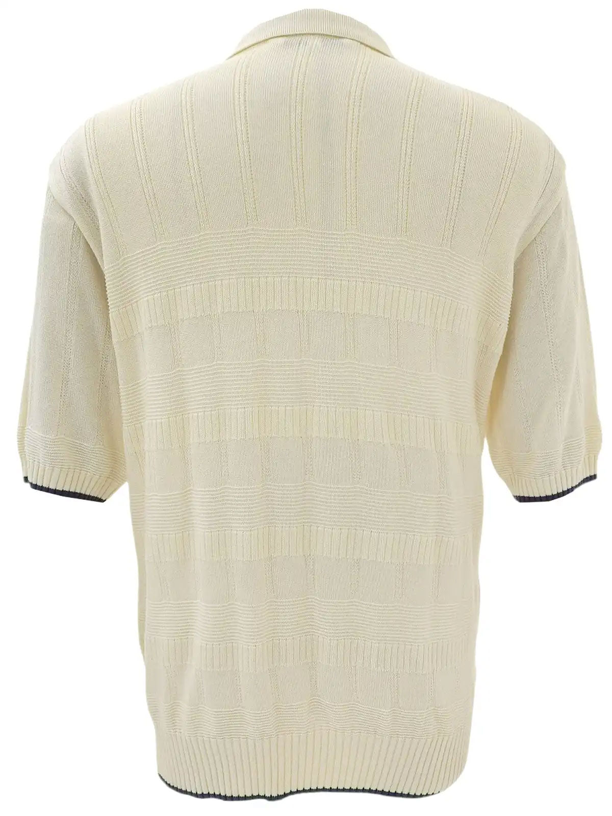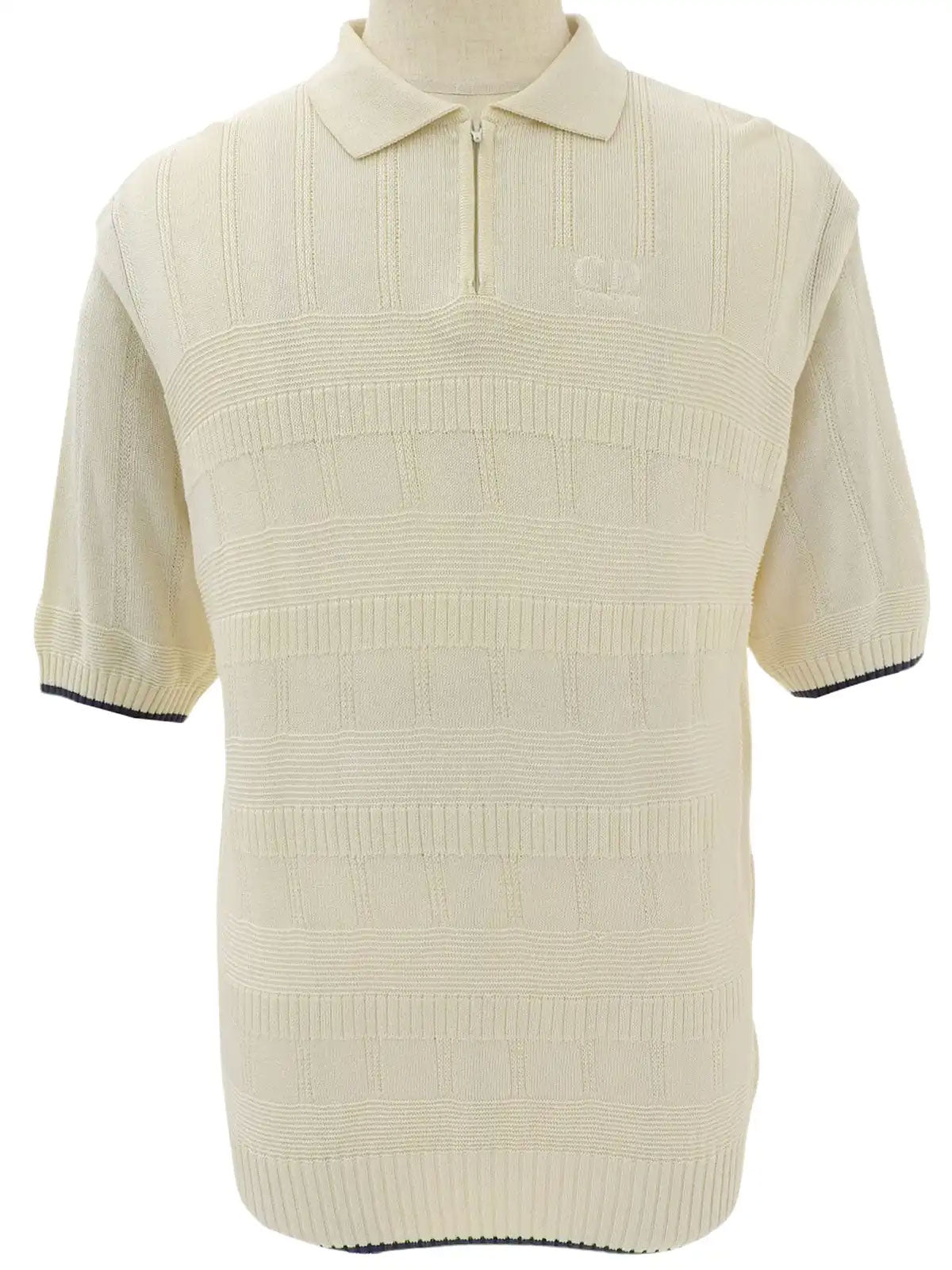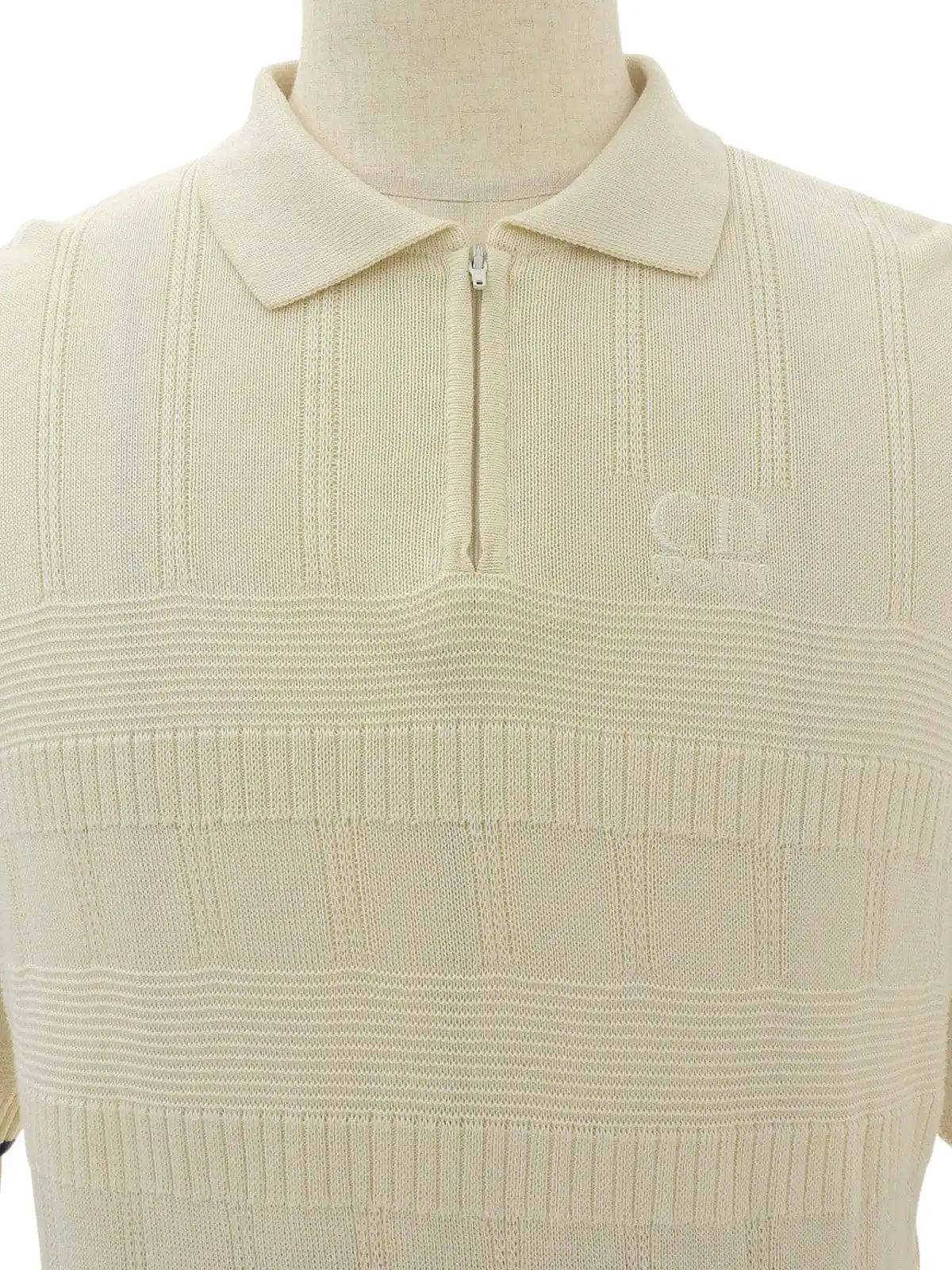 ロゴ刺繍半袖ニットジップアップポロシャツ アイボリー