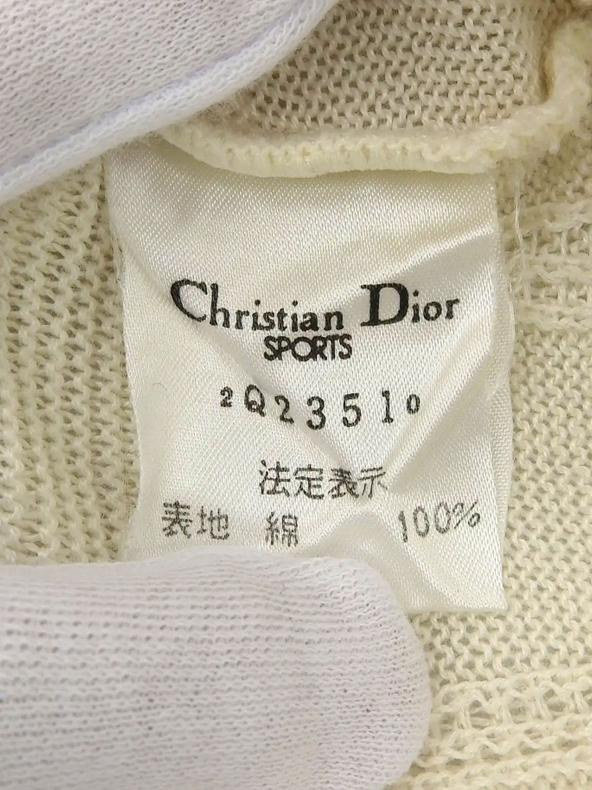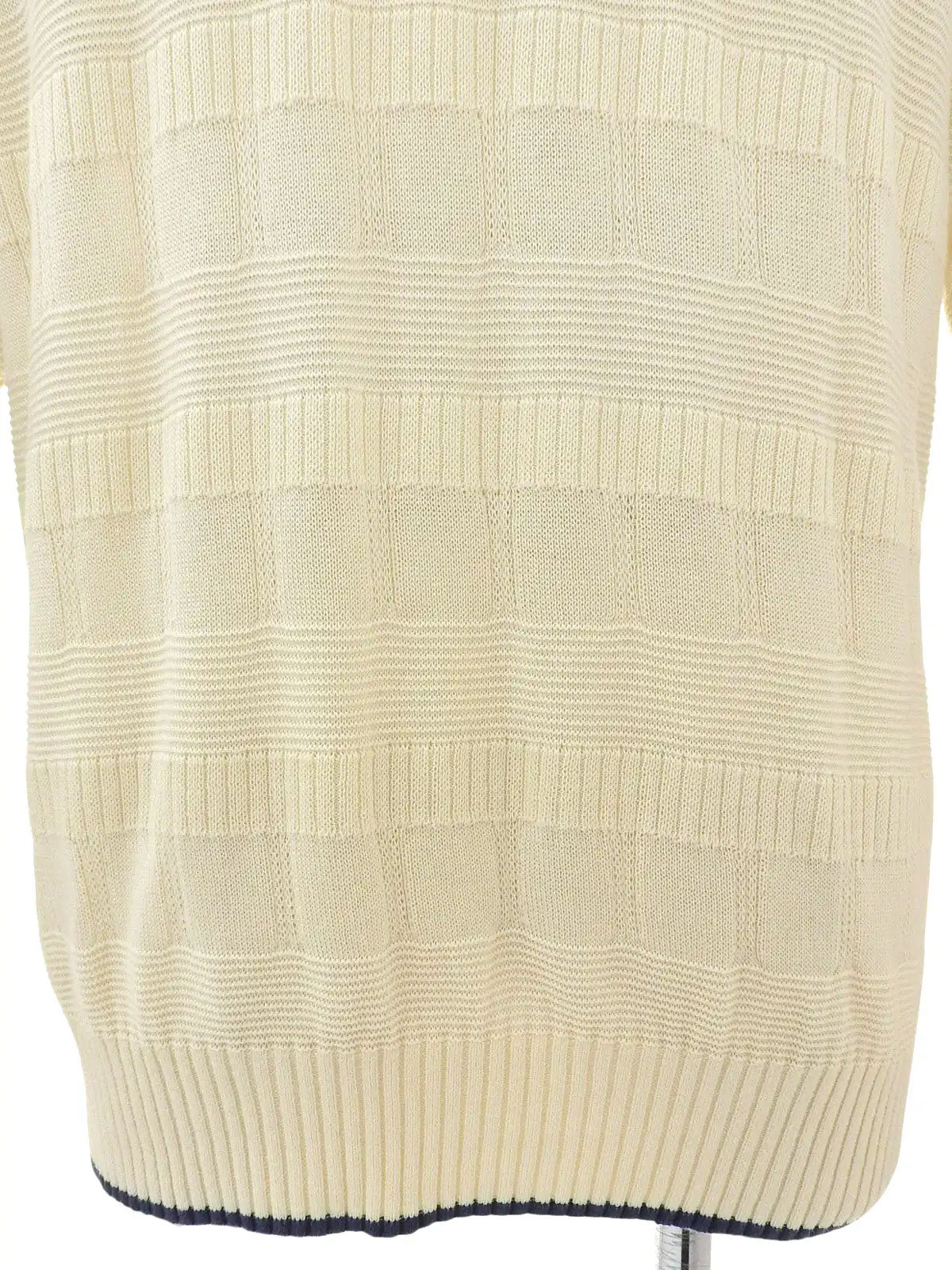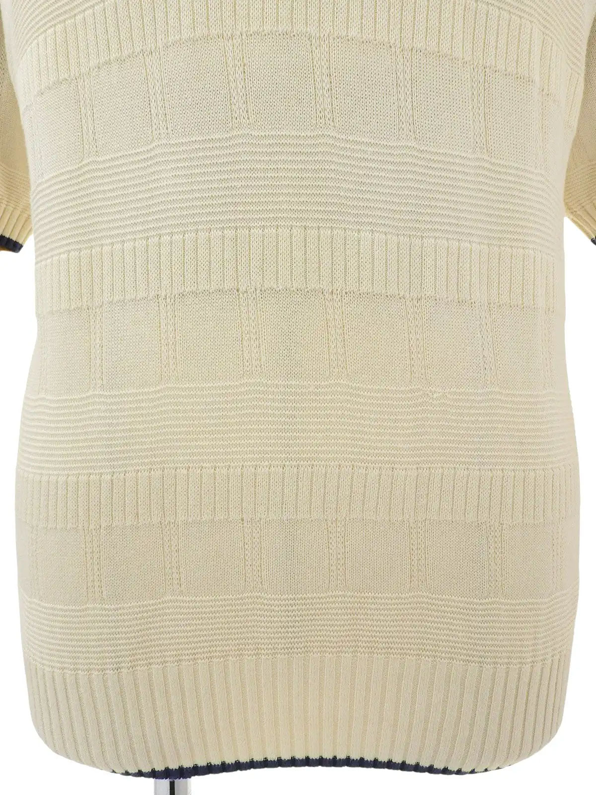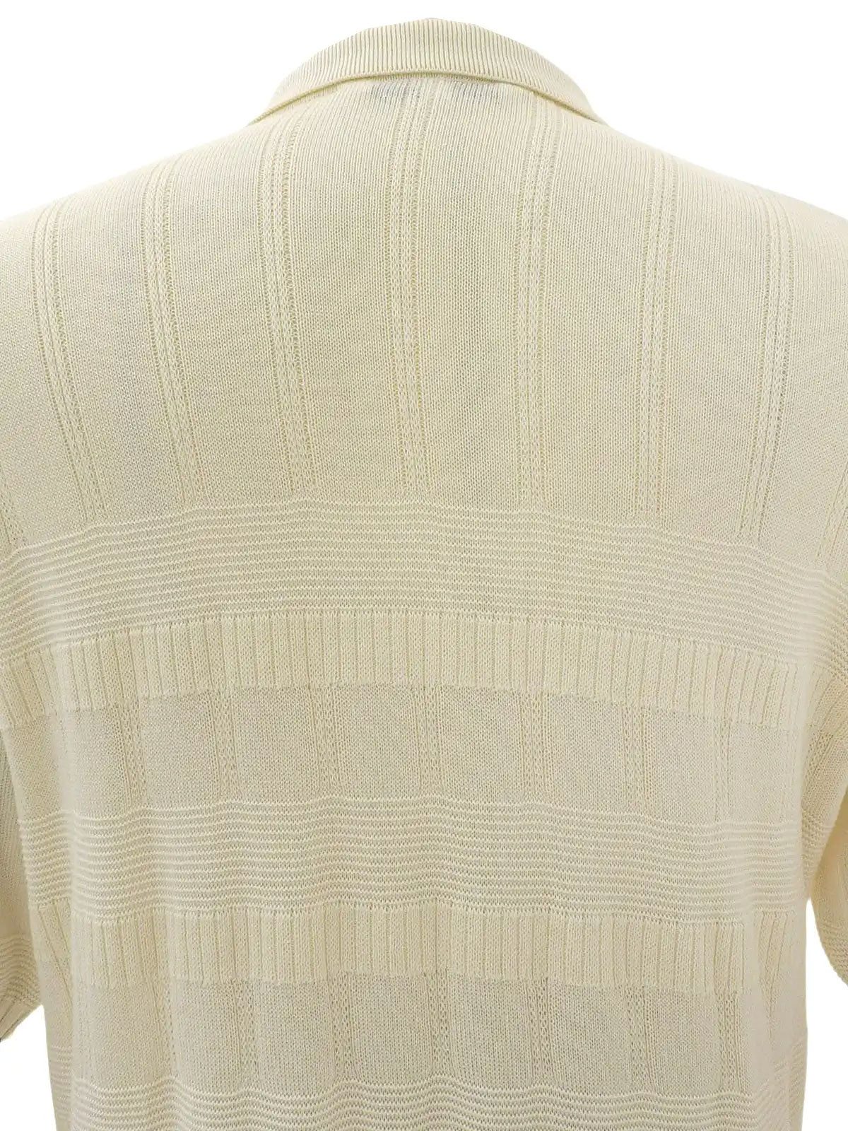 ロゴ刺繍半袖ニットジップアップポロシャツ アイボリー