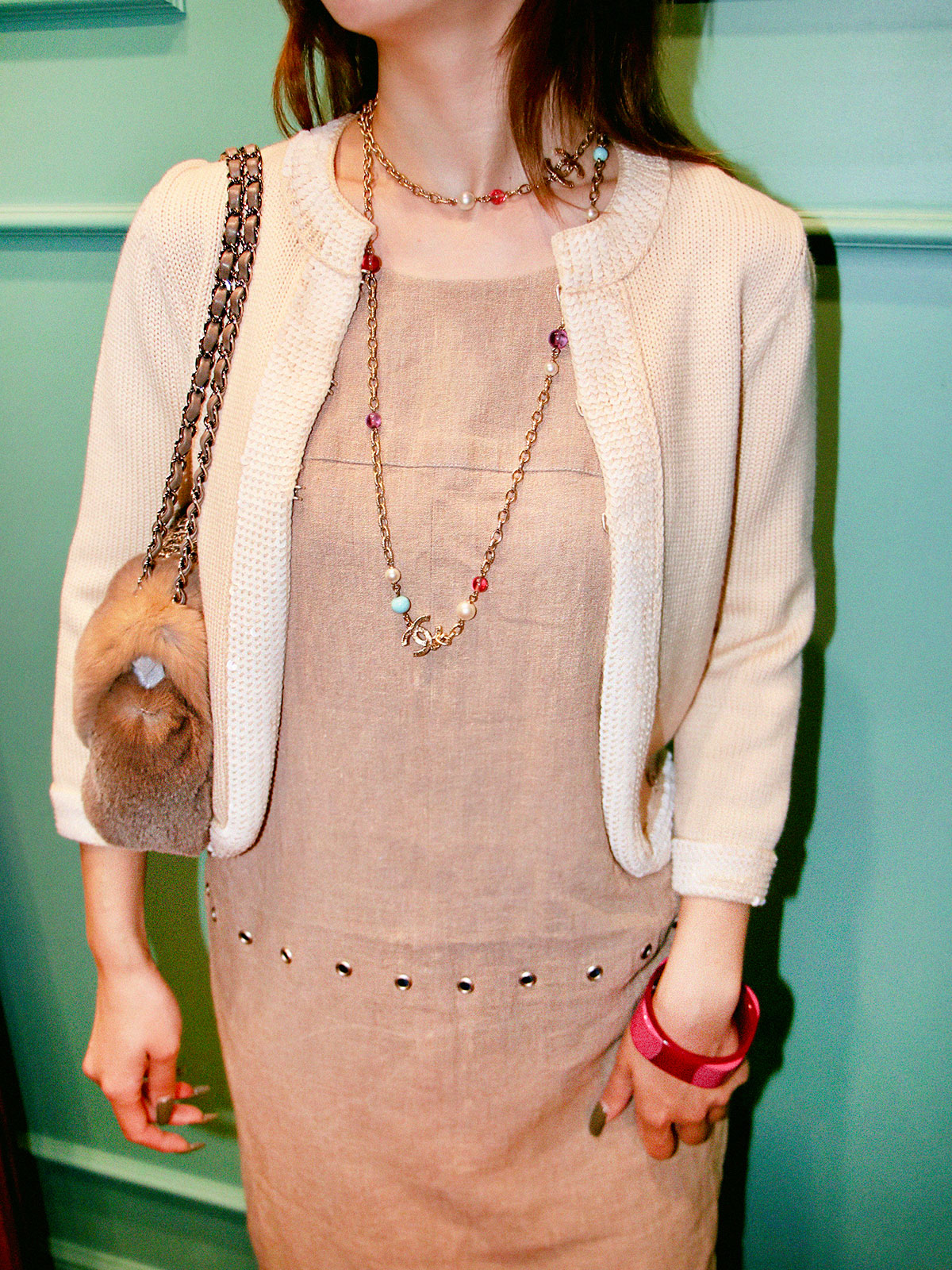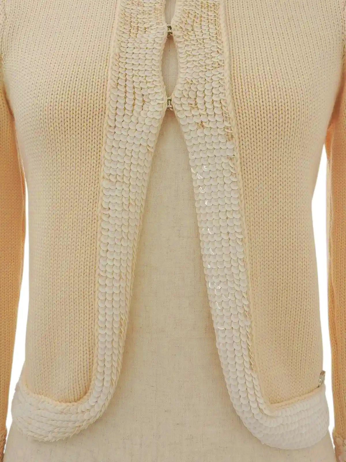 2007年製 スパンコールオーバルCCマークカーディガン ベージュ