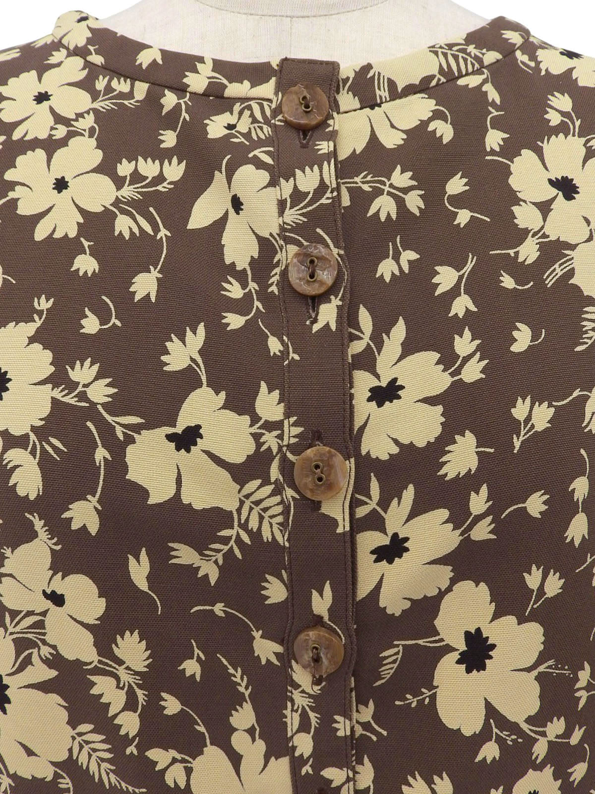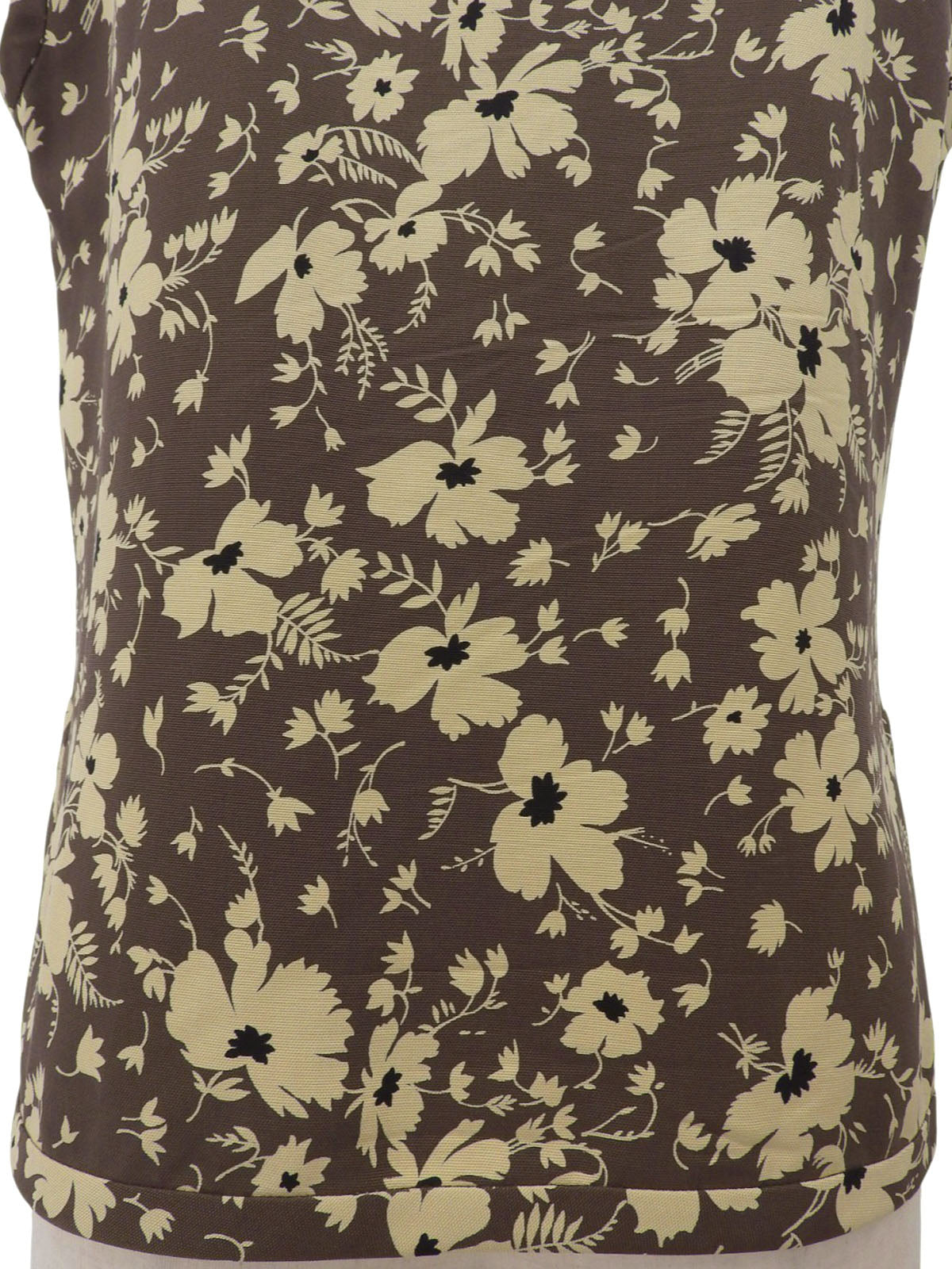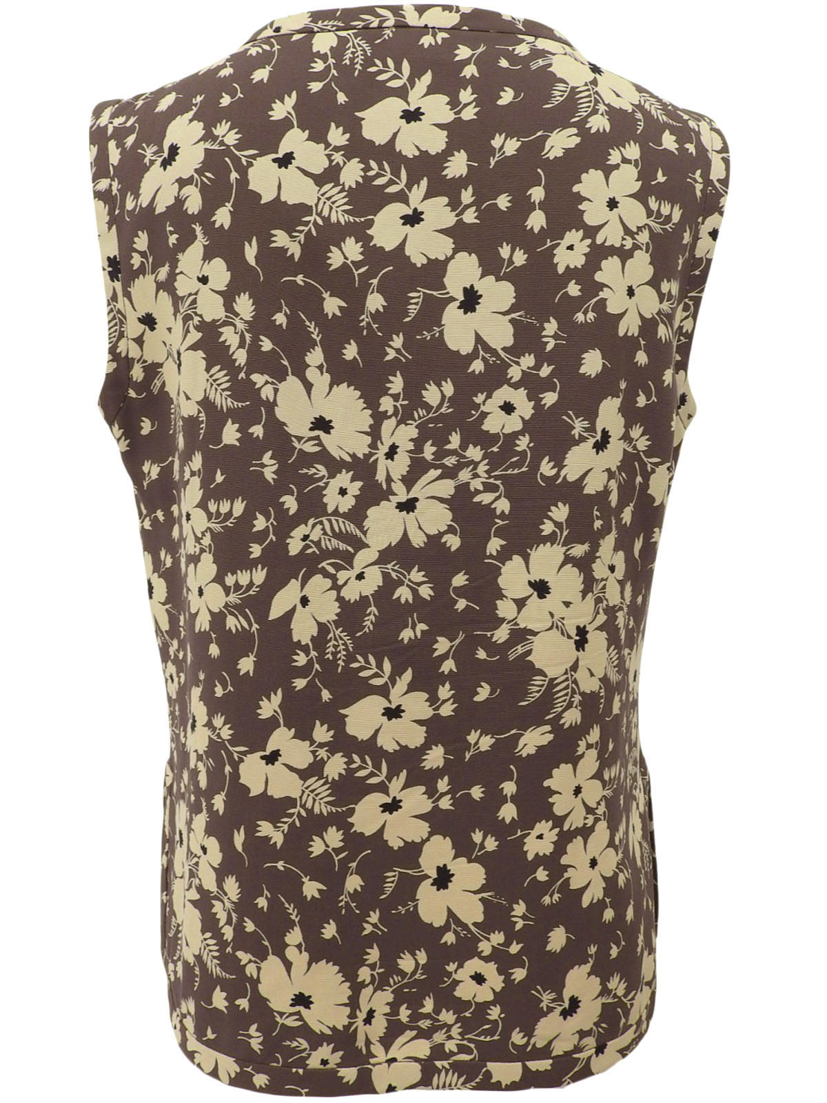 フラワーパターンノースリーブトップス ブラウン/クリームイエロー
