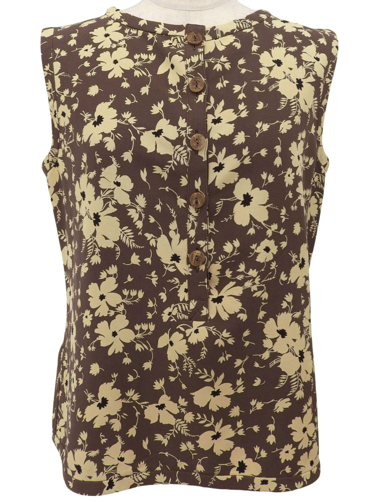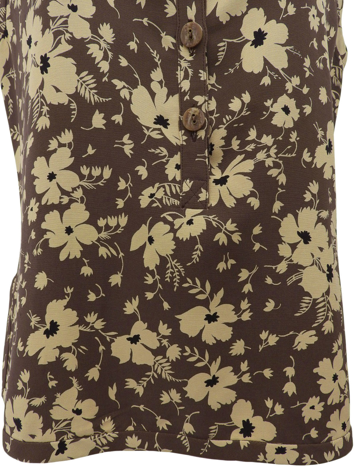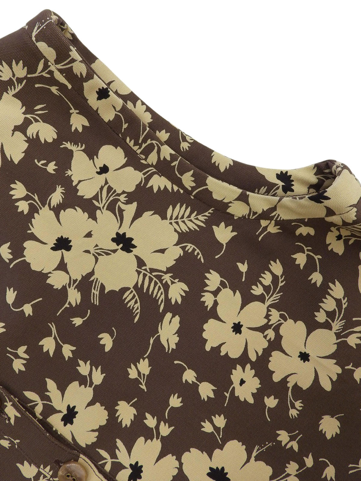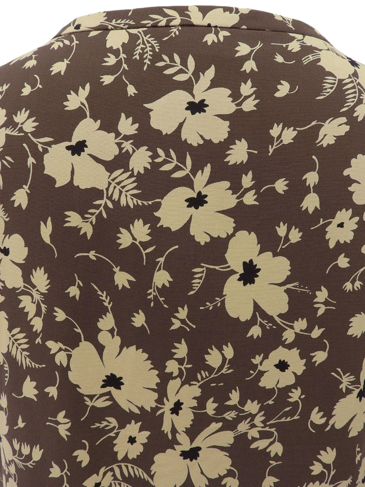 フラワーパターンノースリーブトップス ブラウン/クリームイエロー