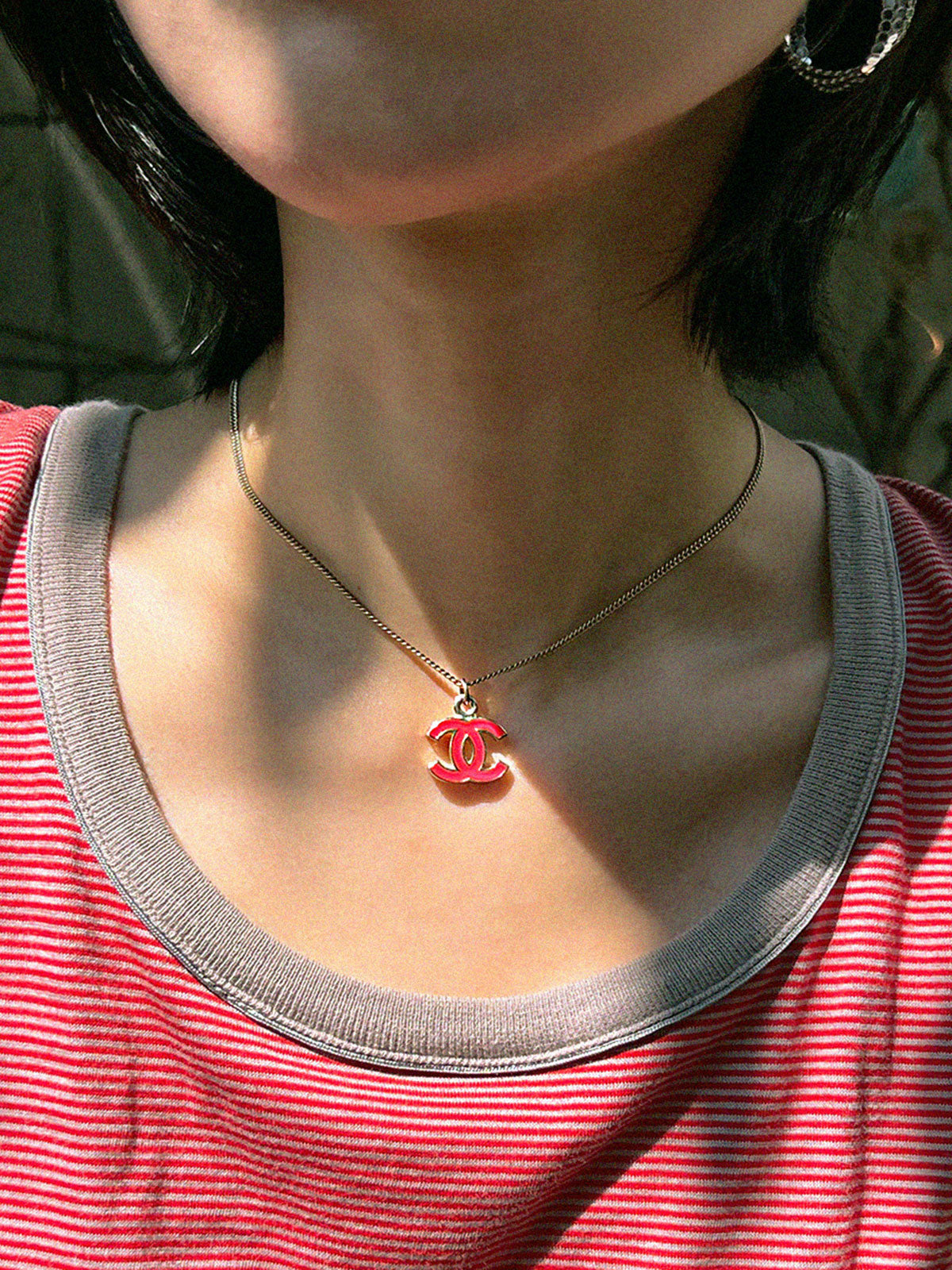 2004年製 CCマークプレートネックレス ゴールド/ネオンピンク