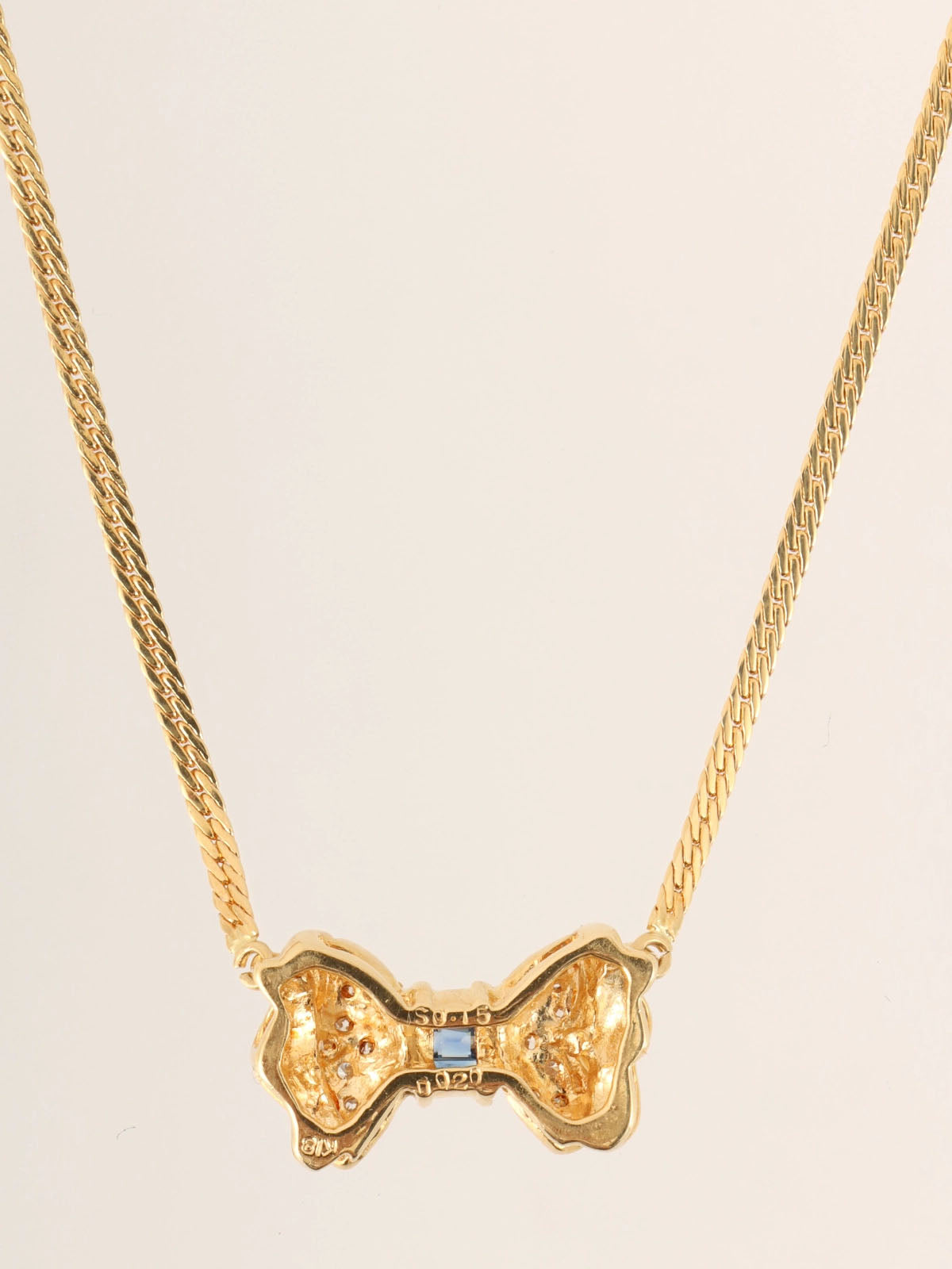 18Kダイヤモンドリボンモチーフネックレス ゴールド/ブルー