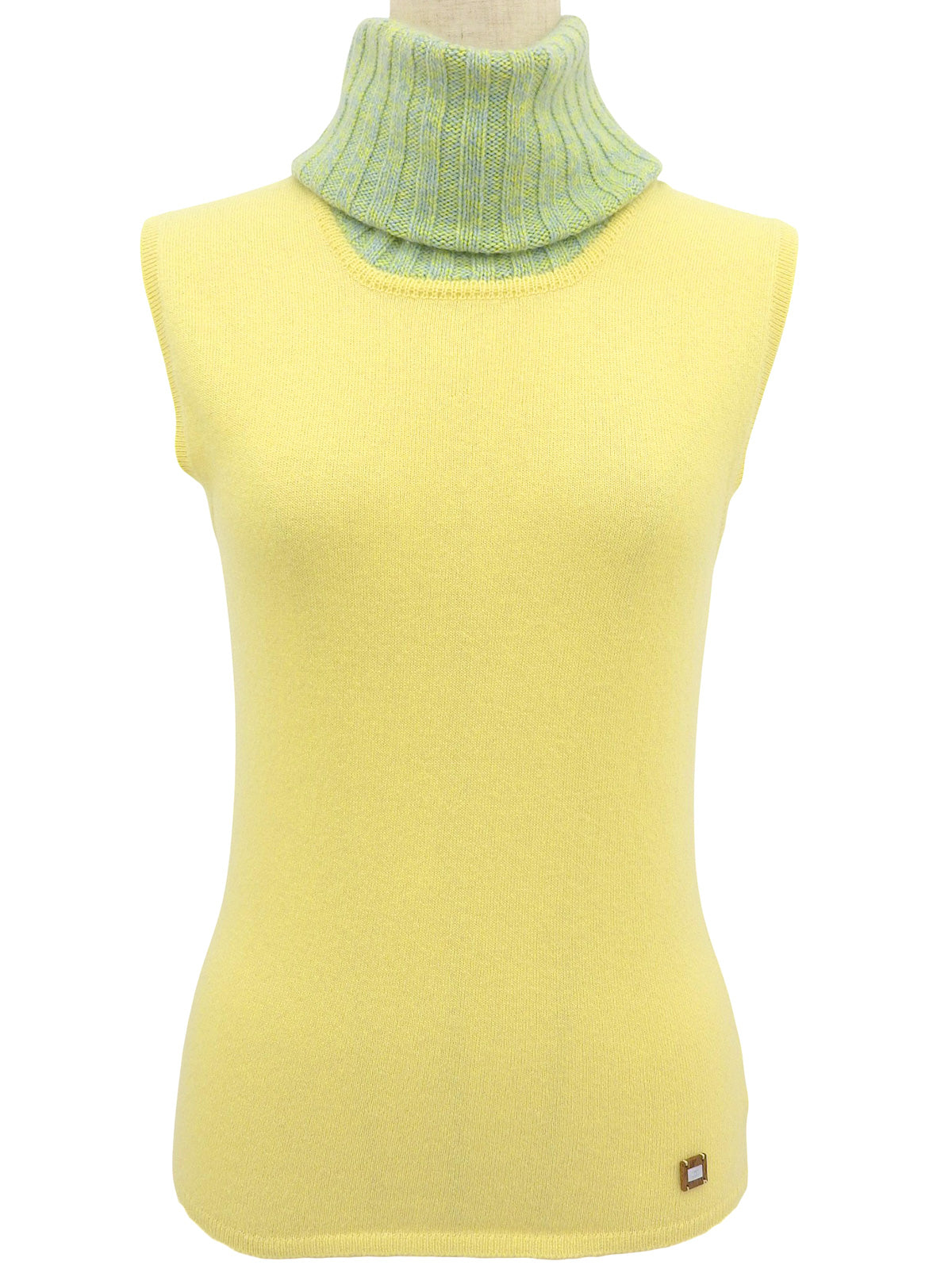 2001年製 カシミアCCマークプレートノースリーブニット イエロー/ライムグリーン