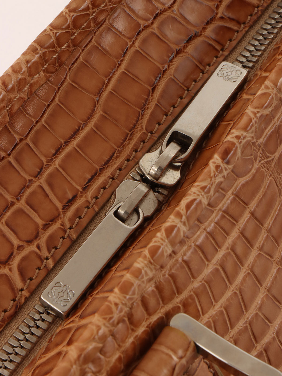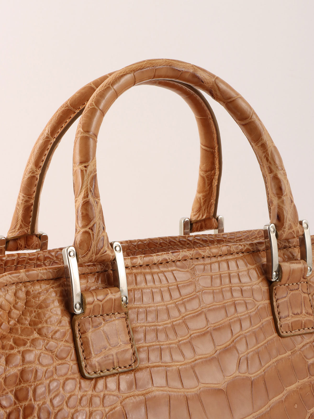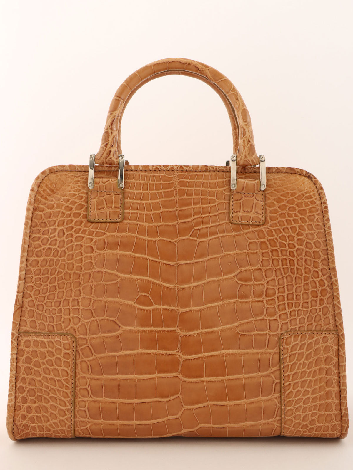 クロコダイルアナグラムアマソナハンドバッグ ブラウン