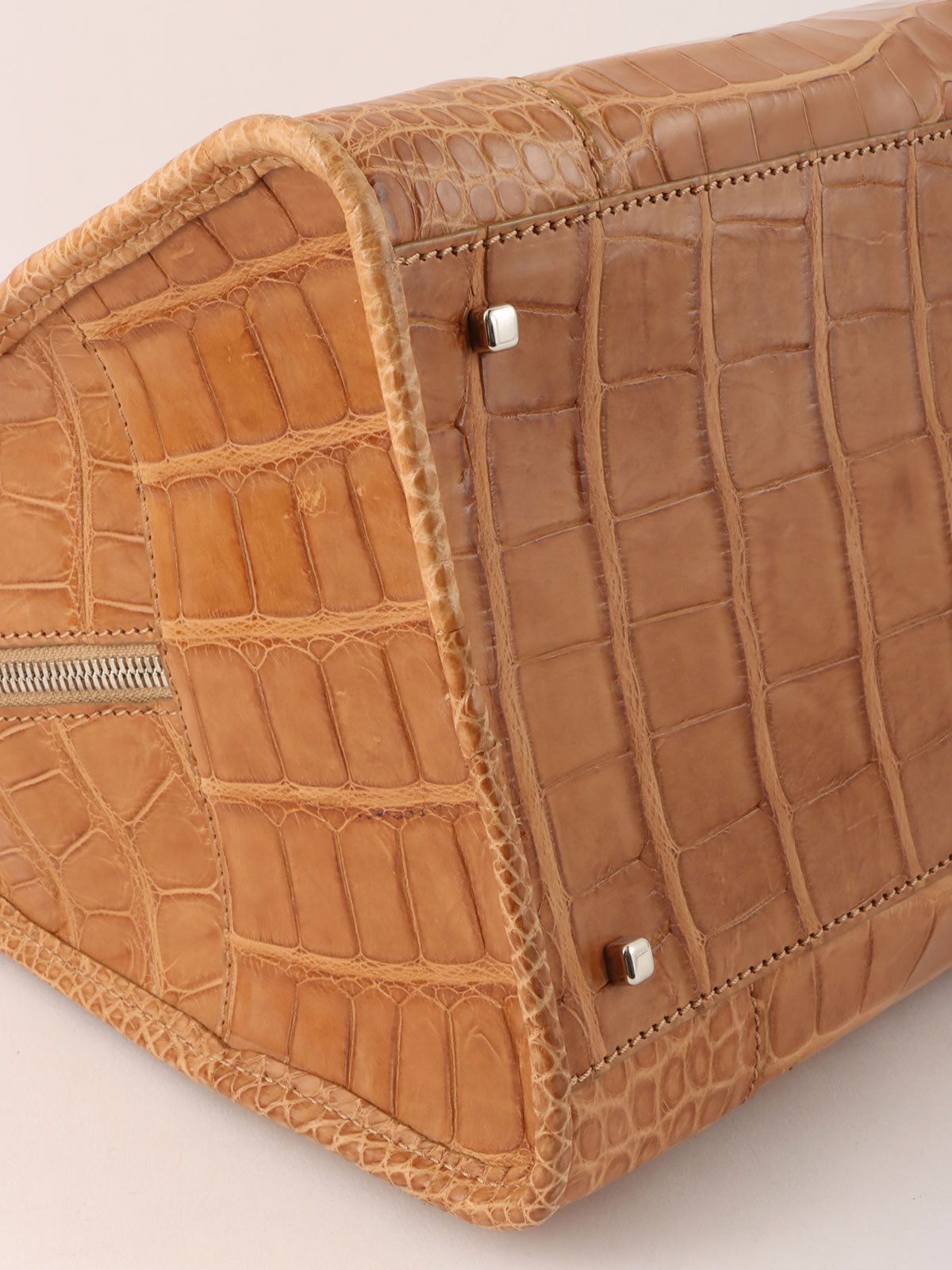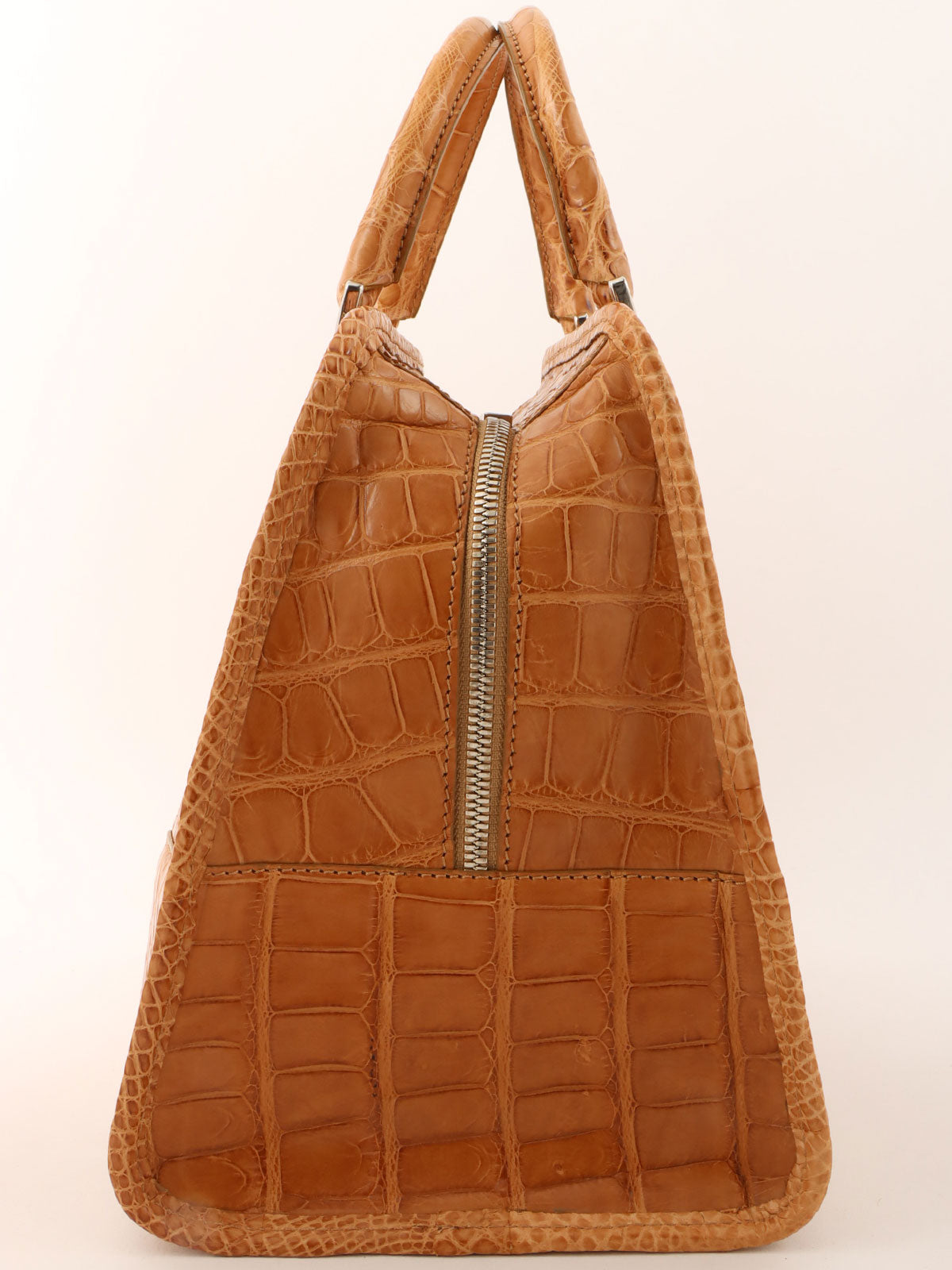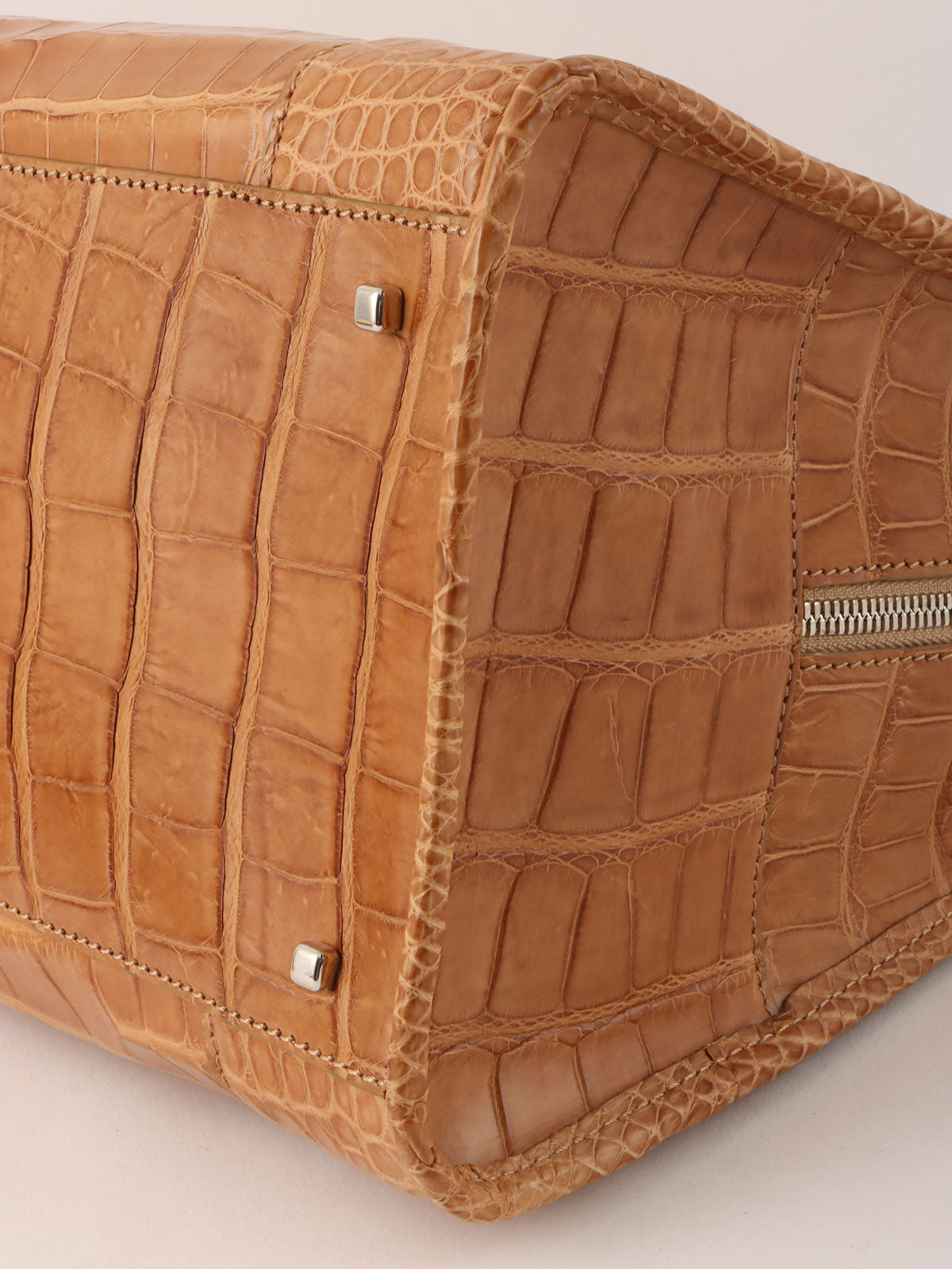 クロコダイルアナグラムアマソナハンドバッグ ブラウン