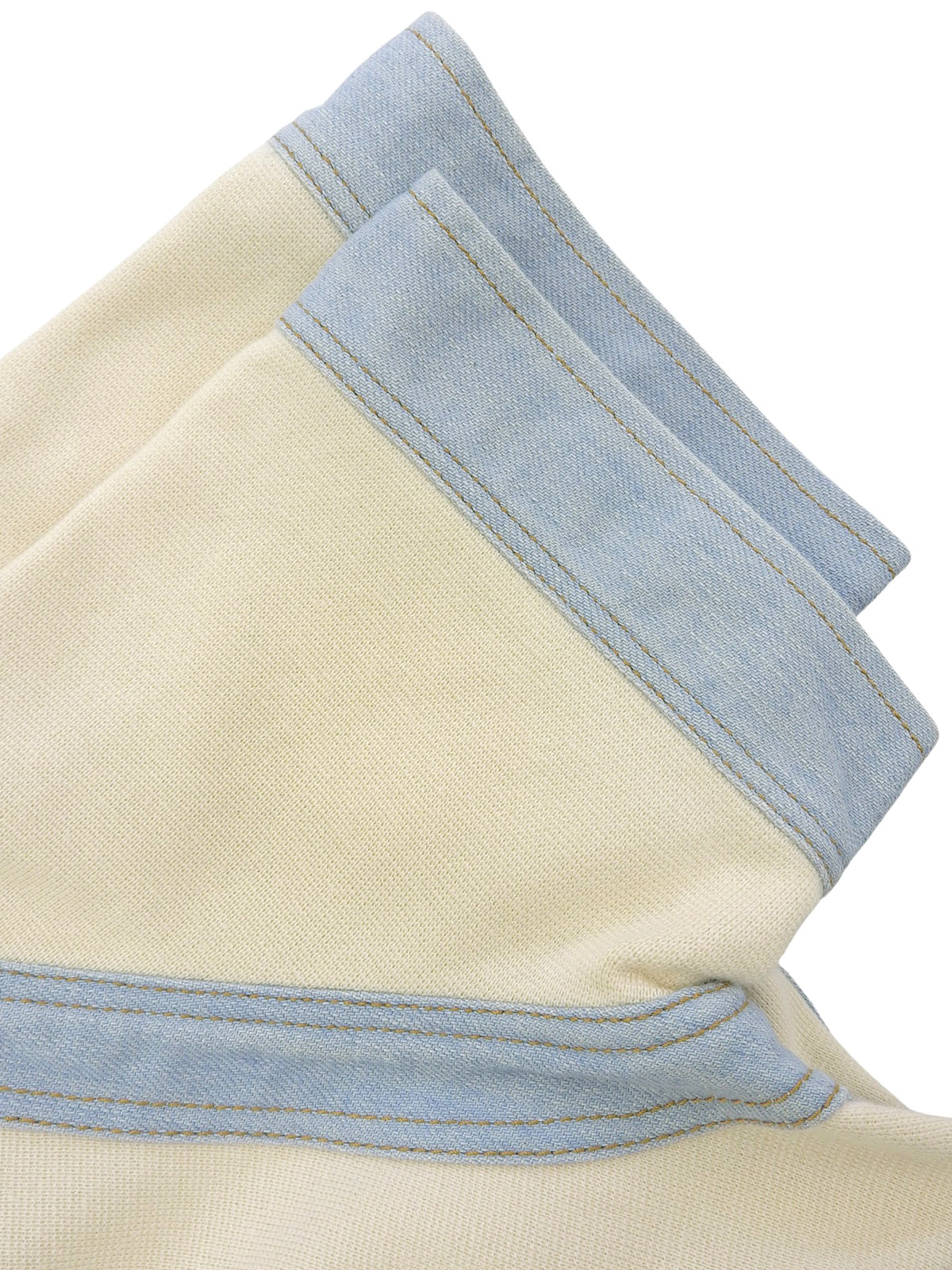 デニムコンビCCマークボタン半袖ワンピース アイボリー/ライトブルー