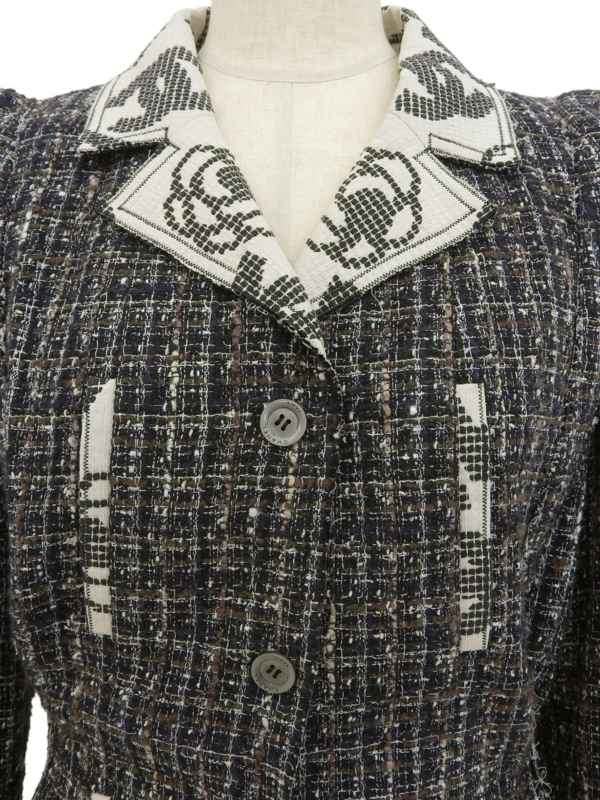 2006年製 ツイードカメリアCCマークジャケット ホワイト/マルチ